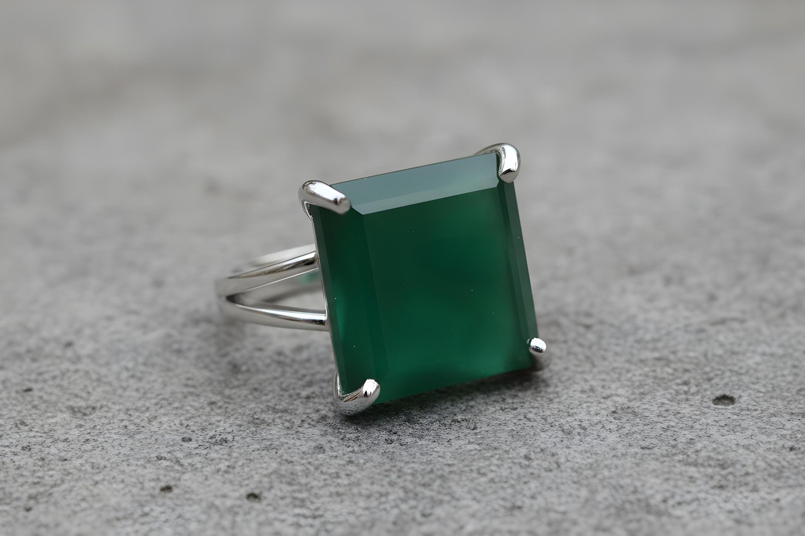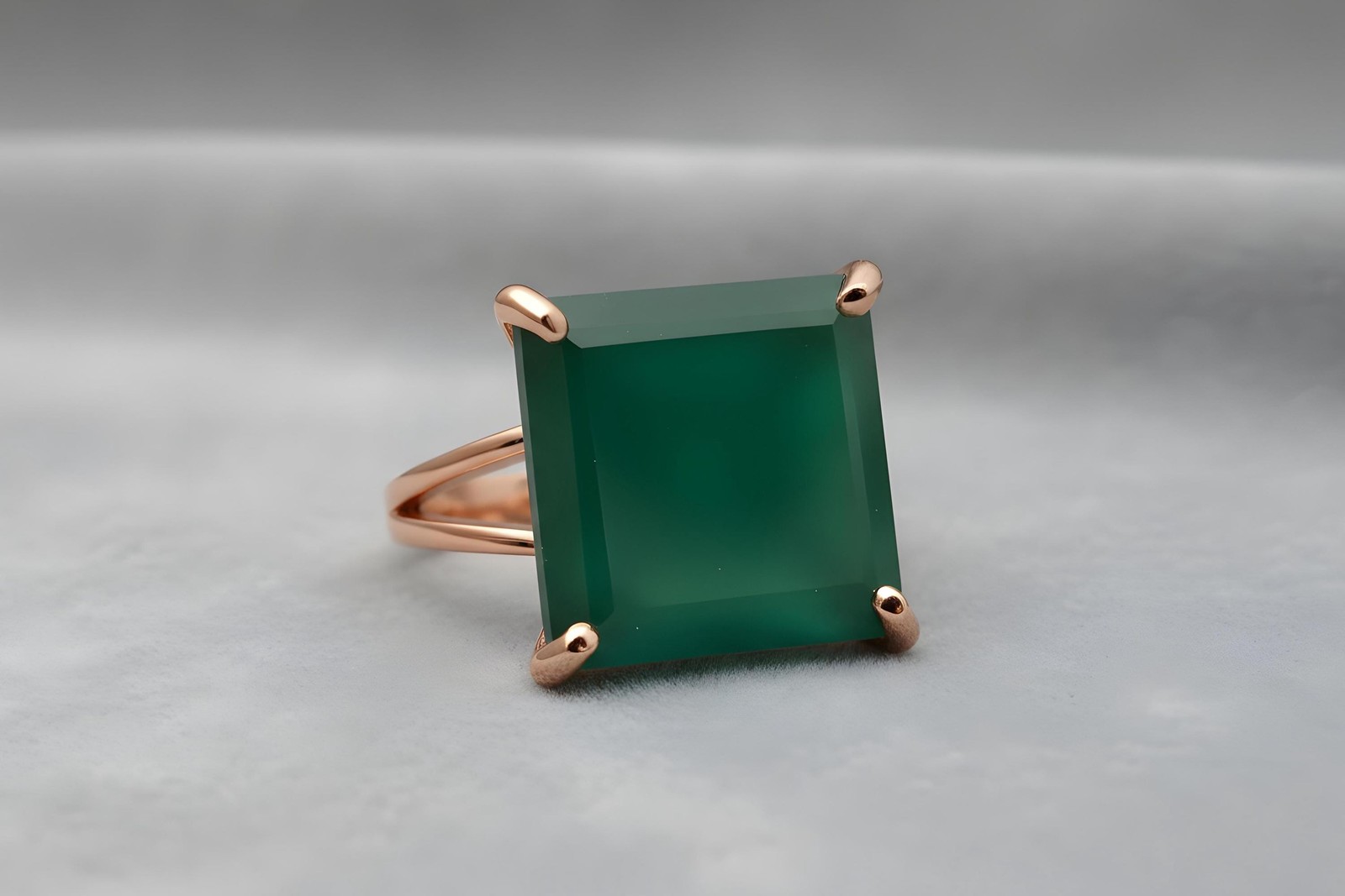 как выглядит Green Onyx Ring Anemone Jewelry 14k Gold Faceted Square Cocktail Ring фото