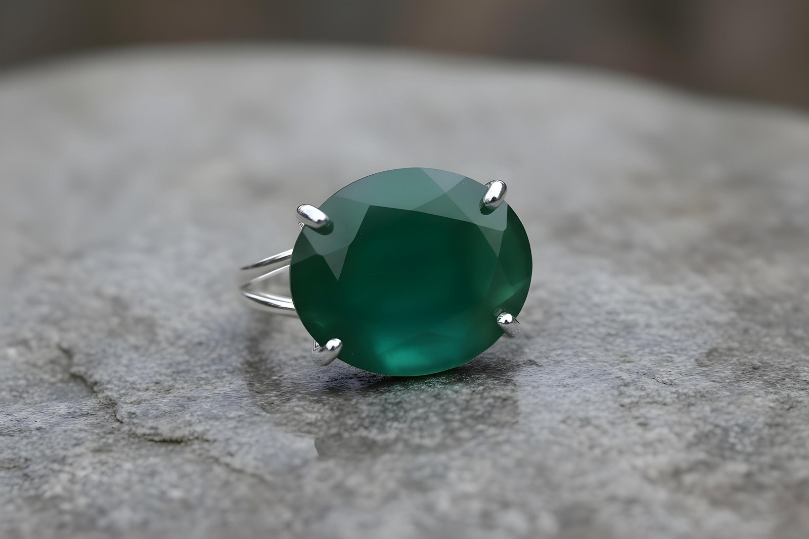 как выглядит Green Onyx Ring Anemone Jewelry Large Oval Stone 14k Gold Cocktail фото