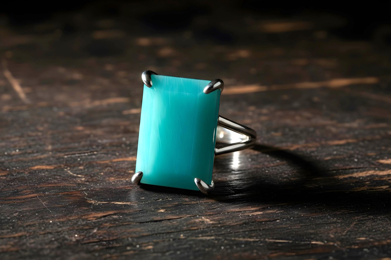 как выглядит Amazonite Ring 14k Gold Rectangle Cut Sky Blue Semiprecious Statement фото