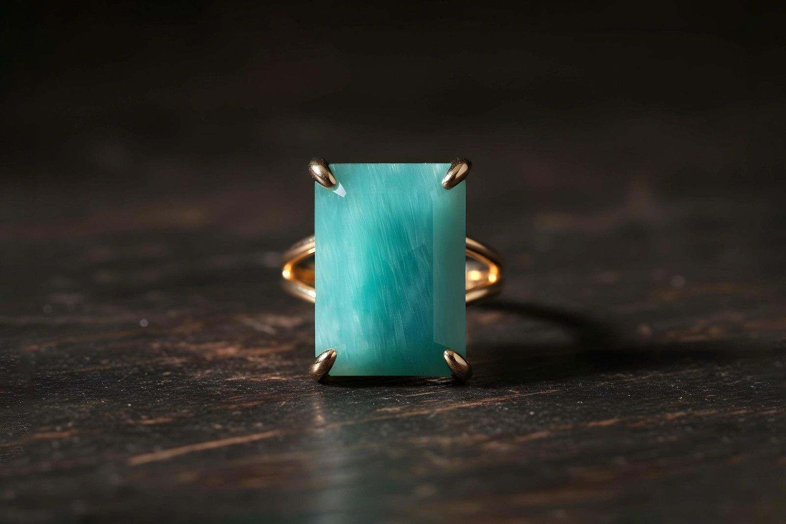 Amazonite Ring 14k Gold Rectangle Cut Sky Blue Semiprecious Statement