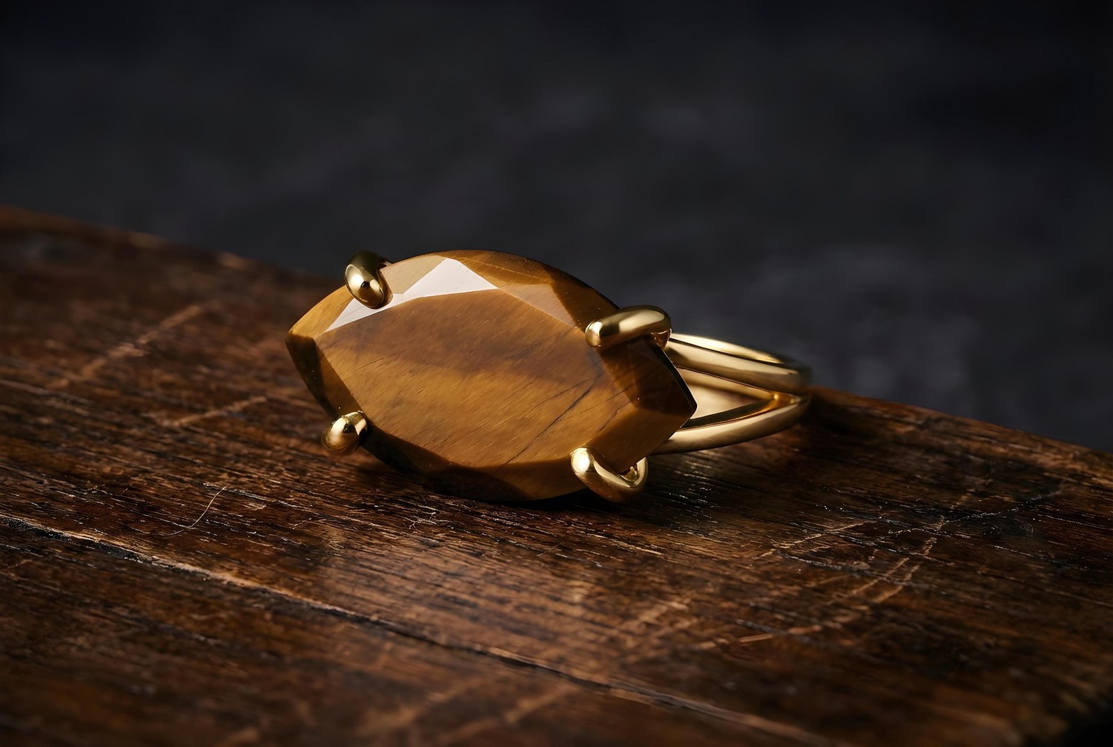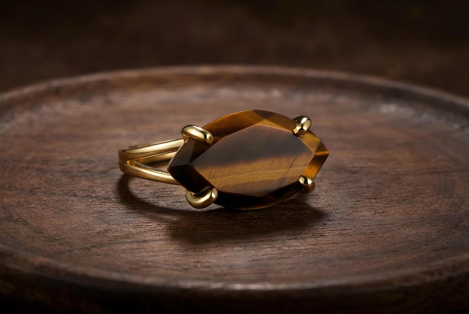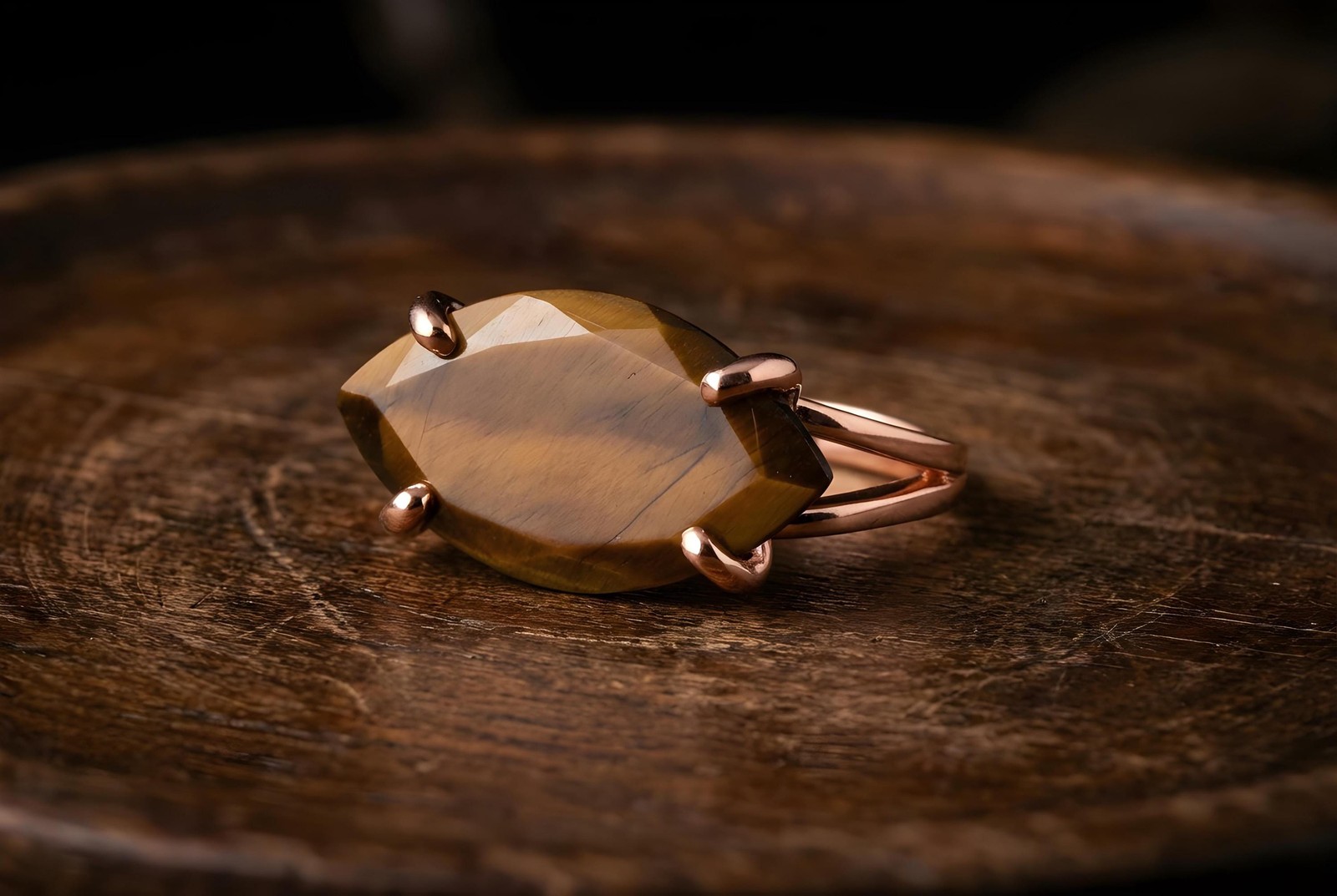 как выглядит Tiger Eye Ring Anemone Jewelry 14k Gold Filled Marquise Cut Wide Band фото