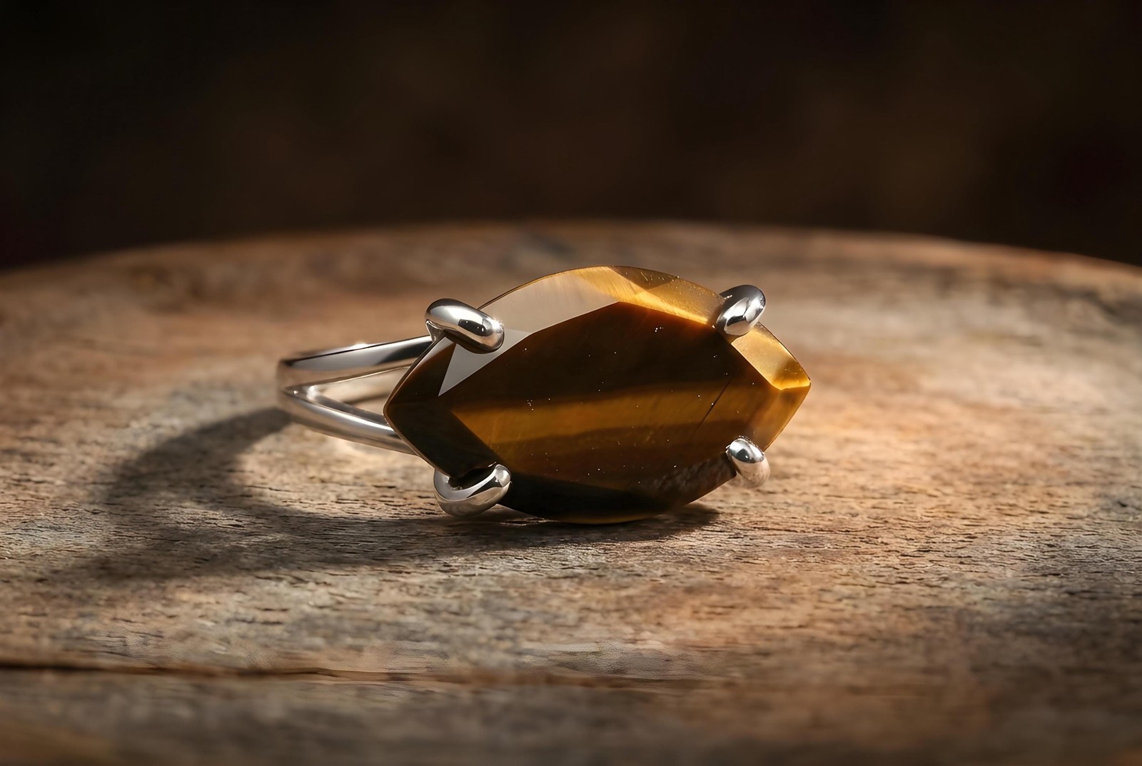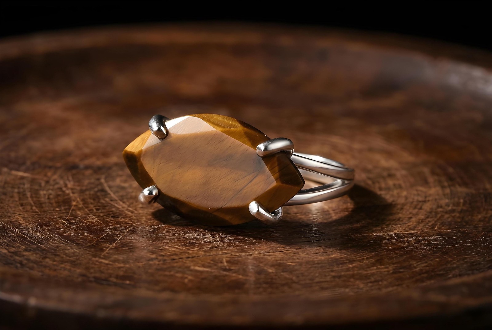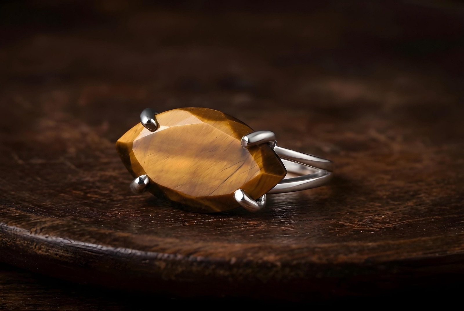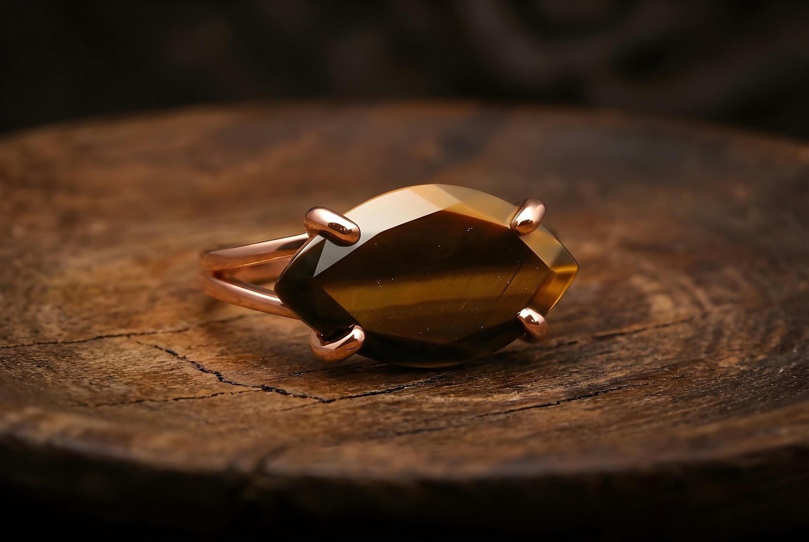 как выглядит Tiger Eye Ring Anemone Jewelry 14k Gold Filled Marquise Cut Wide Band фото