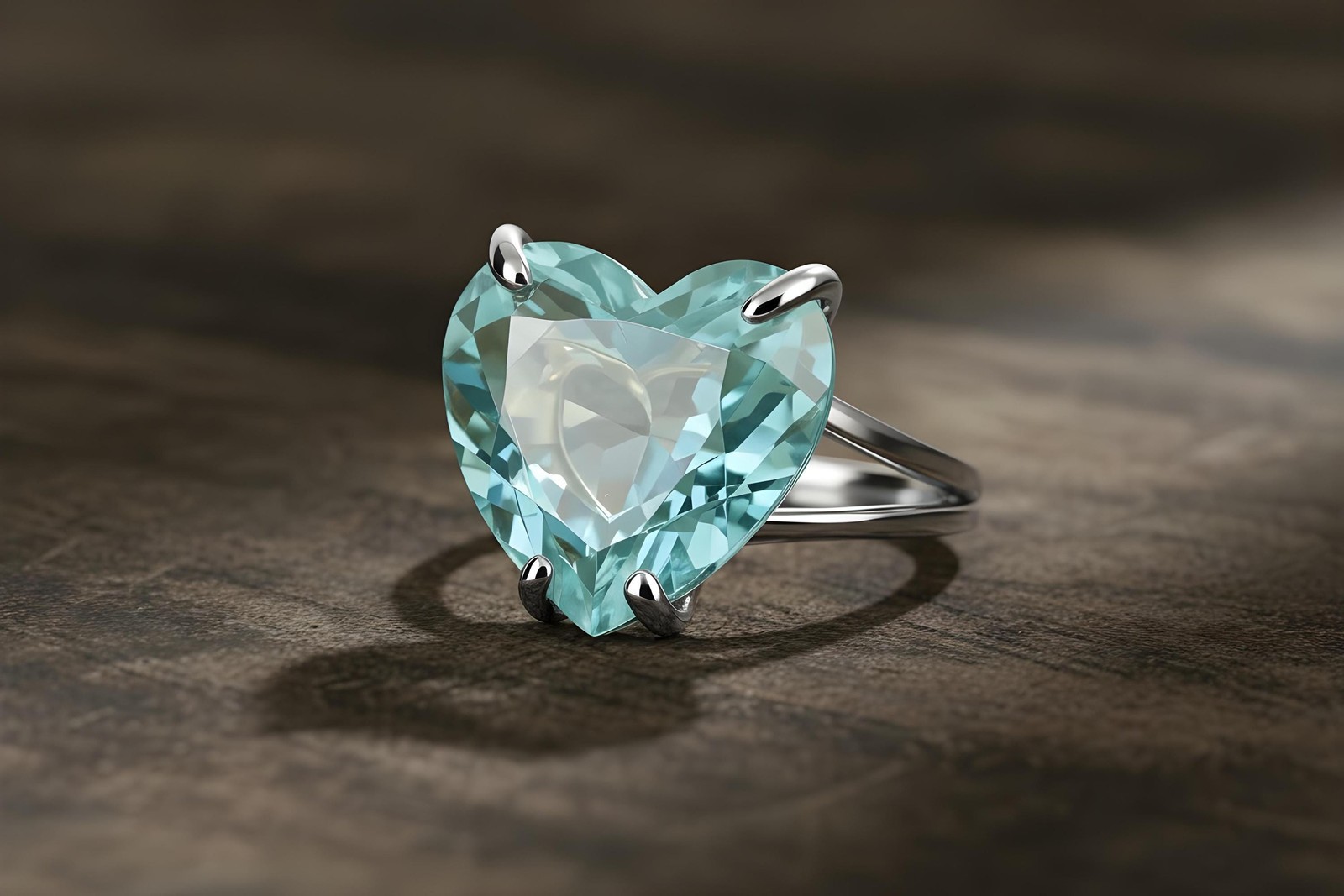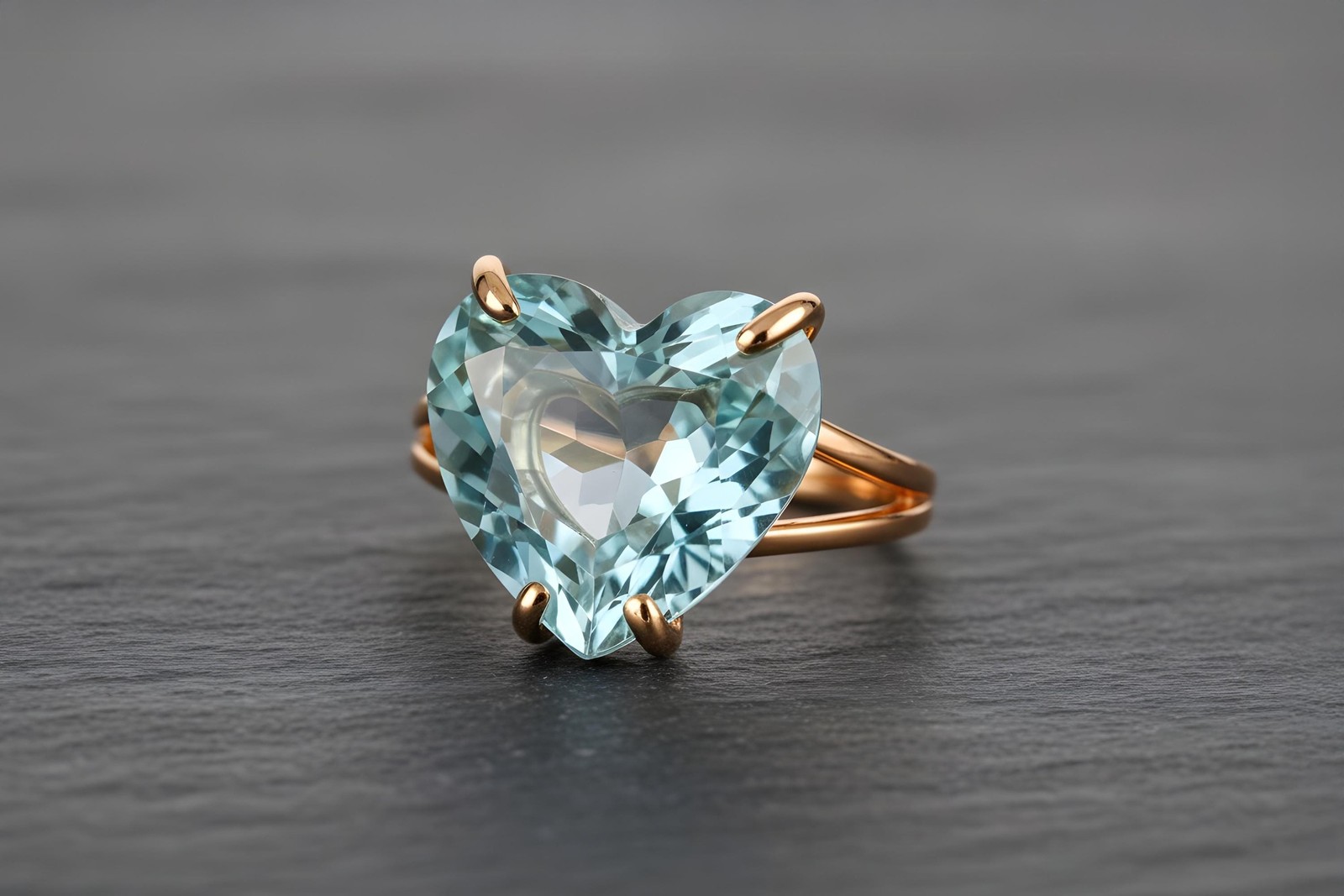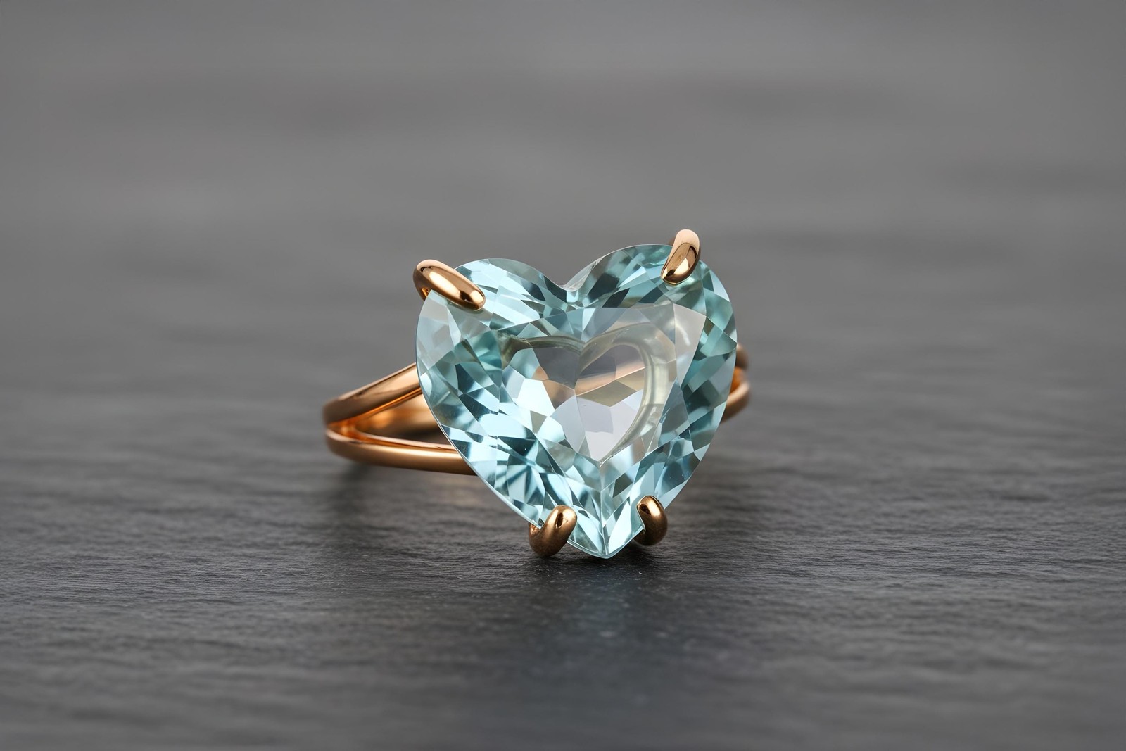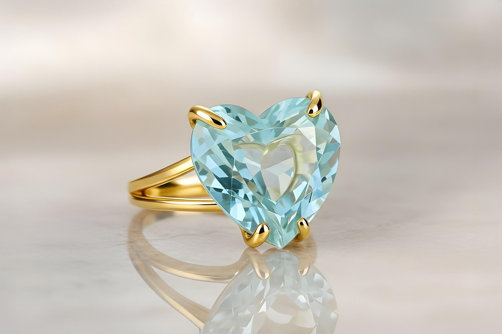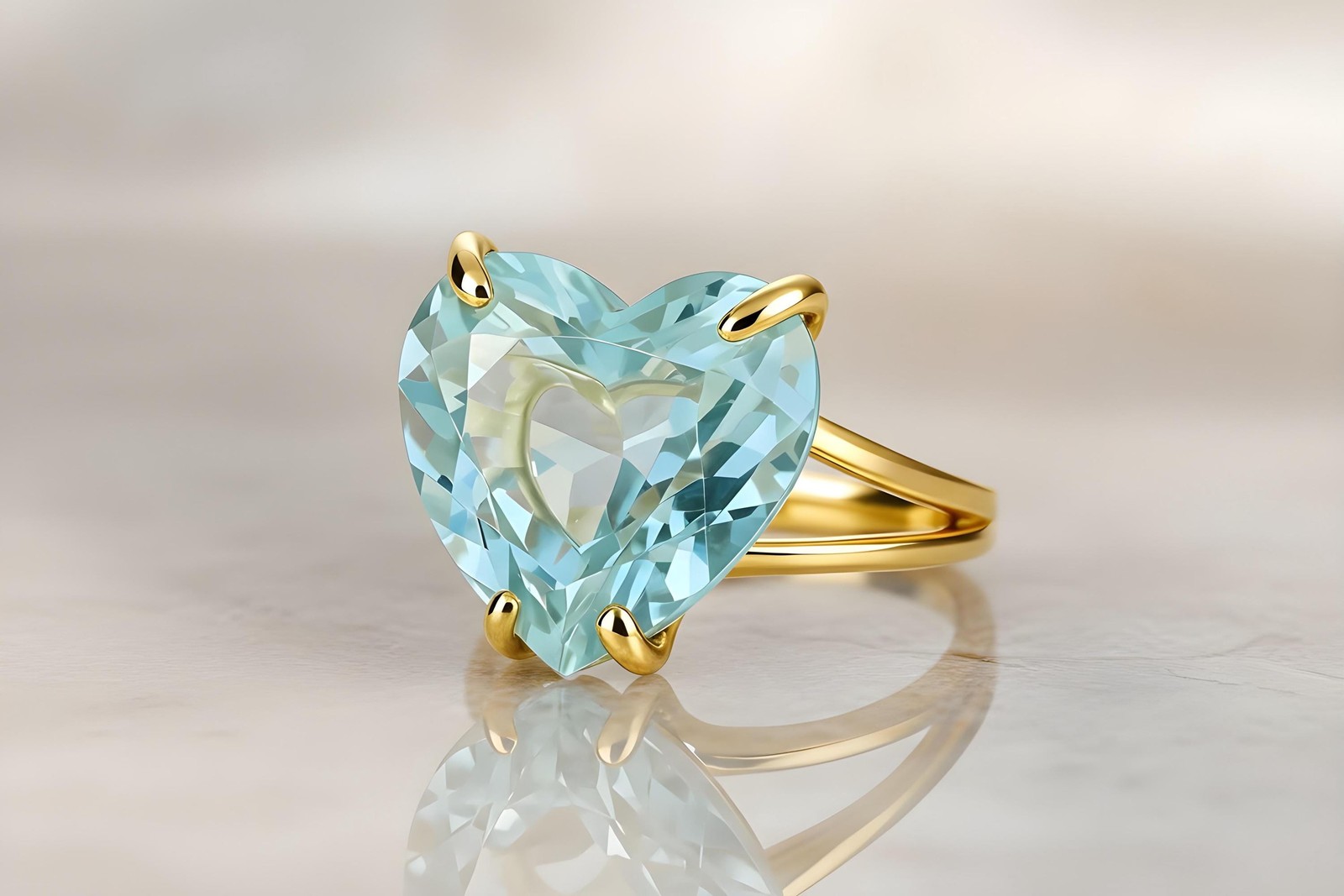 как выглядит Blue Topaz Heart Ring Anemone Jewelry 14k Gold Double Band Statement фото