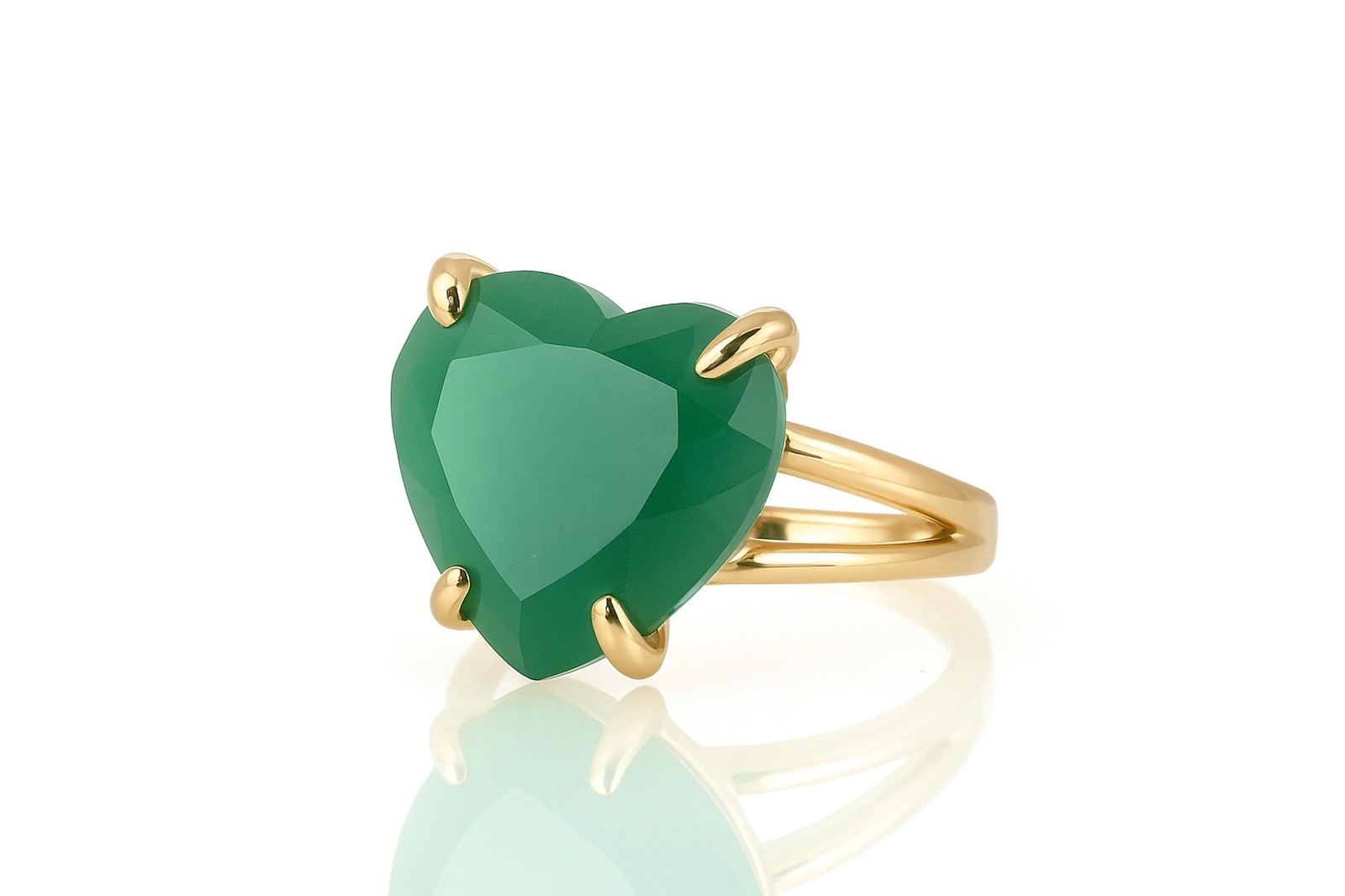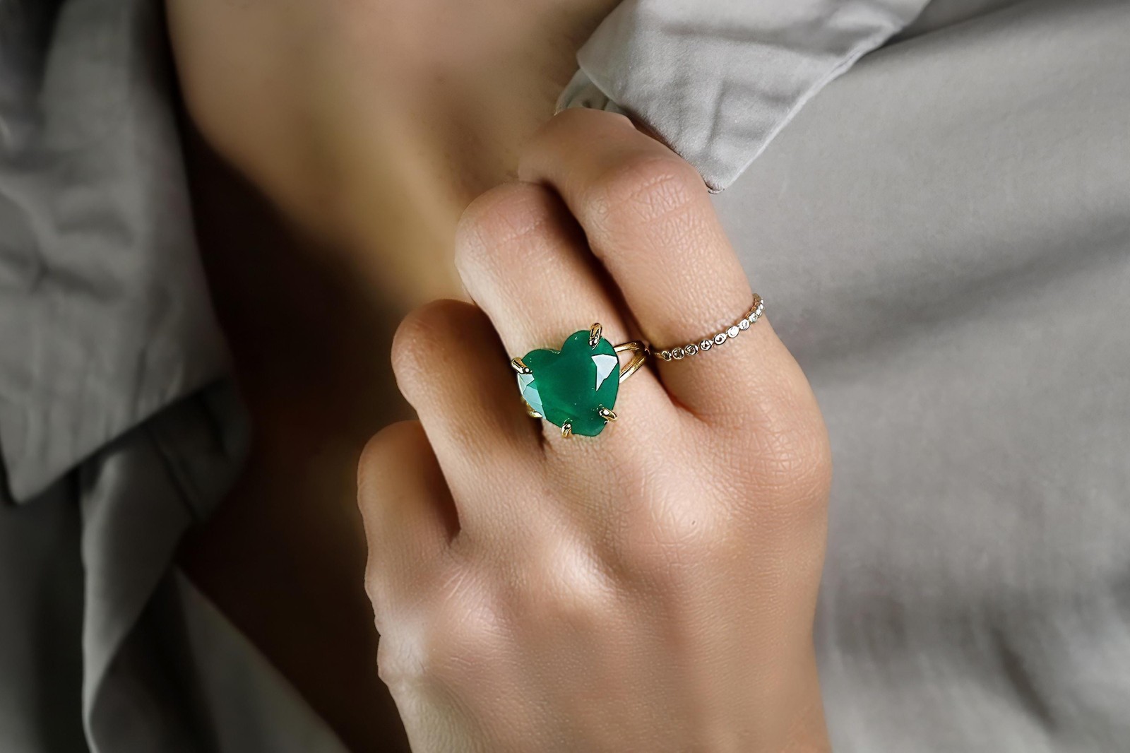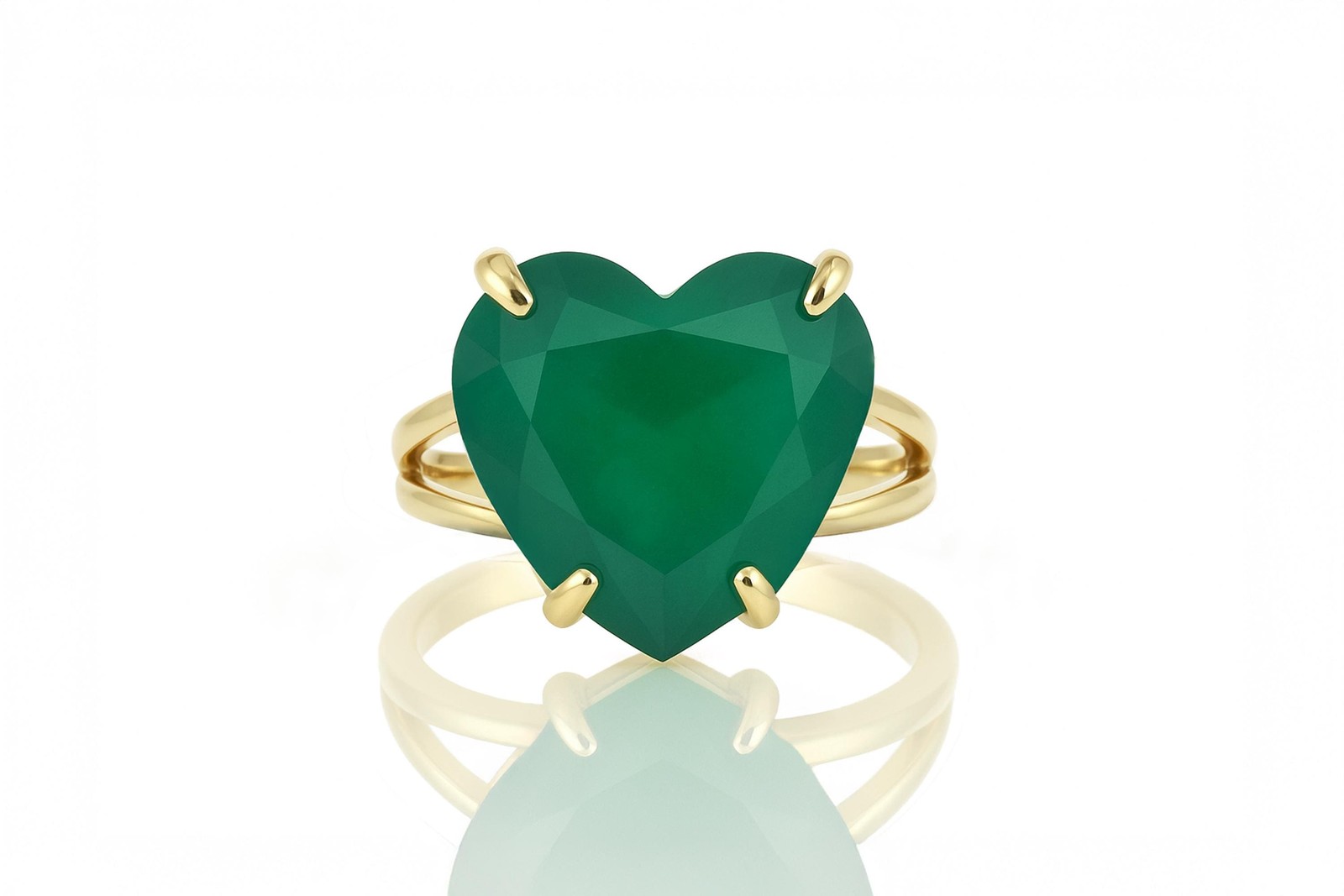 как выглядит Green Onyx Heart Ring Anemone 14k Gold Double Band Semiprecious Bold фото