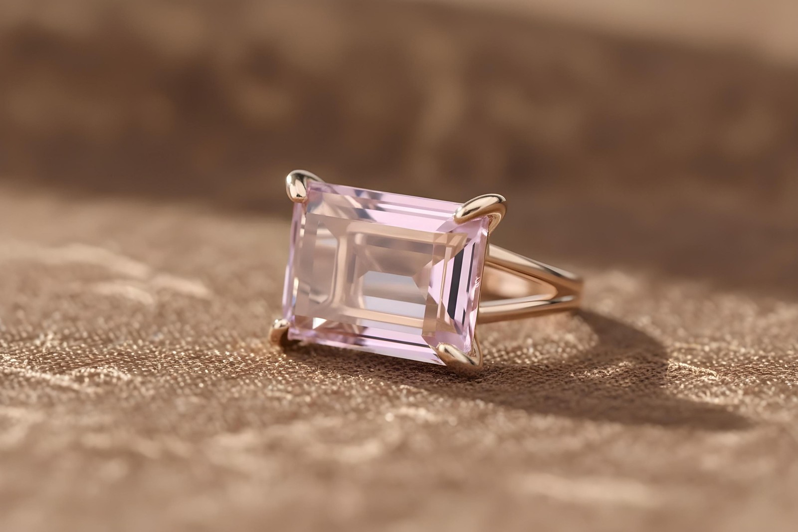 как выглядит Rose Quartz Ring Anemone Jewelry 14k Gold Rectangular Cut Statement фото