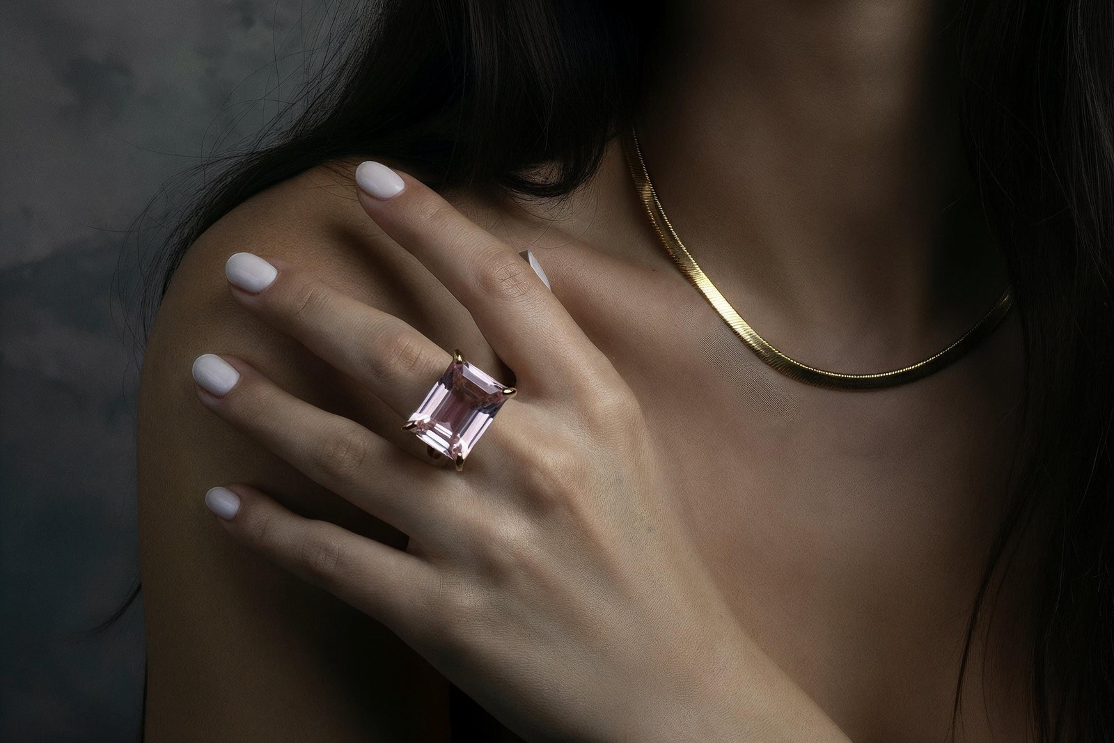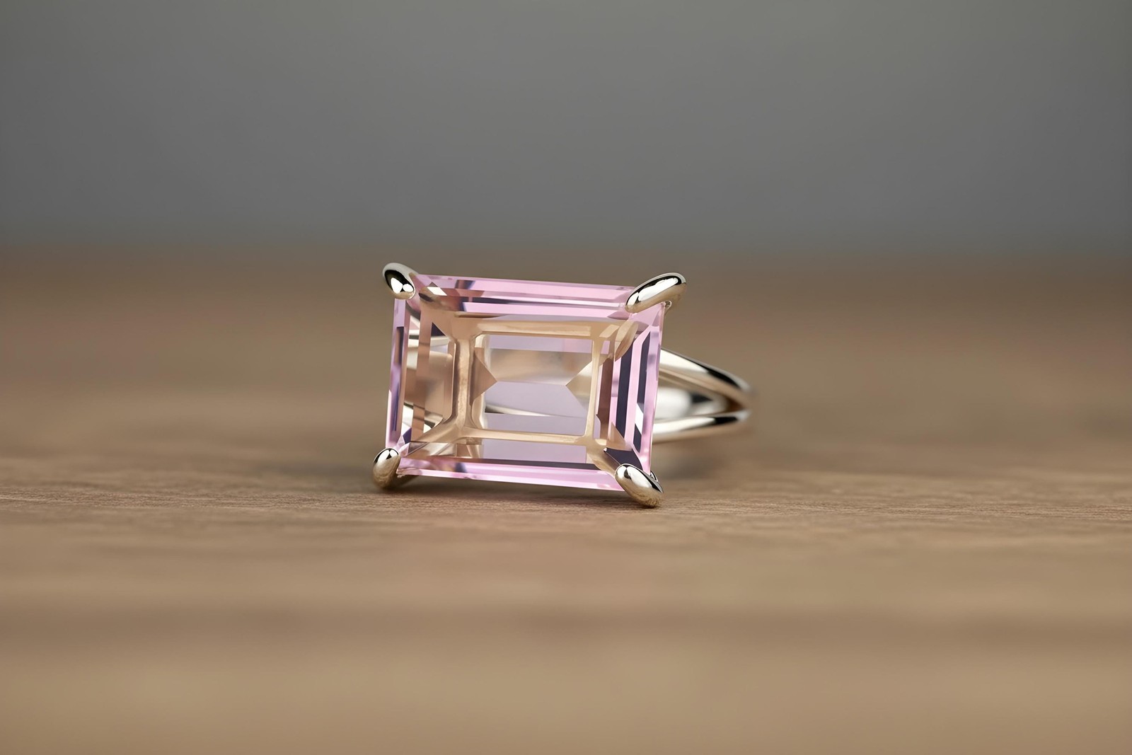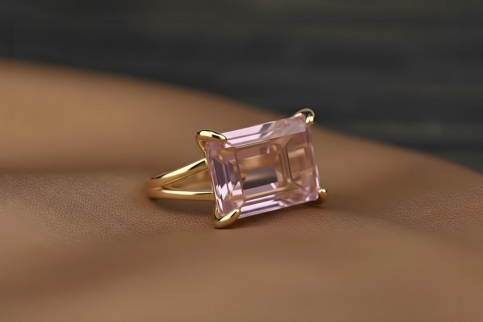 Rose Quartz Ring Anemone Jewelry 14k Gold Rectangular Cut Statement