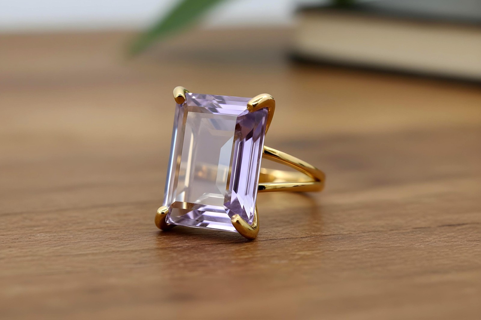 Tanzanite Ring Anemone Jewelry 14k Gold Rectangle Cut Prong Setting