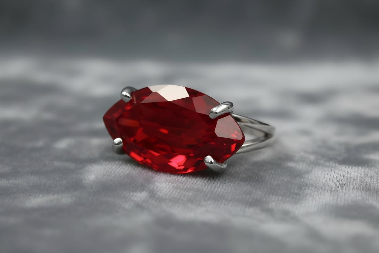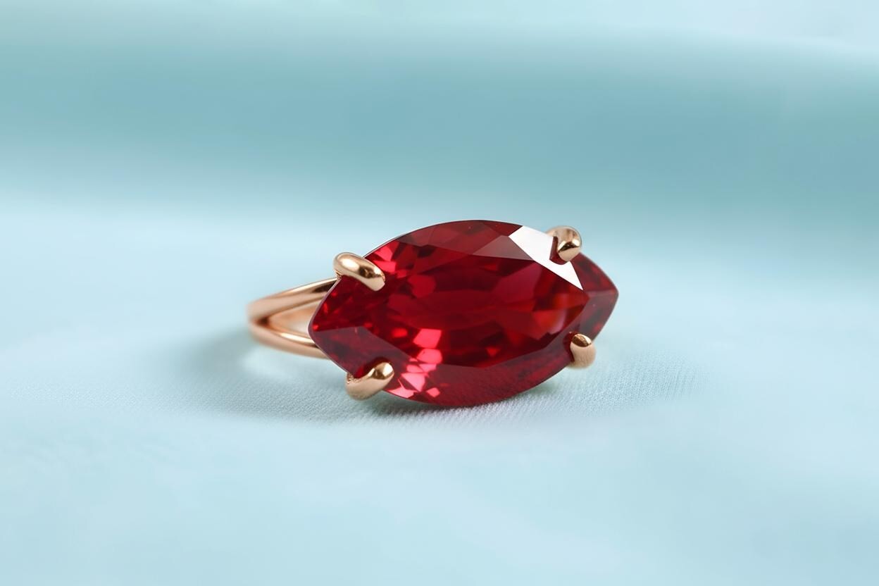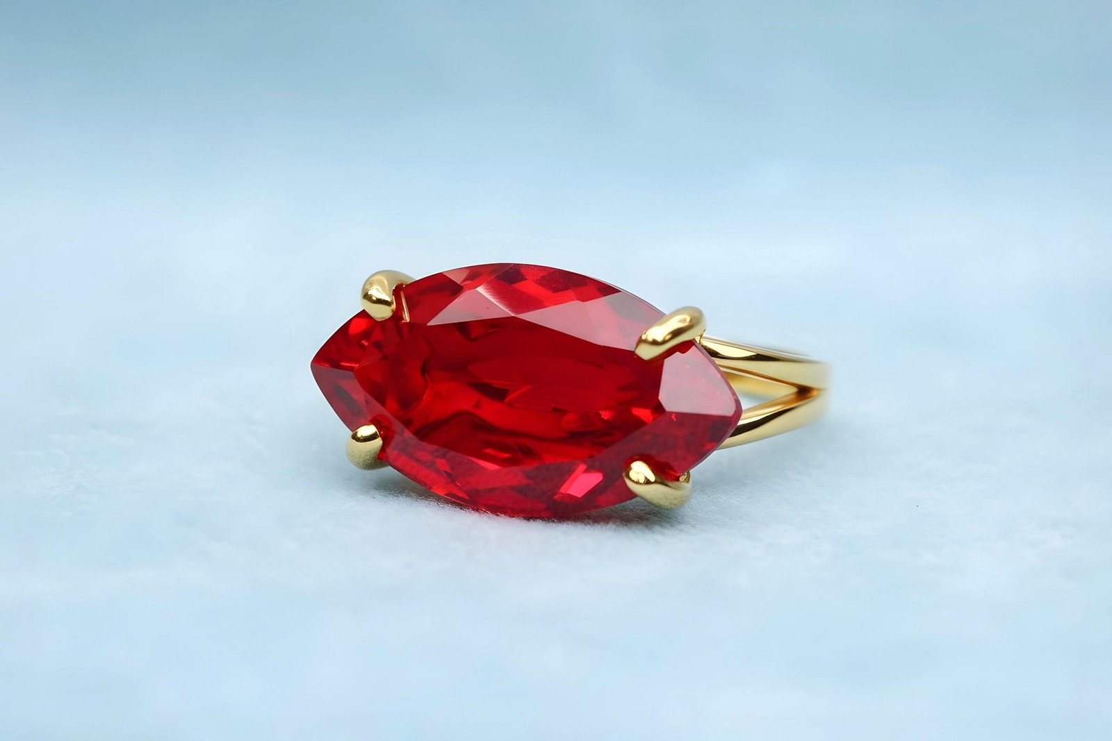 как выглядит Ruby Ring Anemone Jewelry Marquise Cut 14k Gold Horizontal Gemstone фото