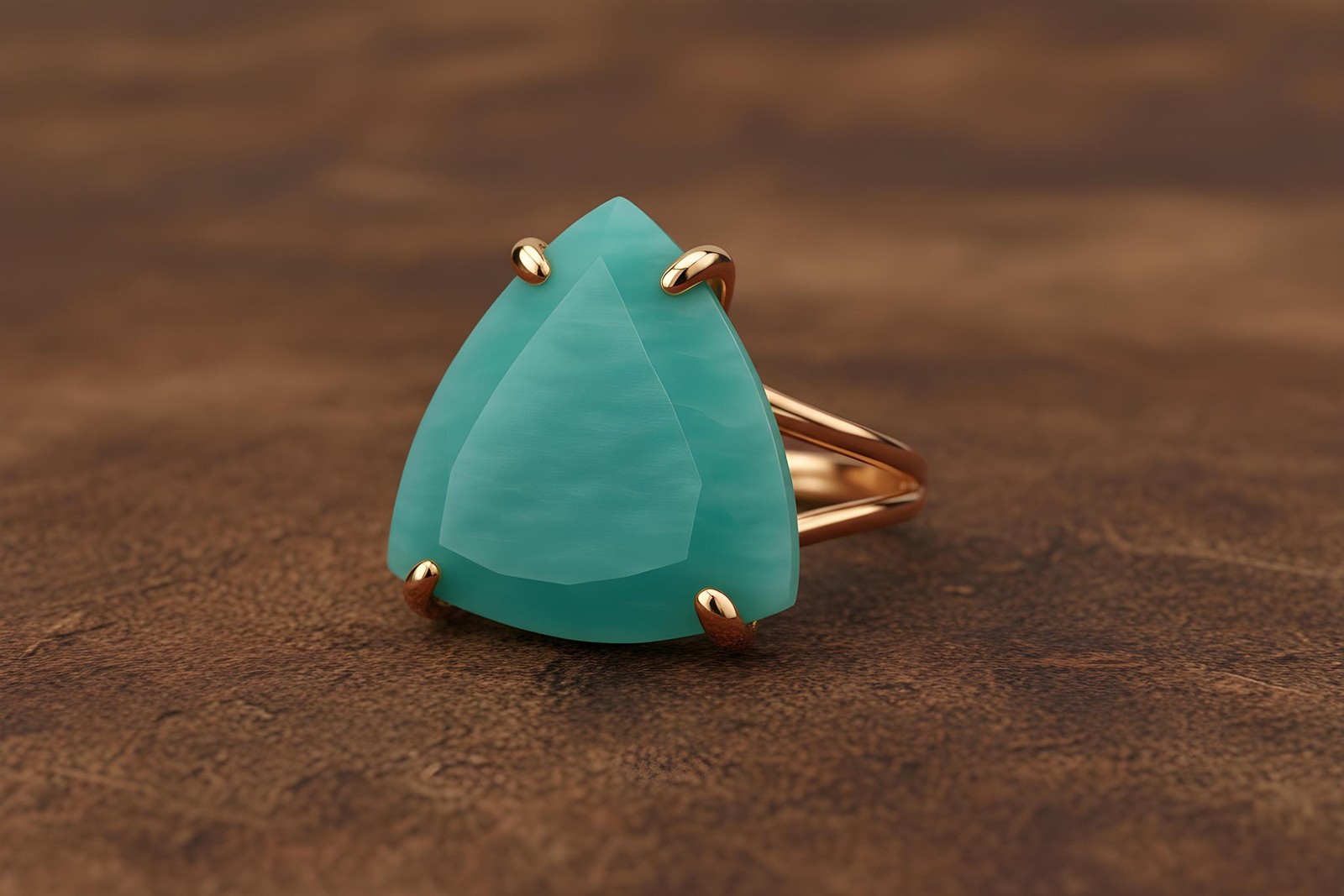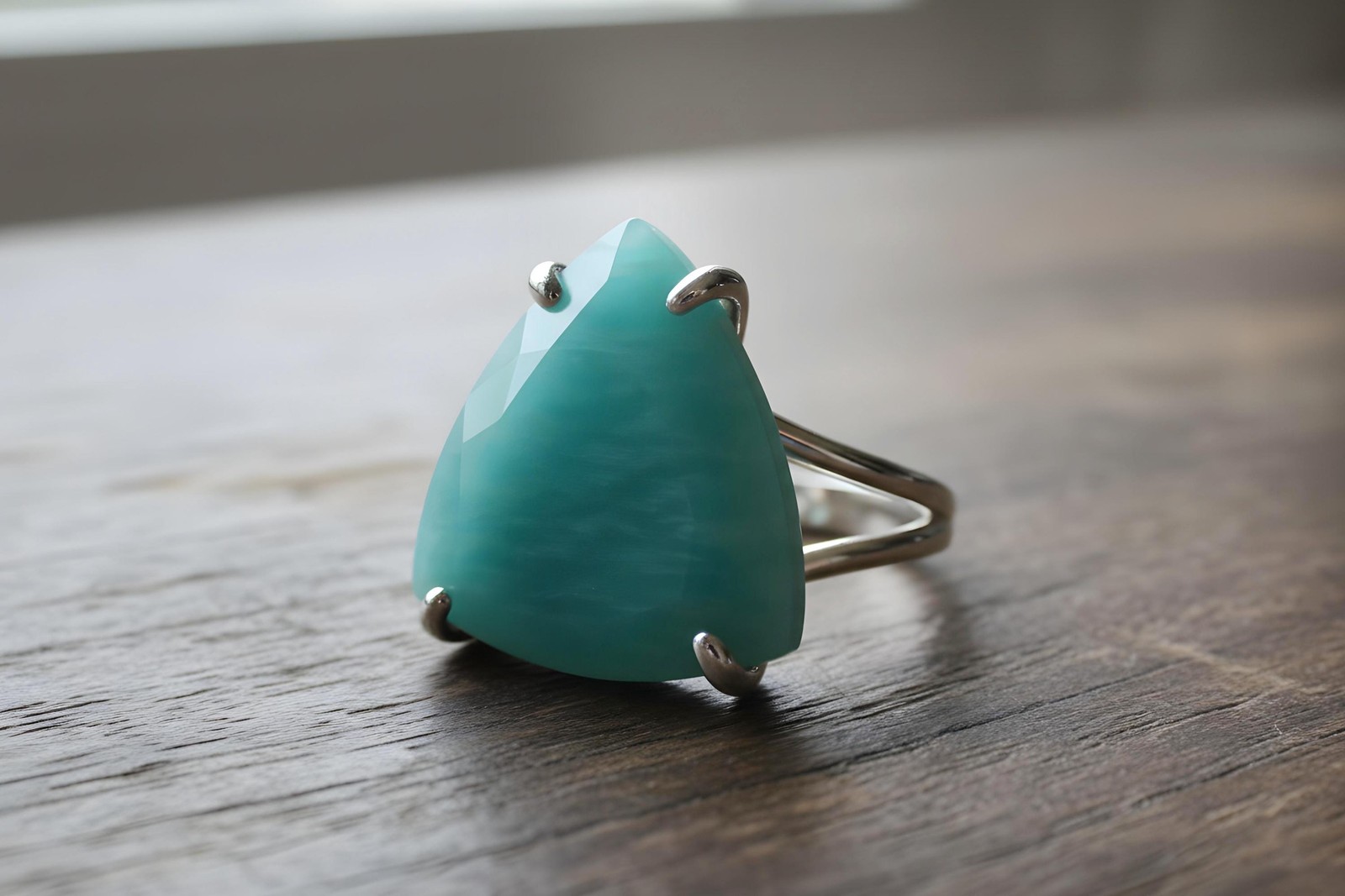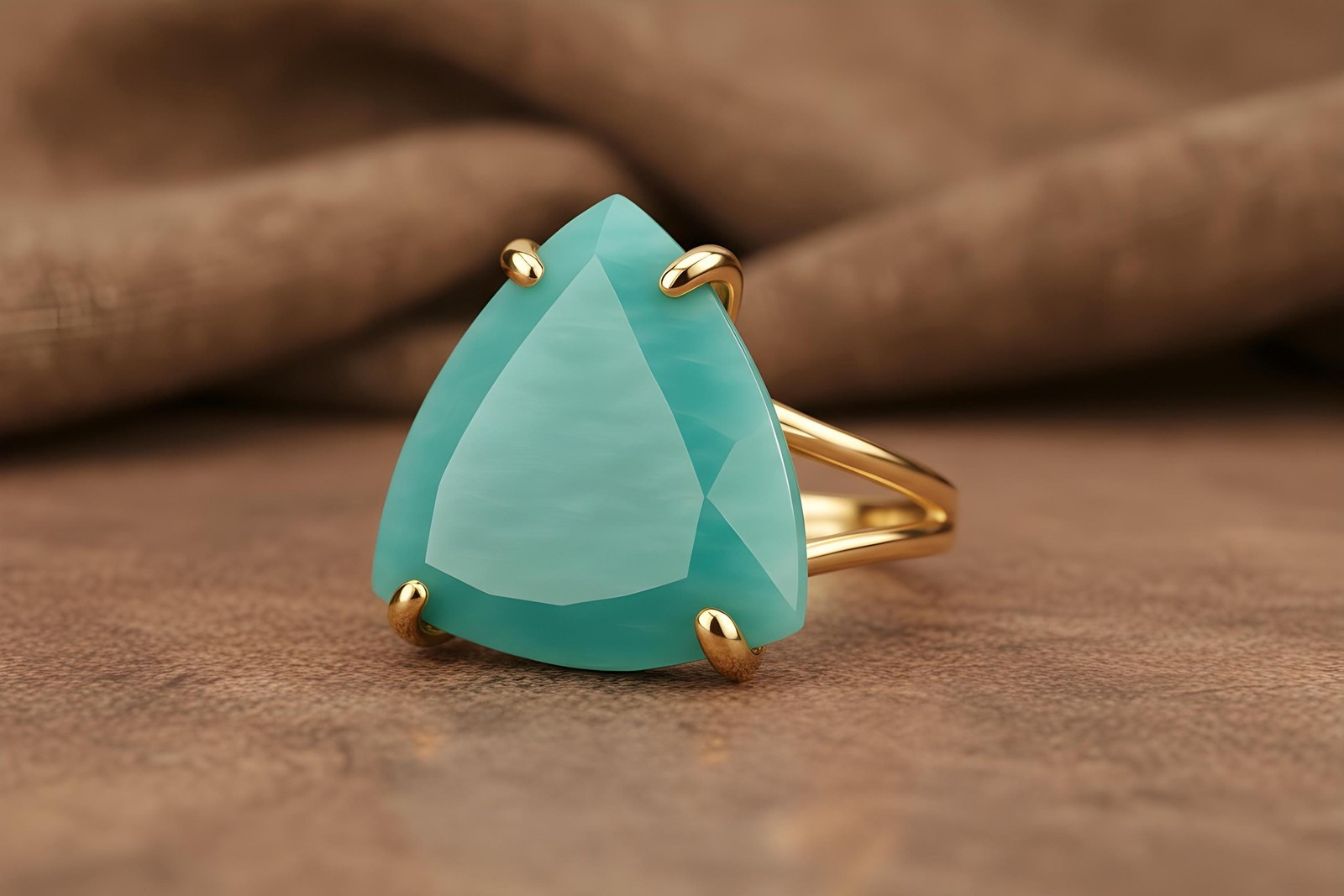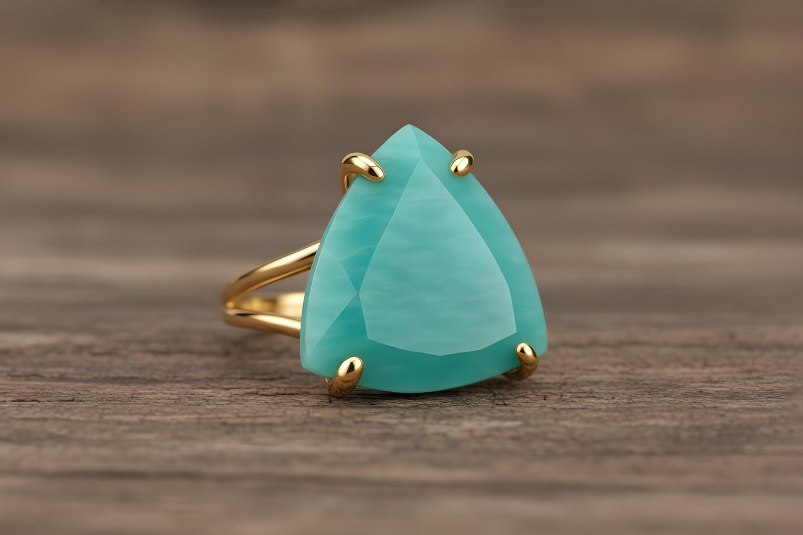 Amazonite Ring Anemone Jewelry 14k Gold Trillion Cut Aqua Blue Gemstone