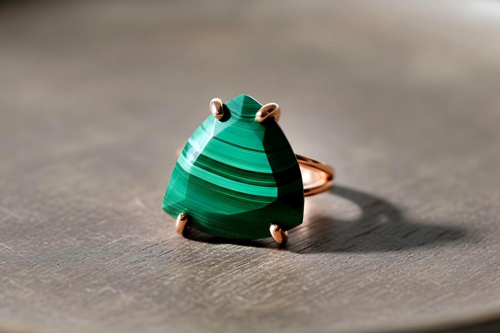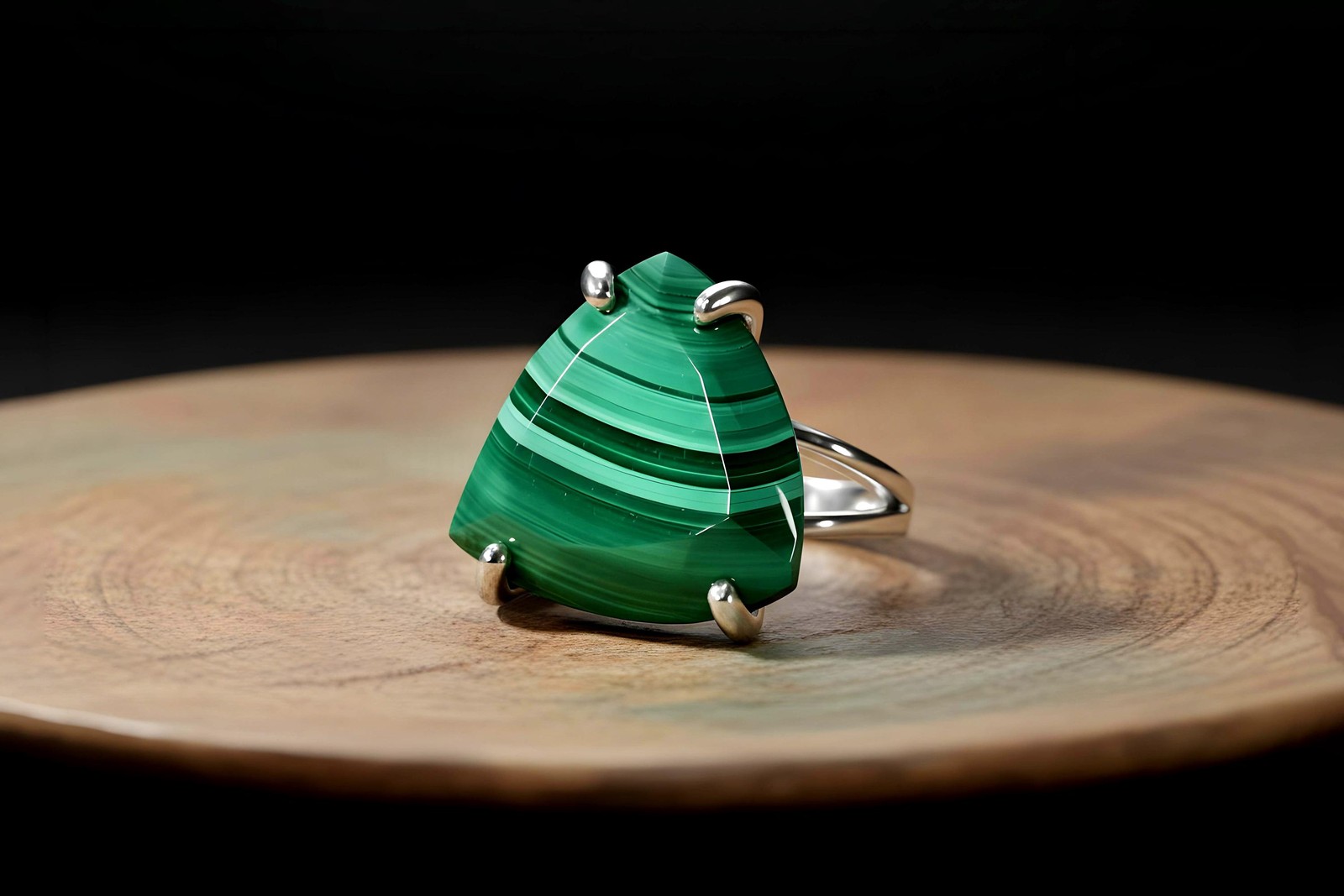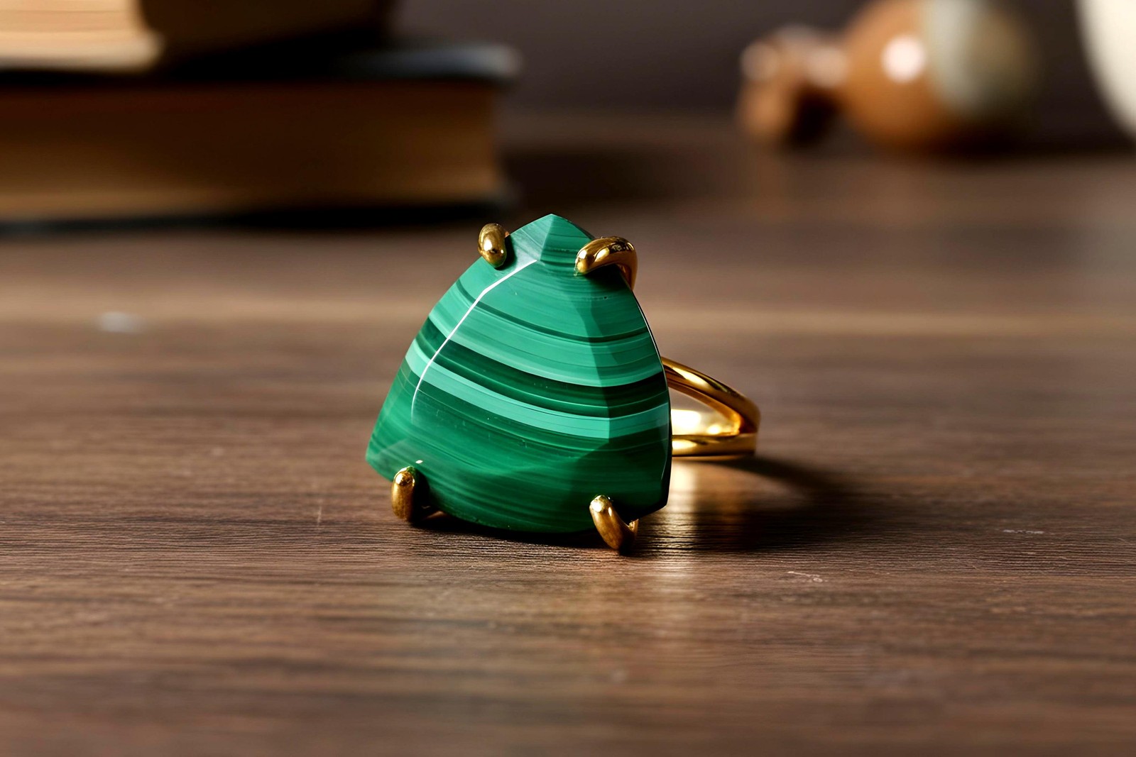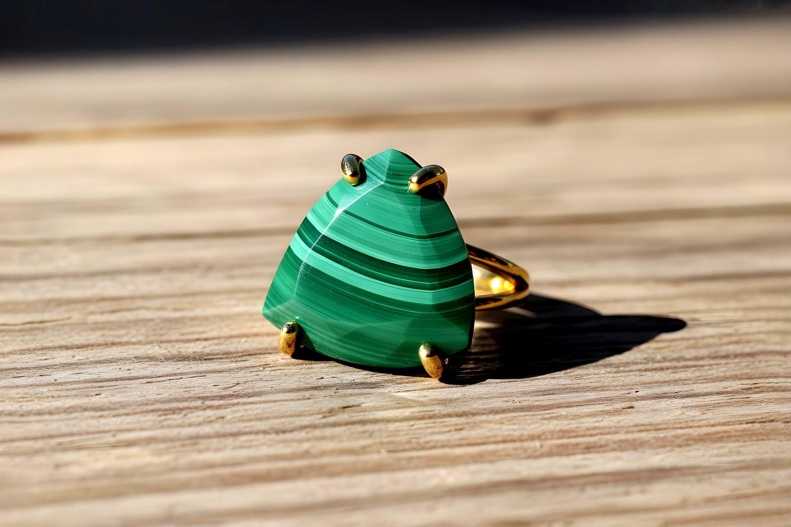 как выглядит 14k Gold Malachite Ring Anemone Trillion Cut Green Gemstone Statement фото