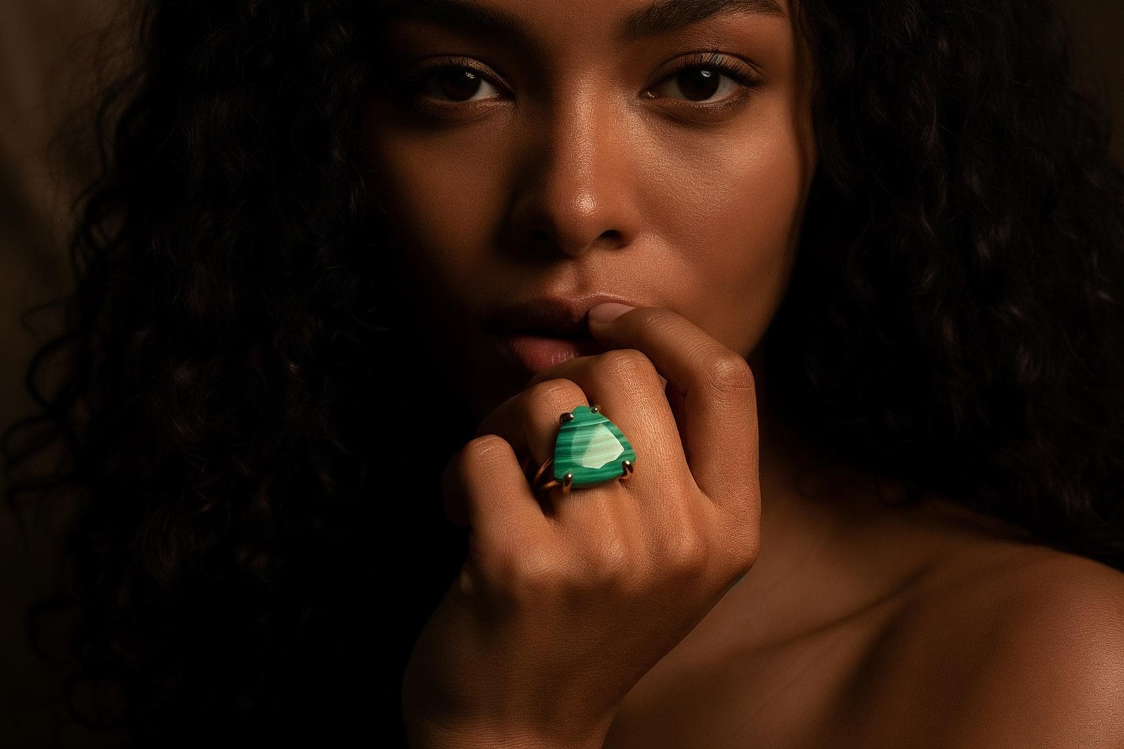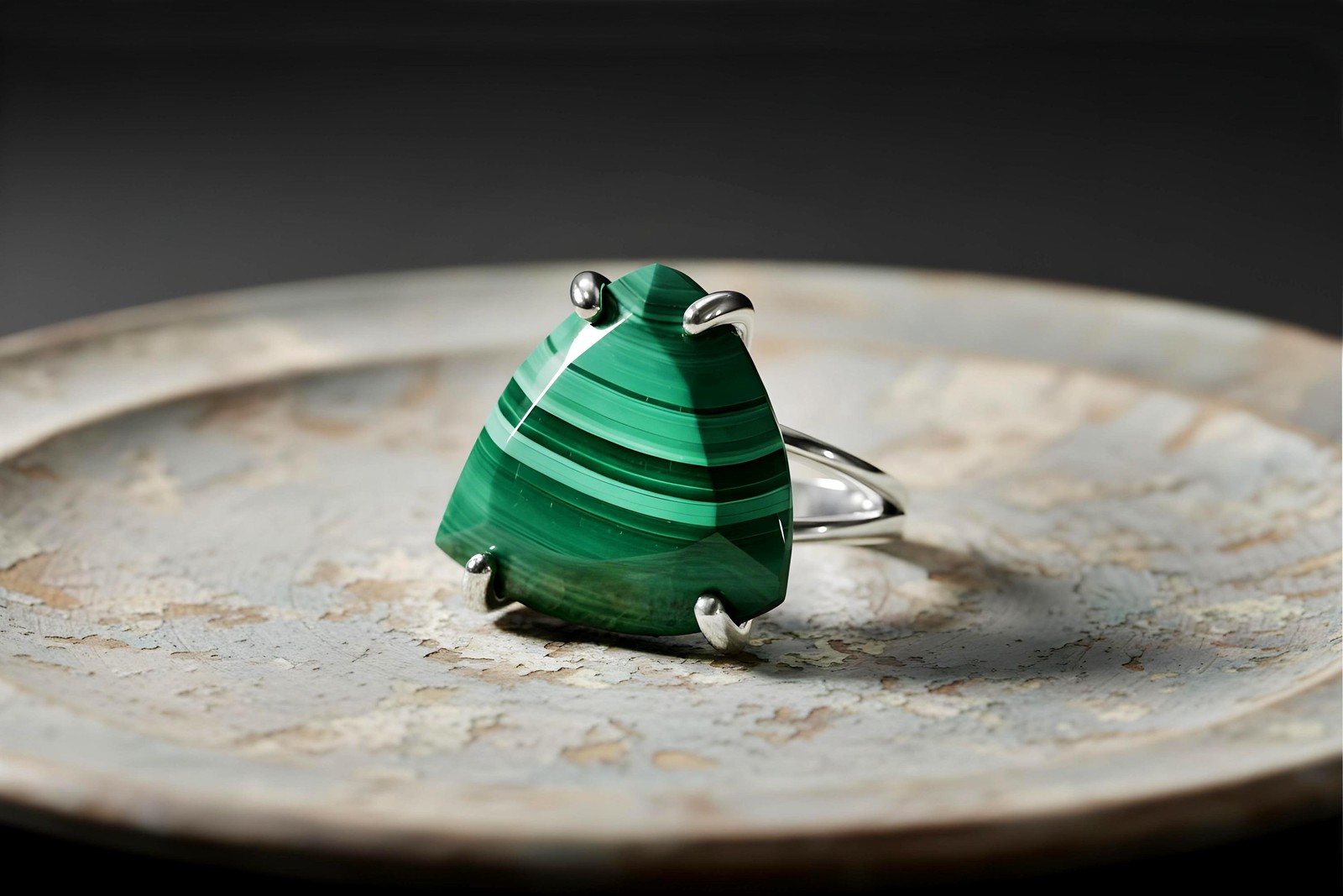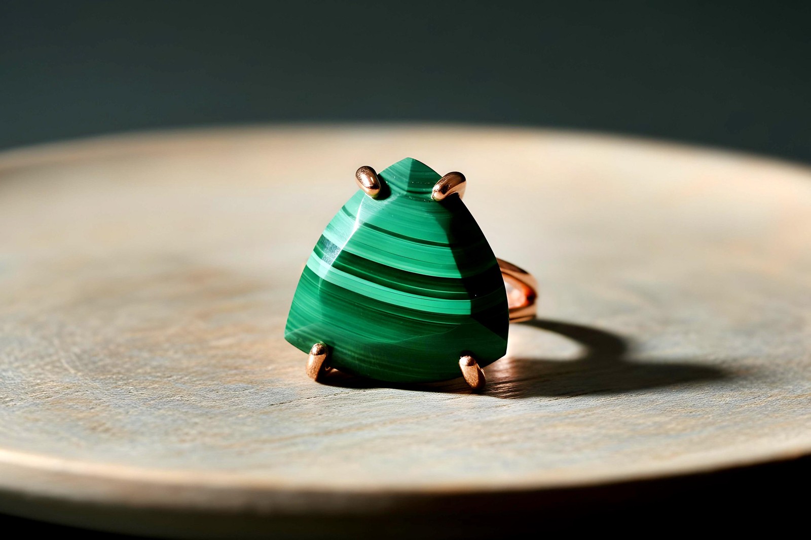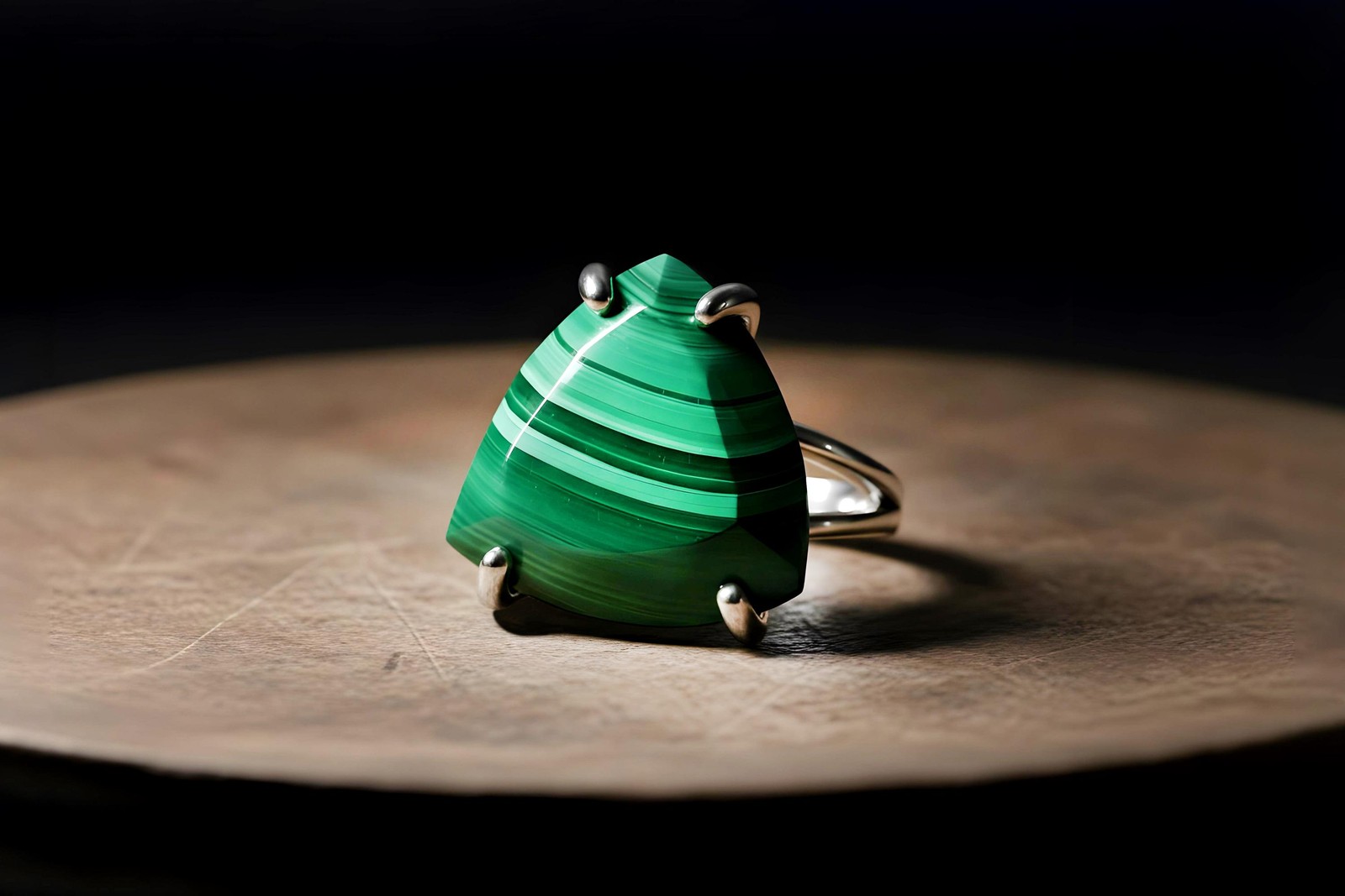 как выглядит 14k Gold Malachite Ring Anemone Trillion Cut Green Gemstone Statement фото