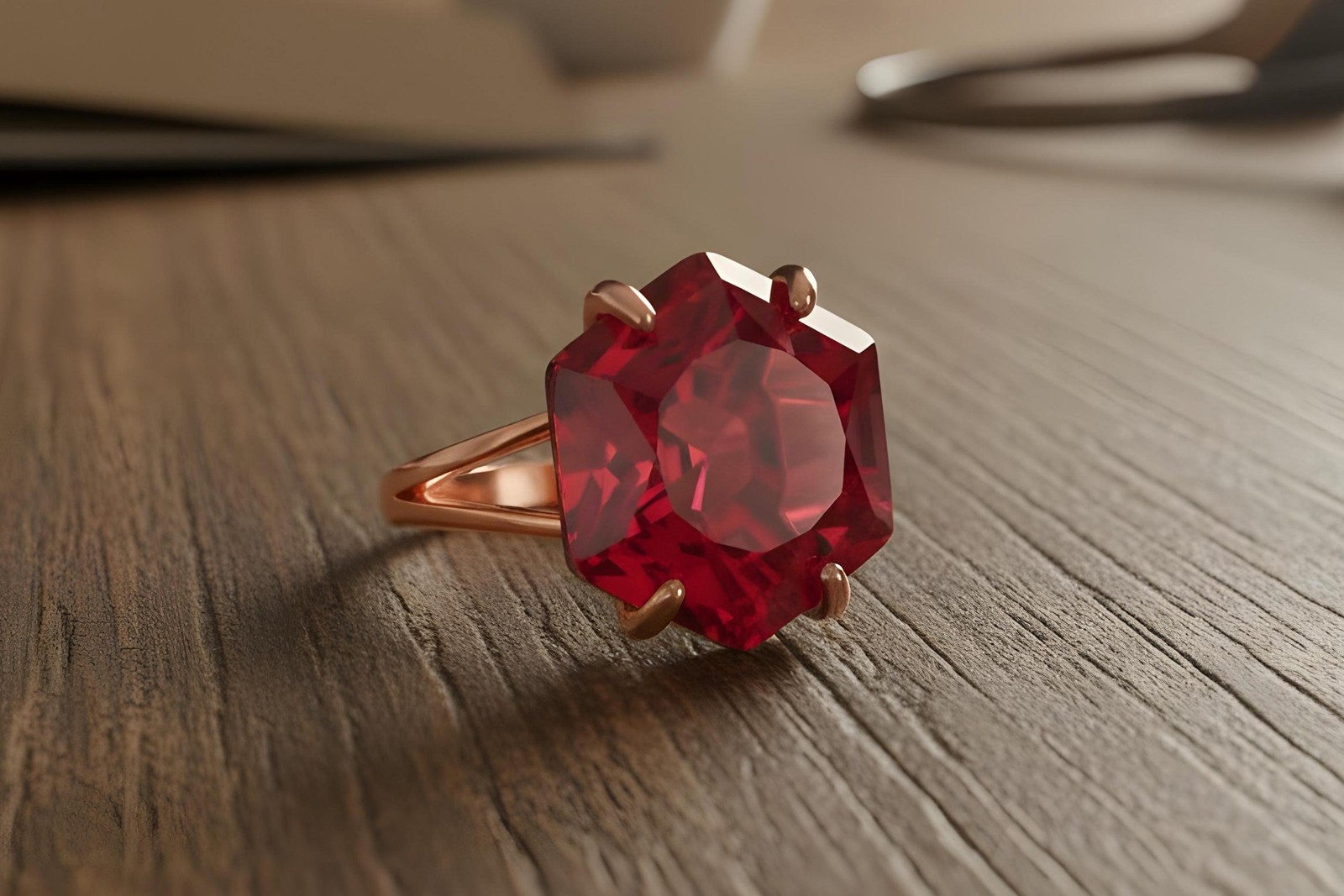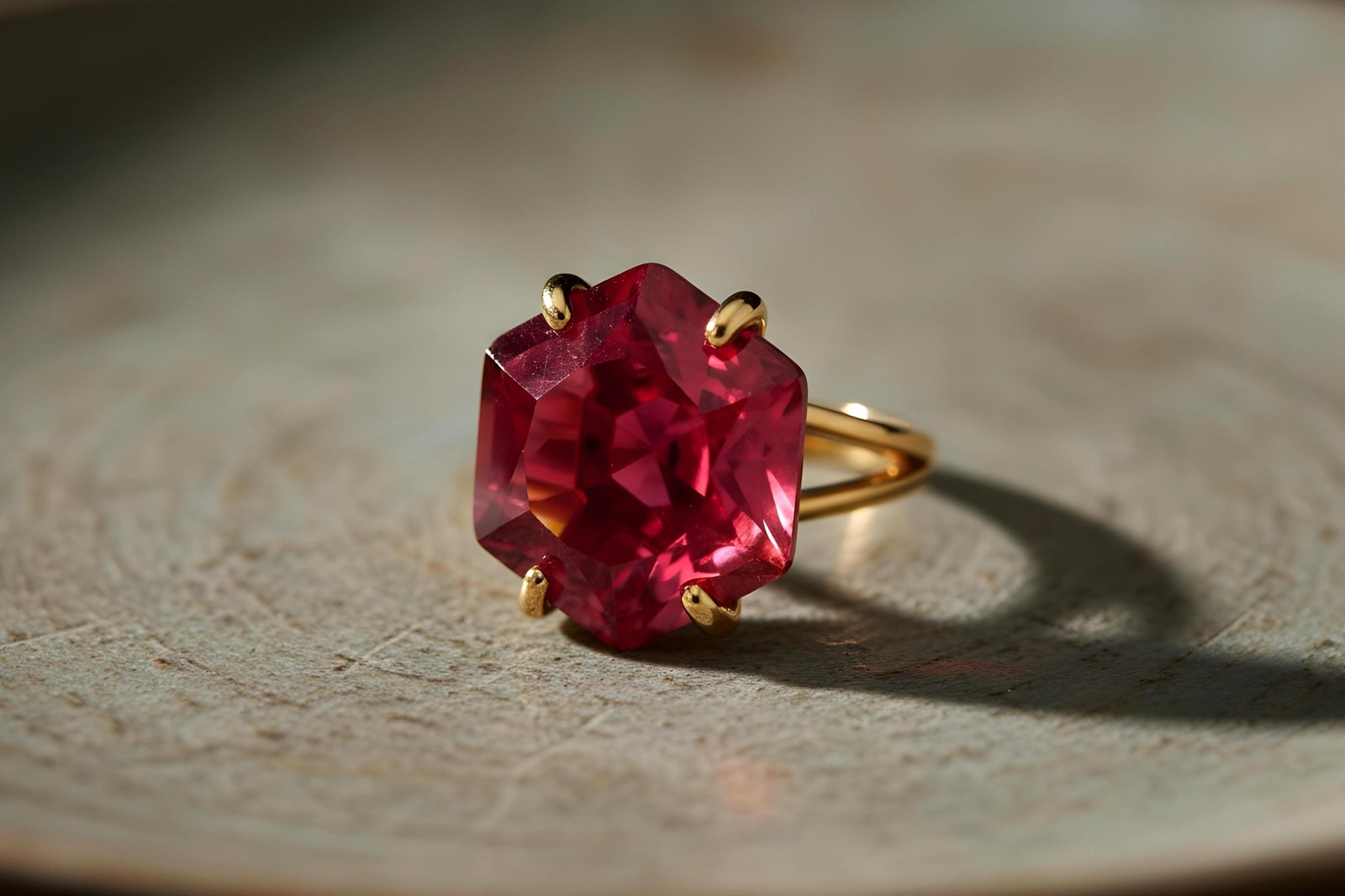 Pink Tourmaline Ring Anemone Jewelry Hexagon Cut Gold Vermeil Engraved