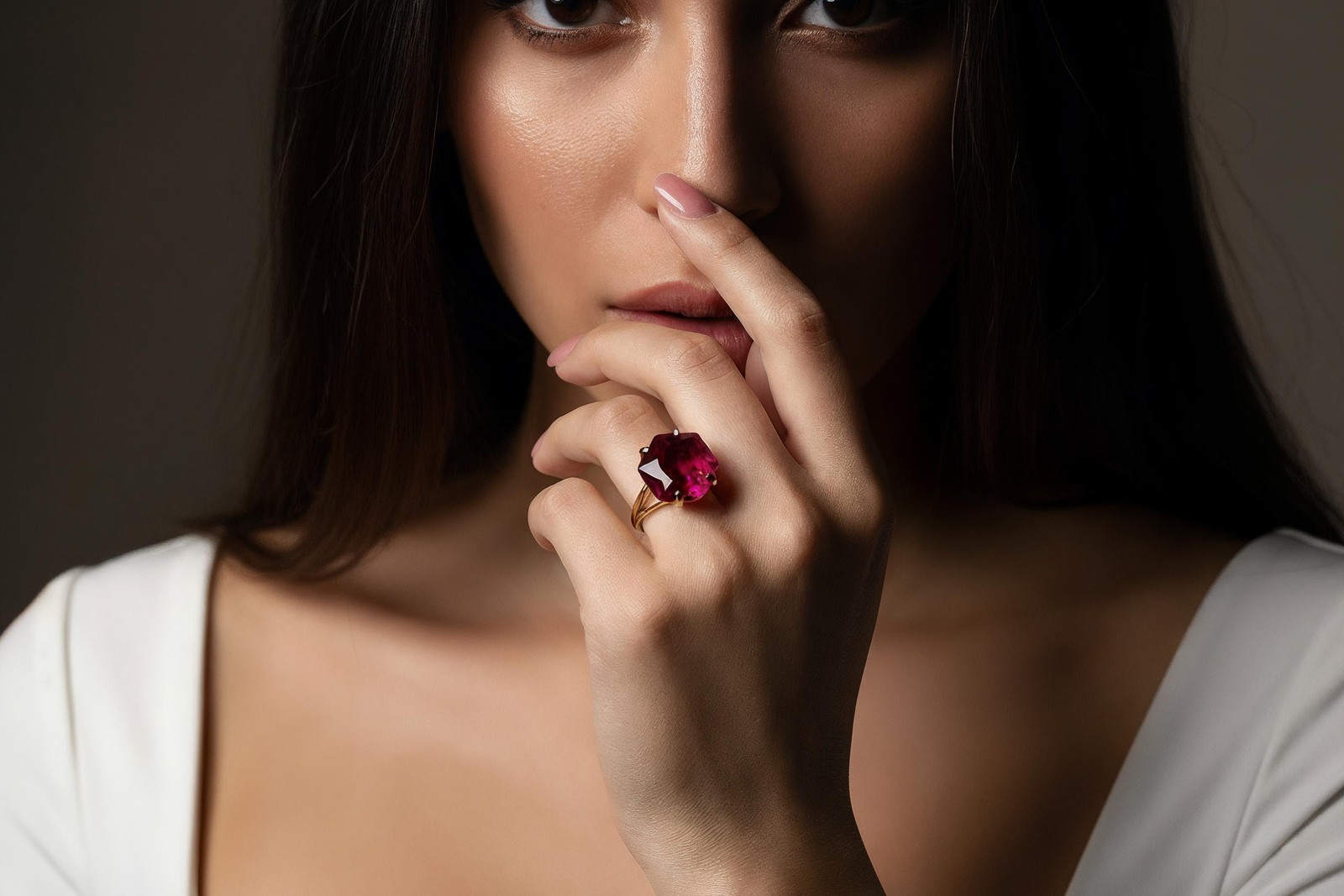 как выглядит Pink Tourmaline Ring Anemone Jewelry Hexagon Cut Gold Vermeil Engraved фото