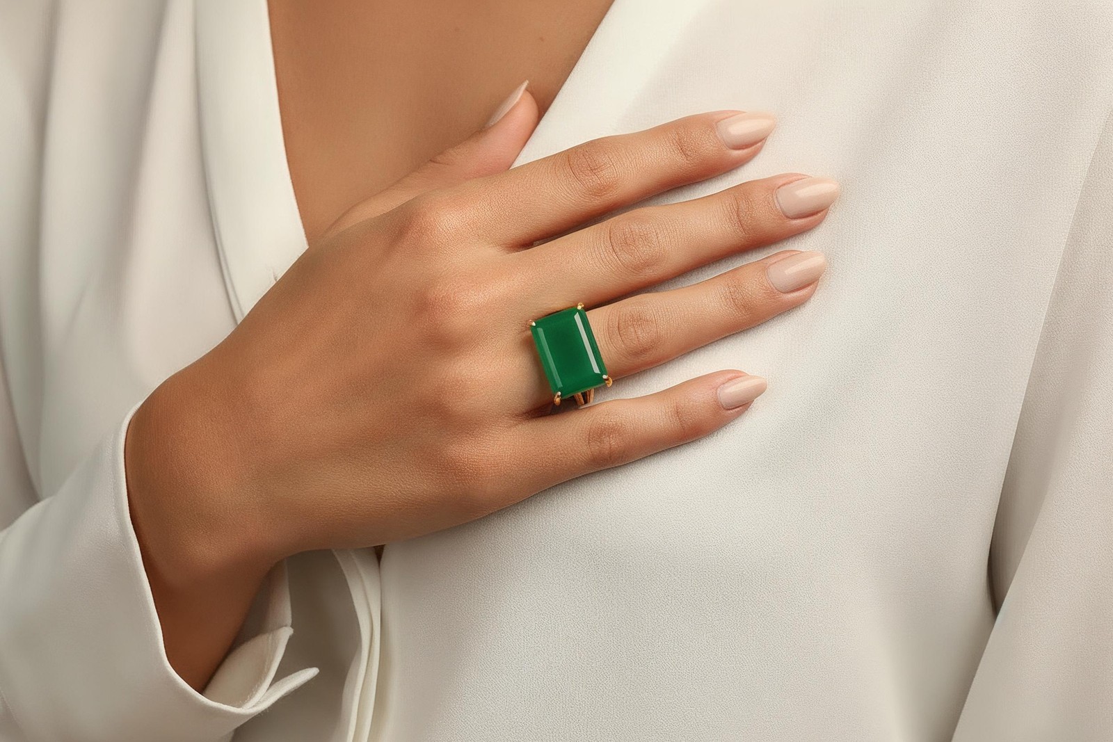 как выглядит Green Onyx Ring Anemone Jewelry Handmade 14k Gold Filled Faceted Rectangle фото