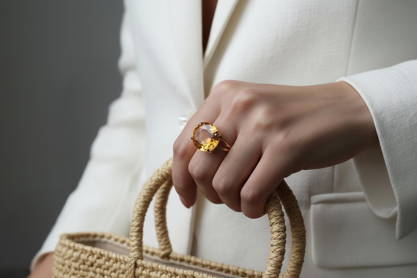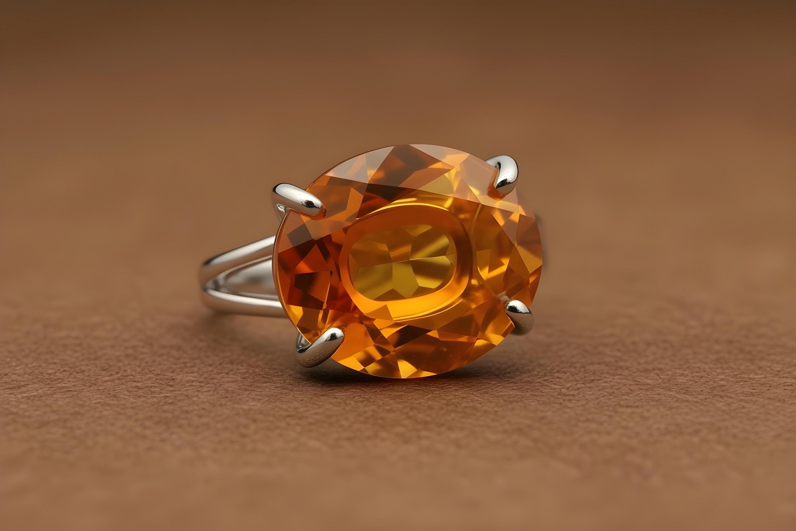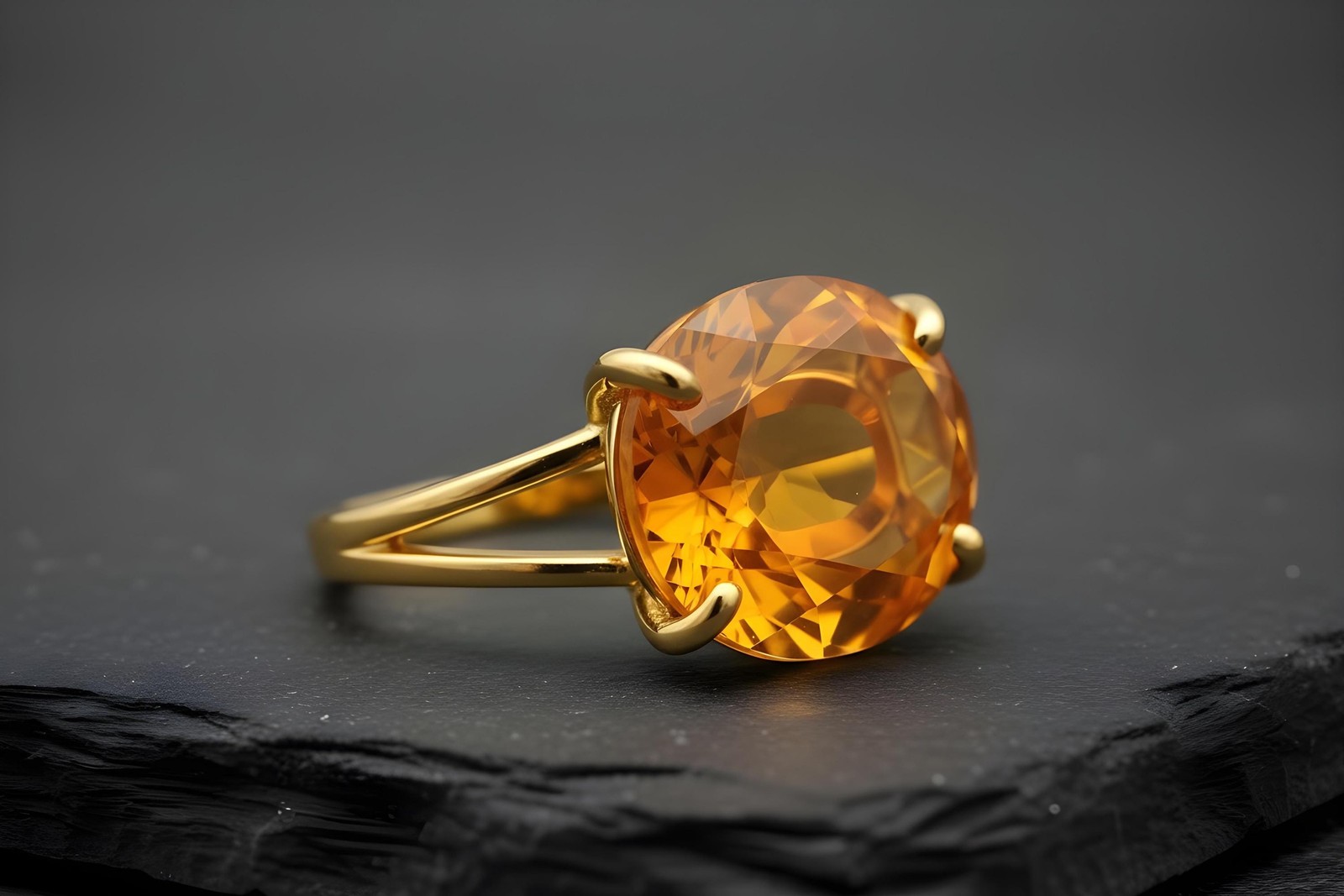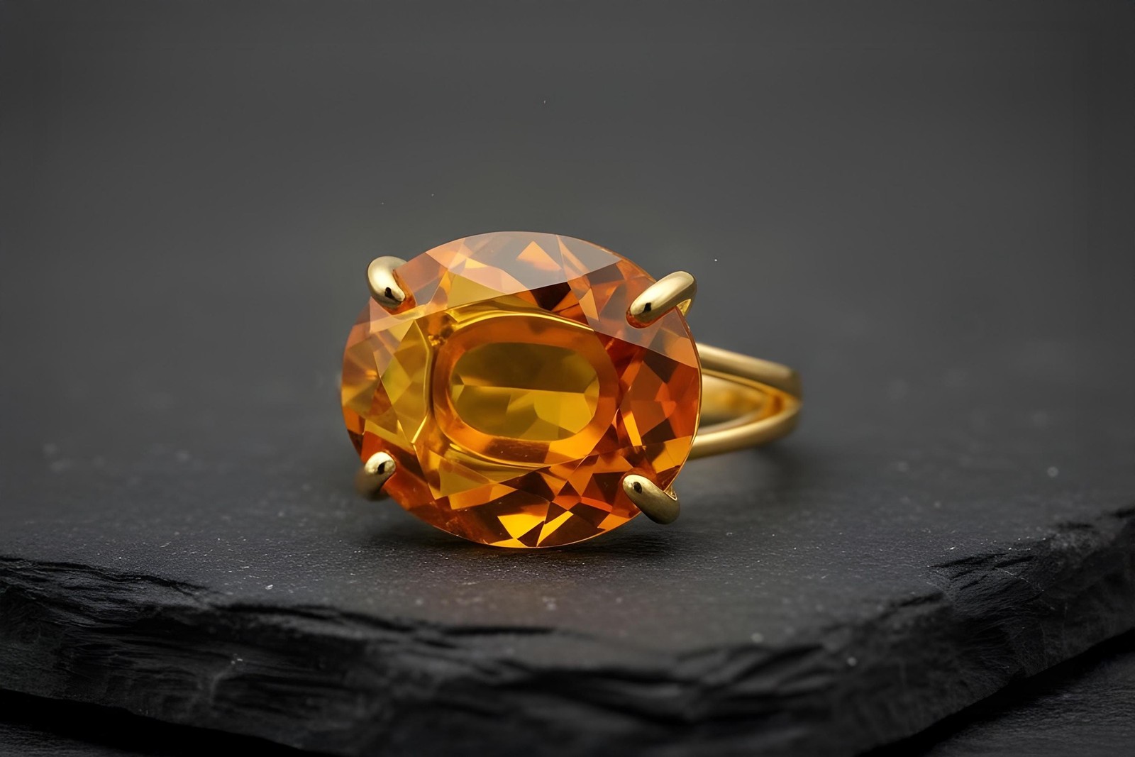 Citrine Gold Ring Anemone 14k Gold Oval Cut Faceted Gemstone November