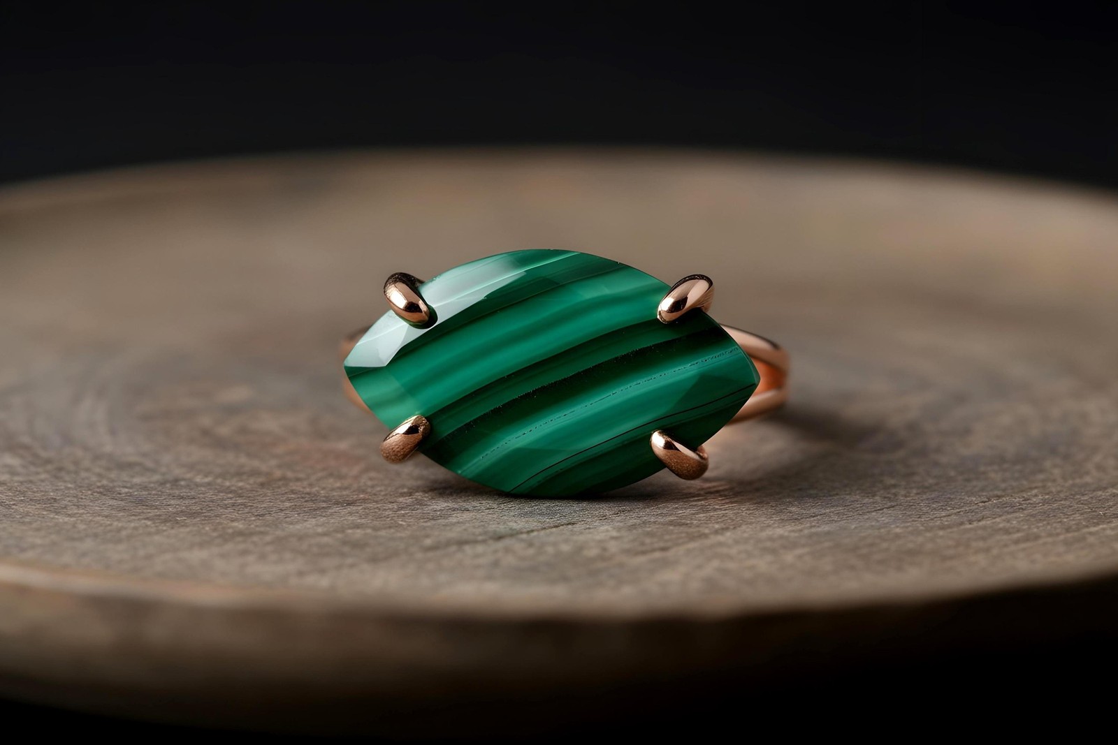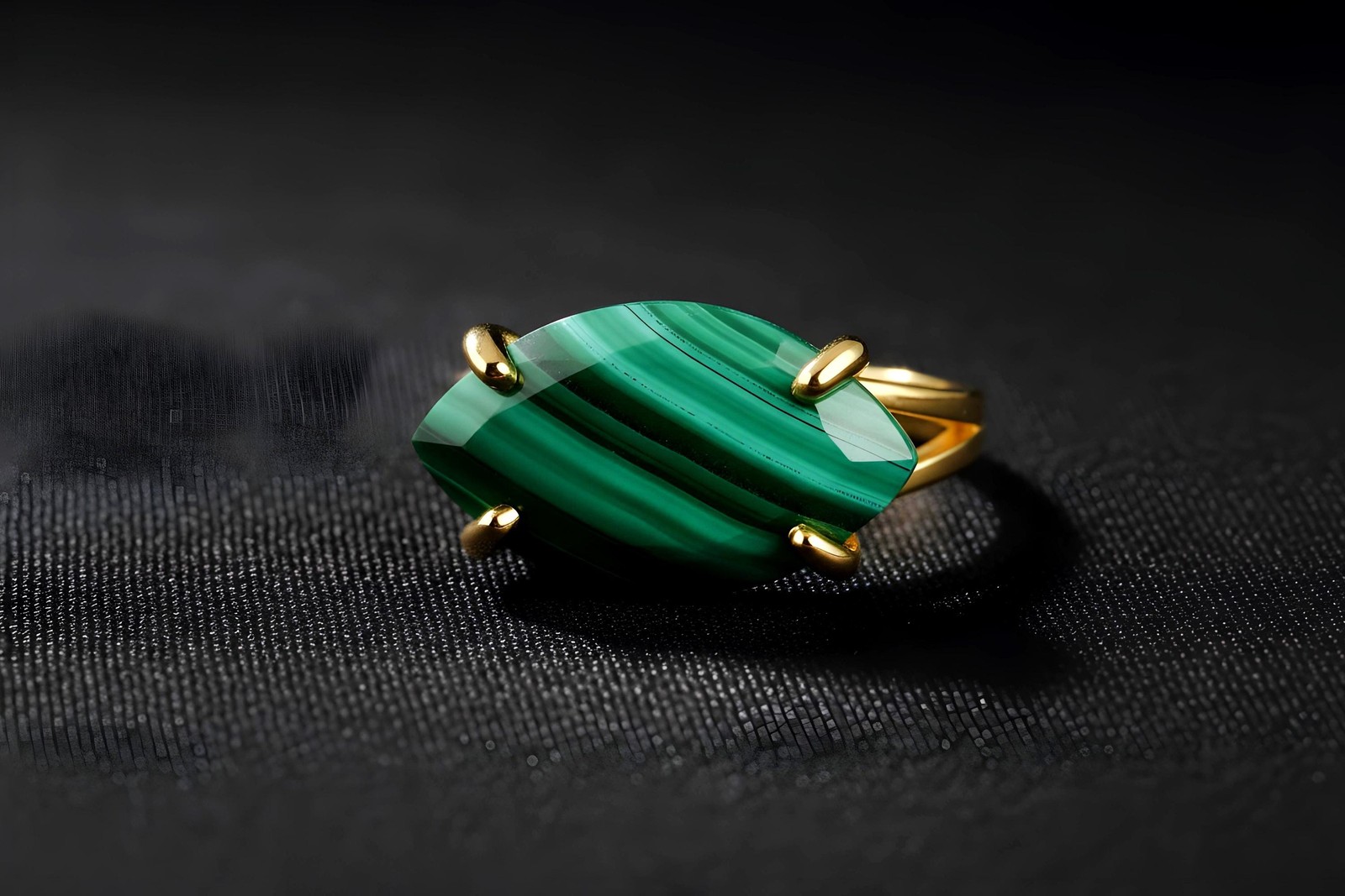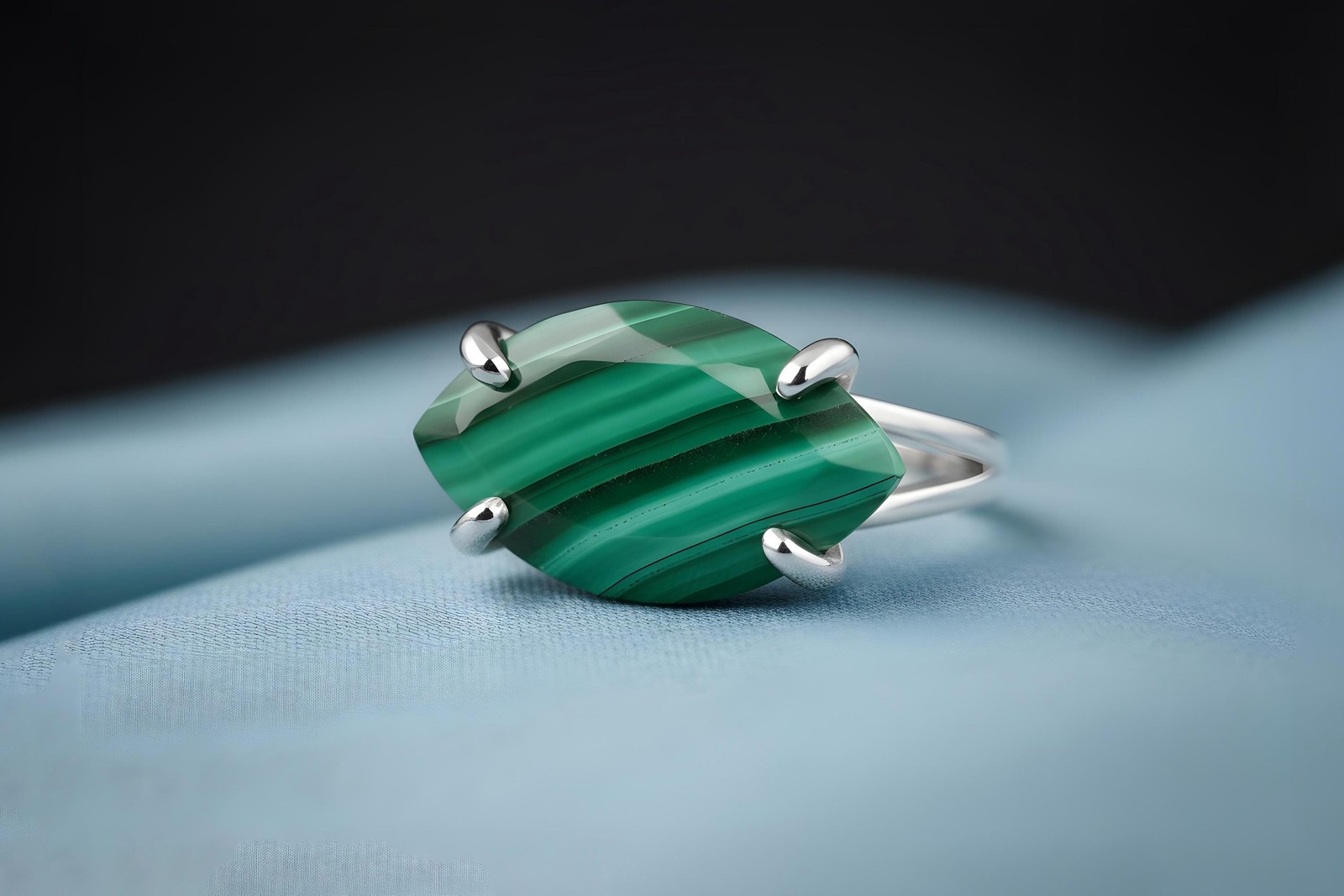 как выглядит Malachite Marquise Ring Anemone Handmade Gold Setting Wide Band фото