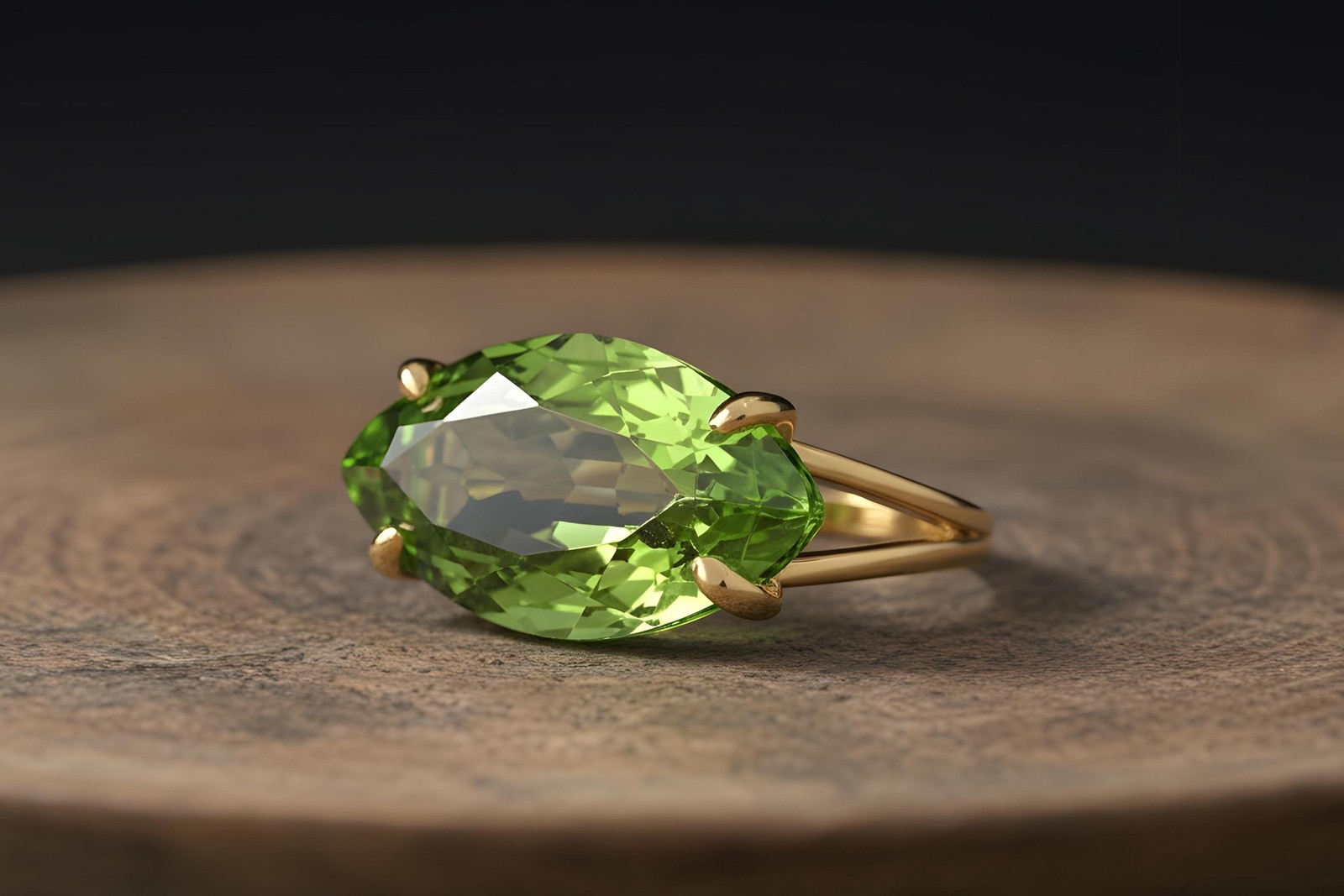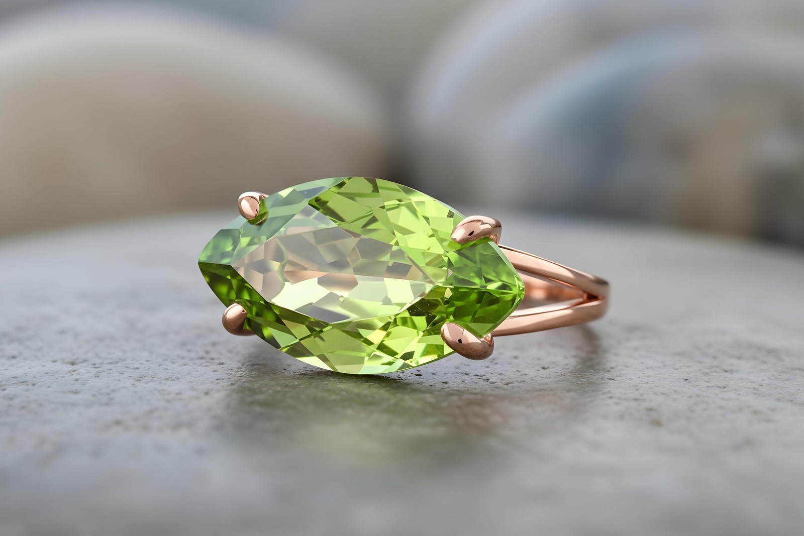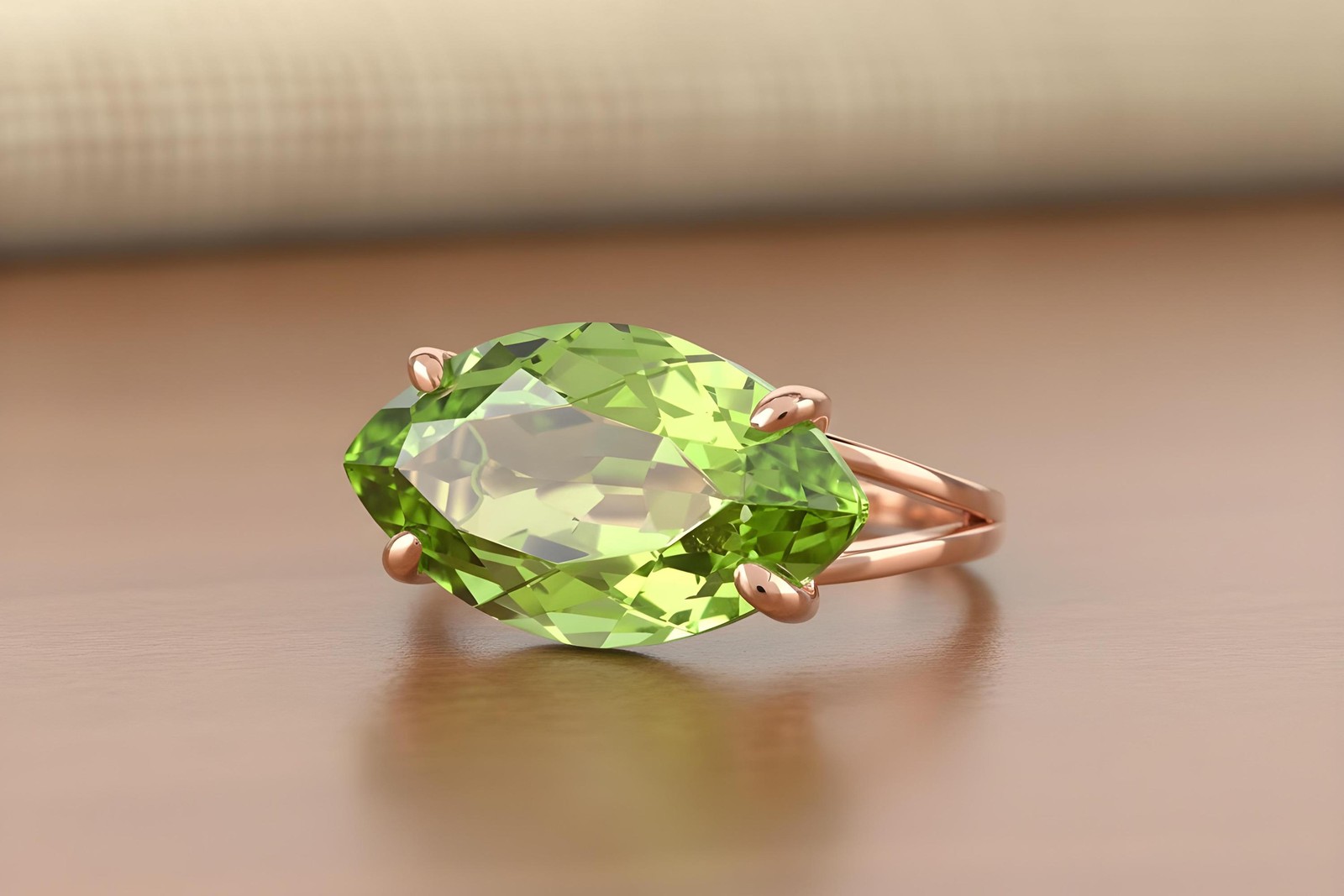 как выглядит Green Tourmaline Ring Anemone Handmade Marquise Cut 14k Yellow Gold фото