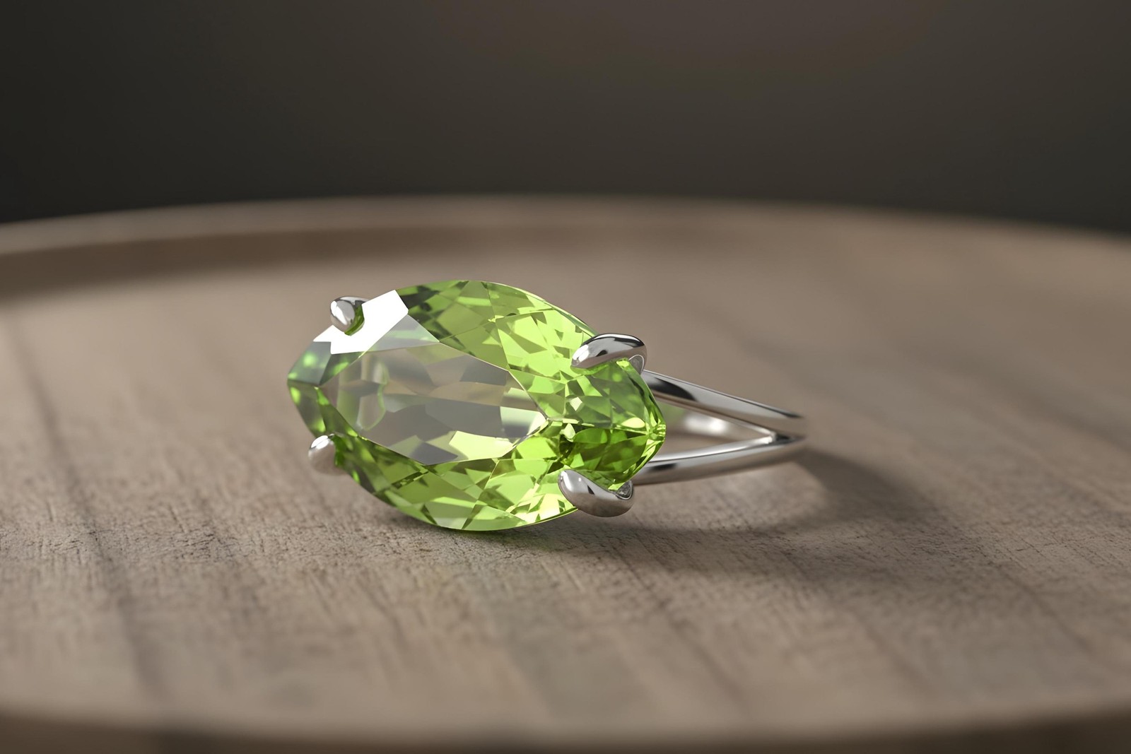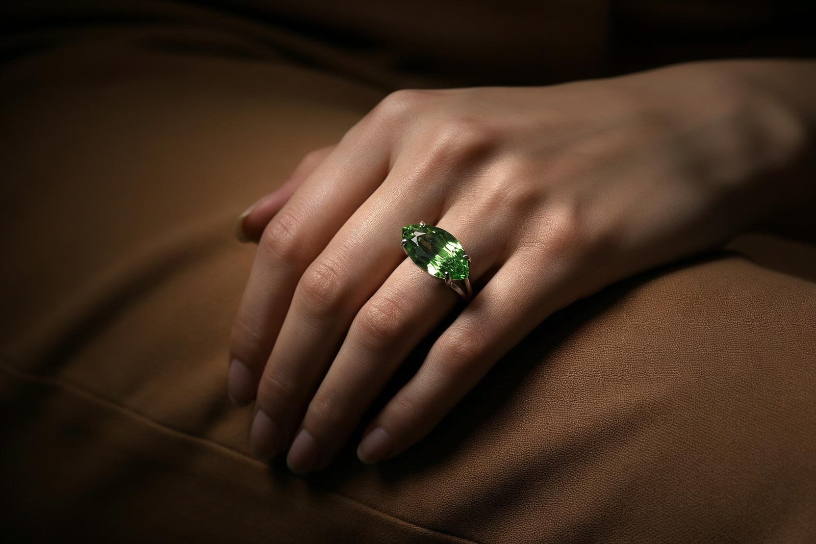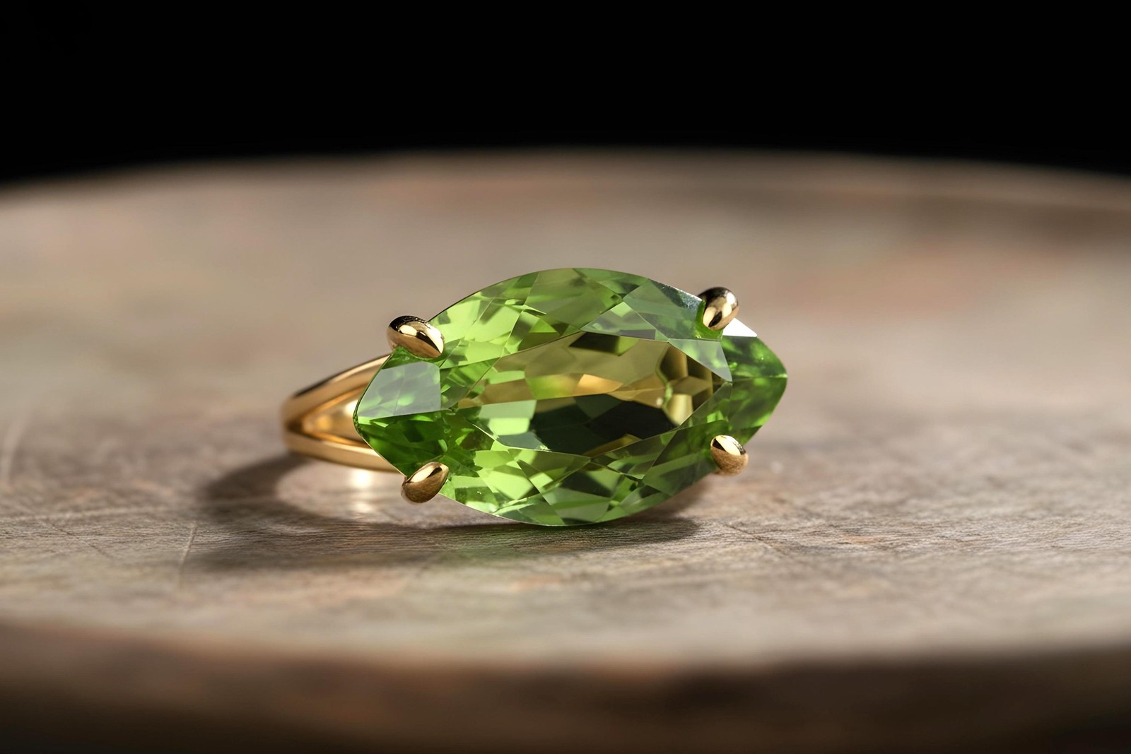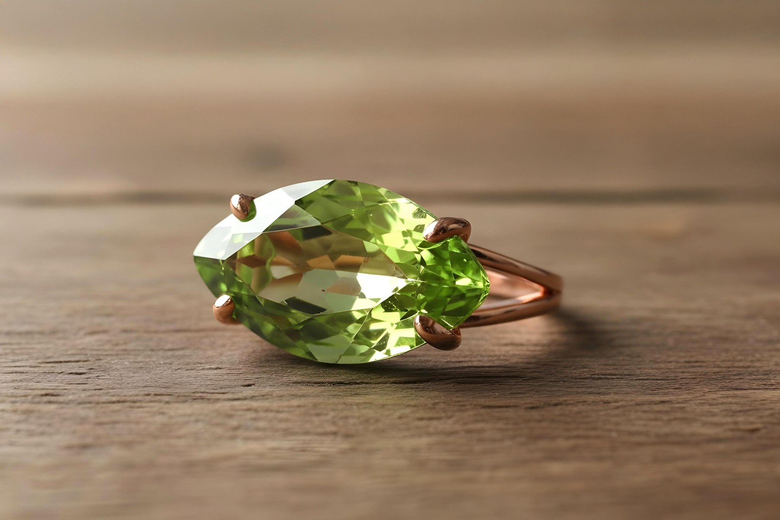 как выглядит Green Tourmaline Ring Anemone Handmade Marquise Cut 14k Yellow Gold фото