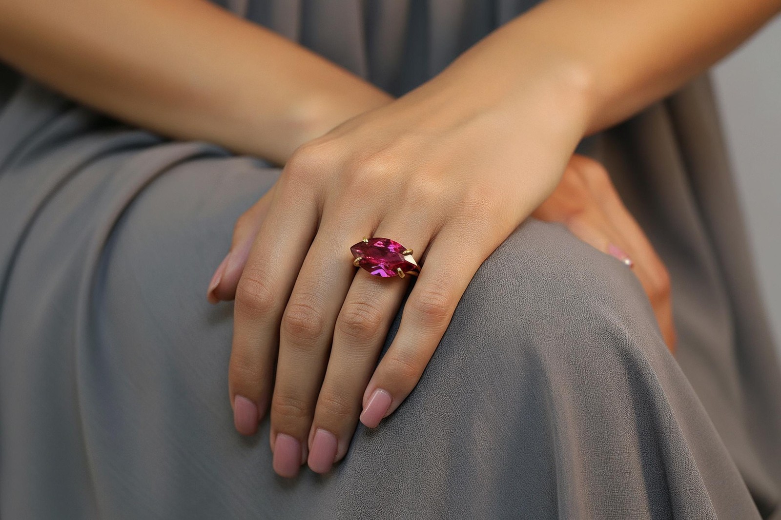 Pink Tourmaline Ring Anemone Jewelry 18k Gold Marquise Cut Gemstone