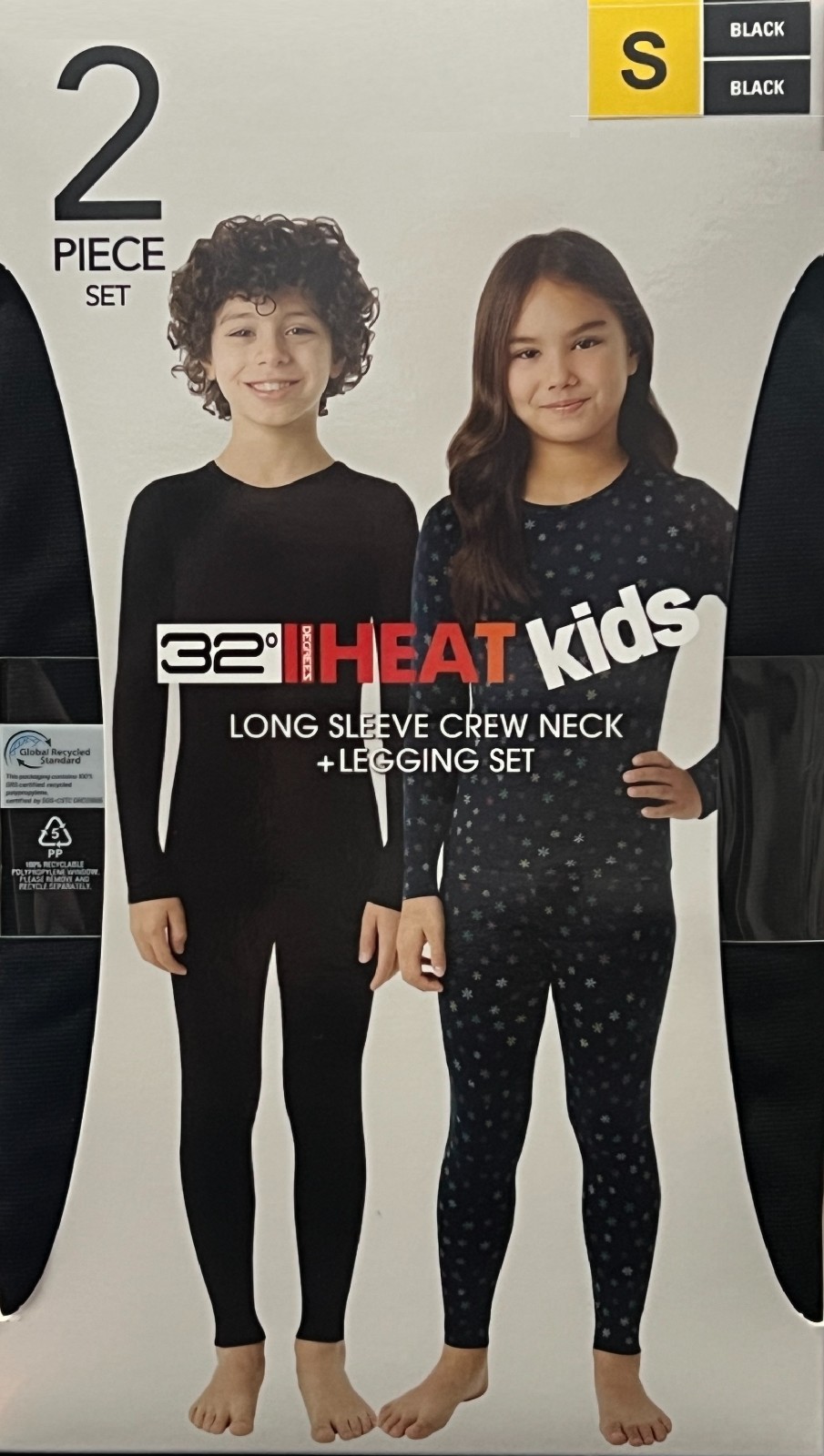 как выглядит 32 Degrees Kids Heat 2 Piece Set Black Size L 1214 Thermal Moisture Wicking NW фото