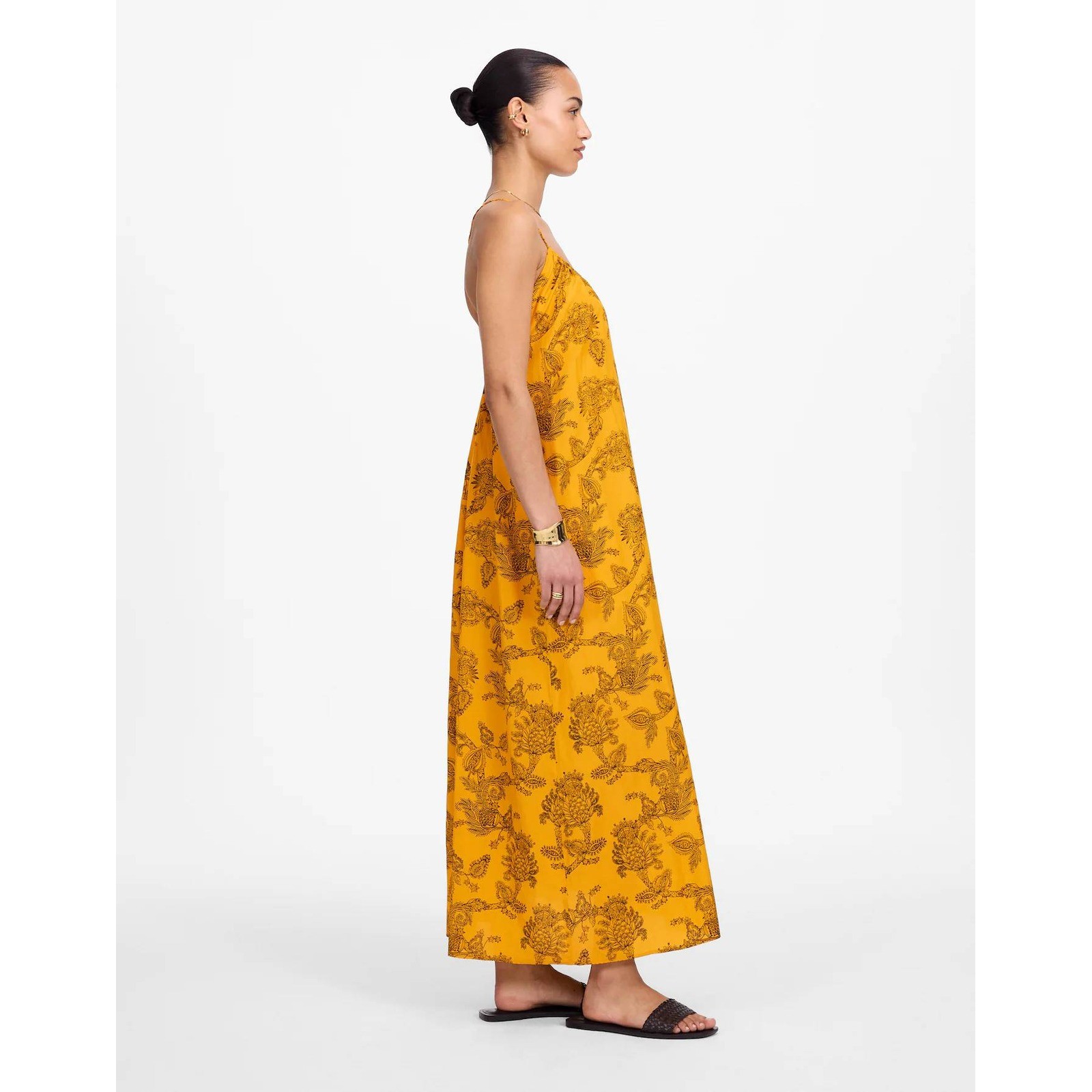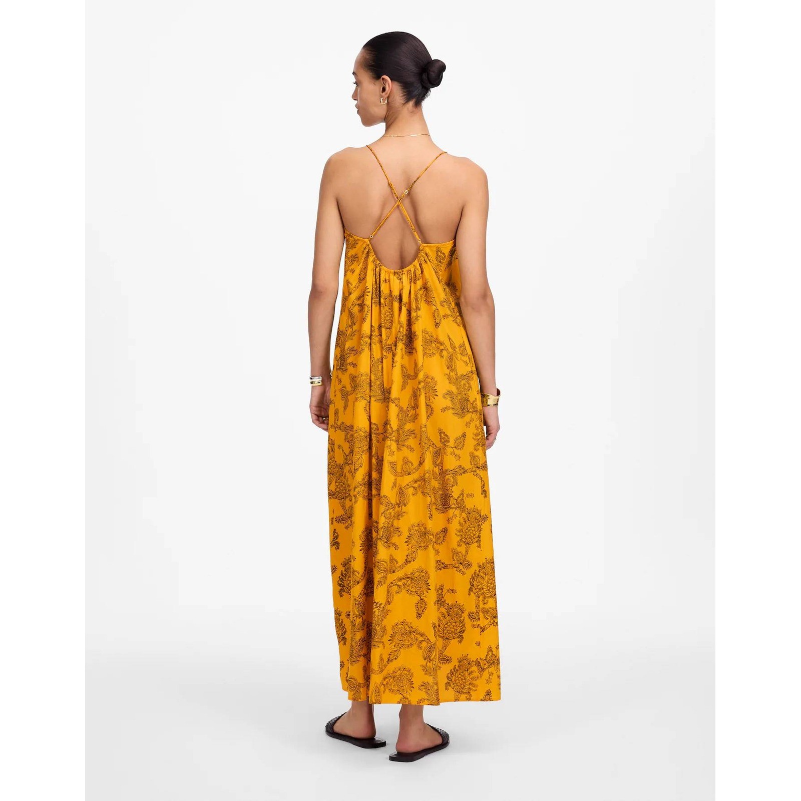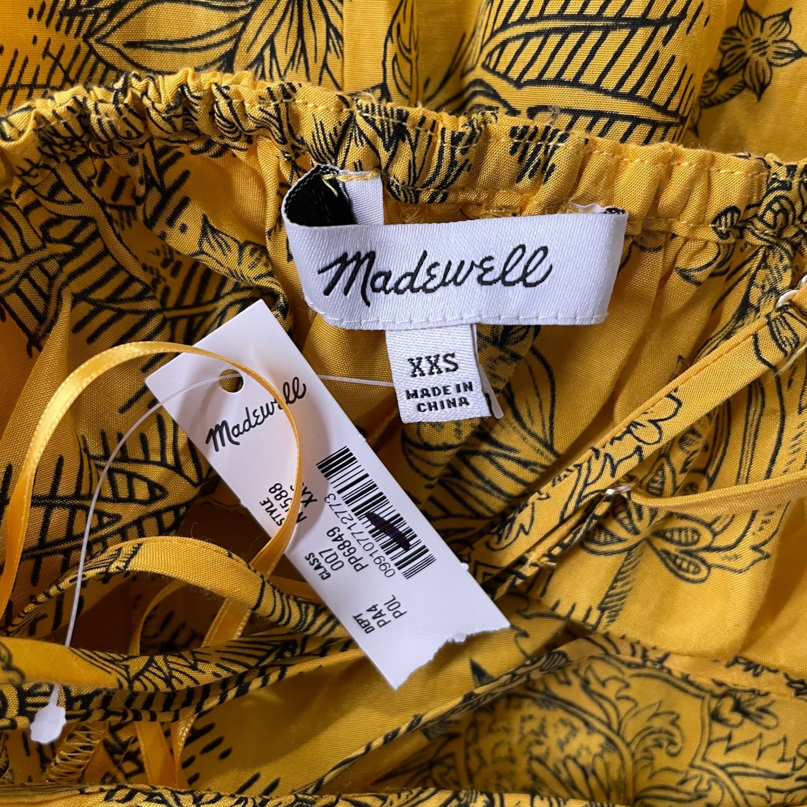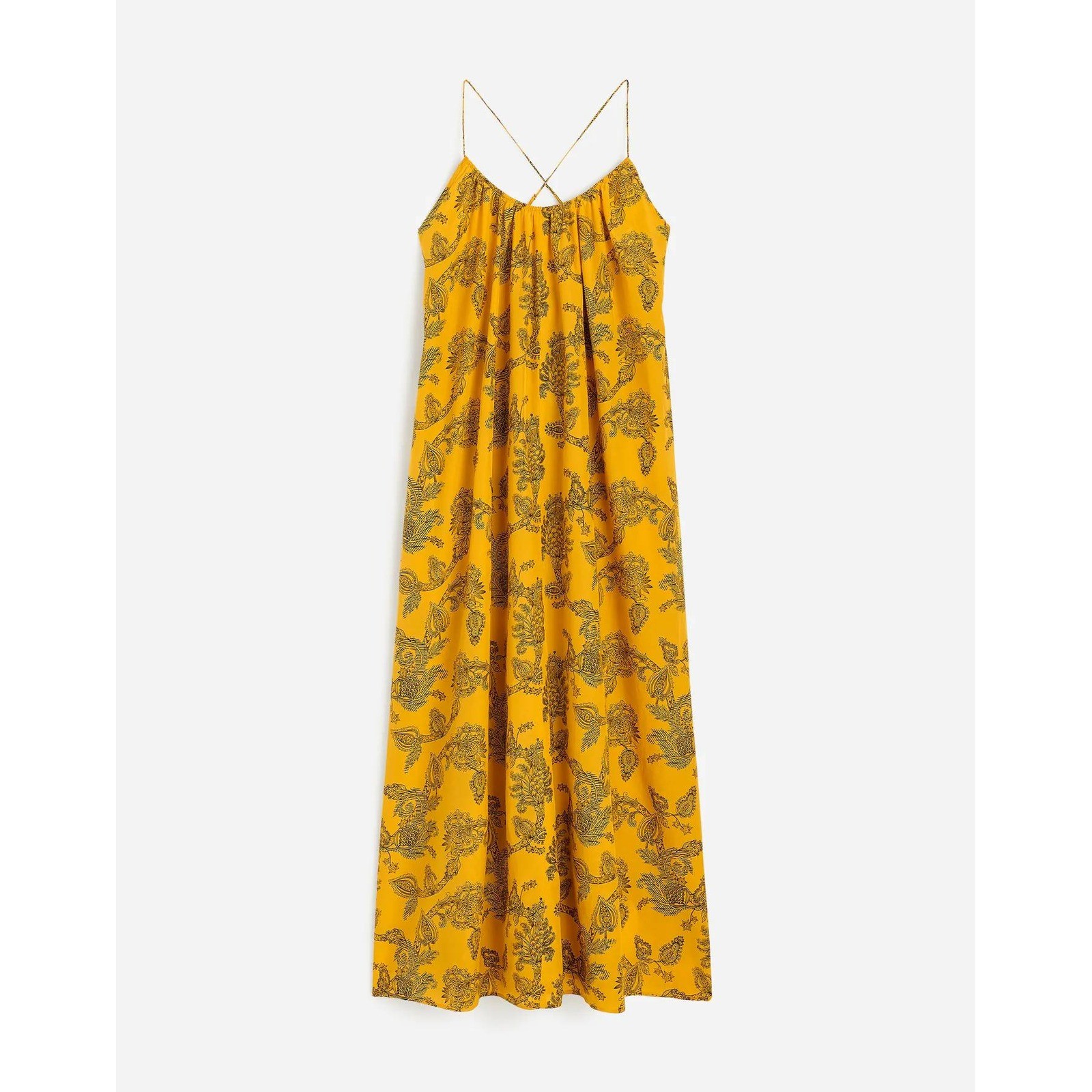 NWT Madewell Silk U Neck Crossback Maxi Dress Paisley Yellow Sz XXS Boho Preppy