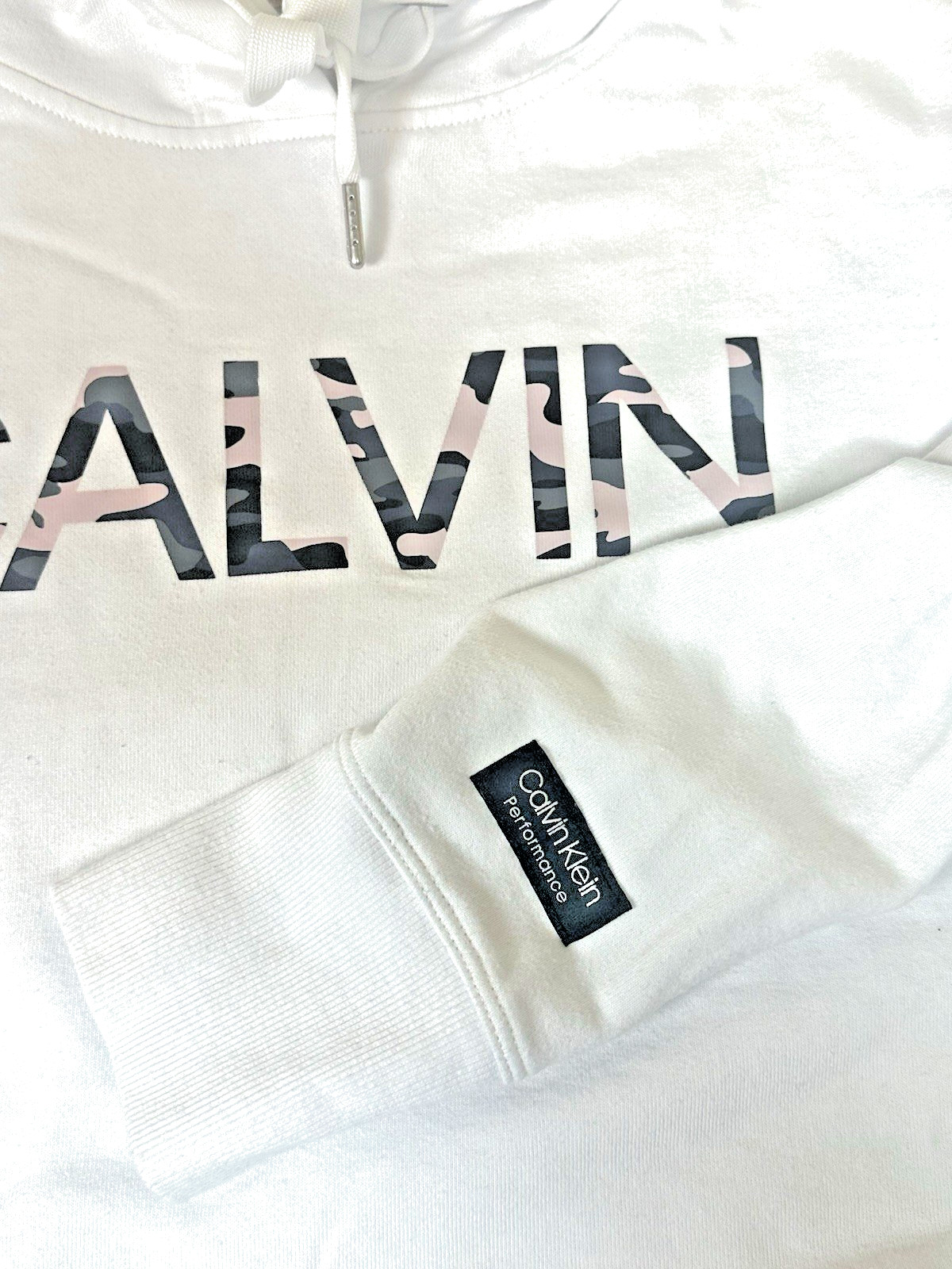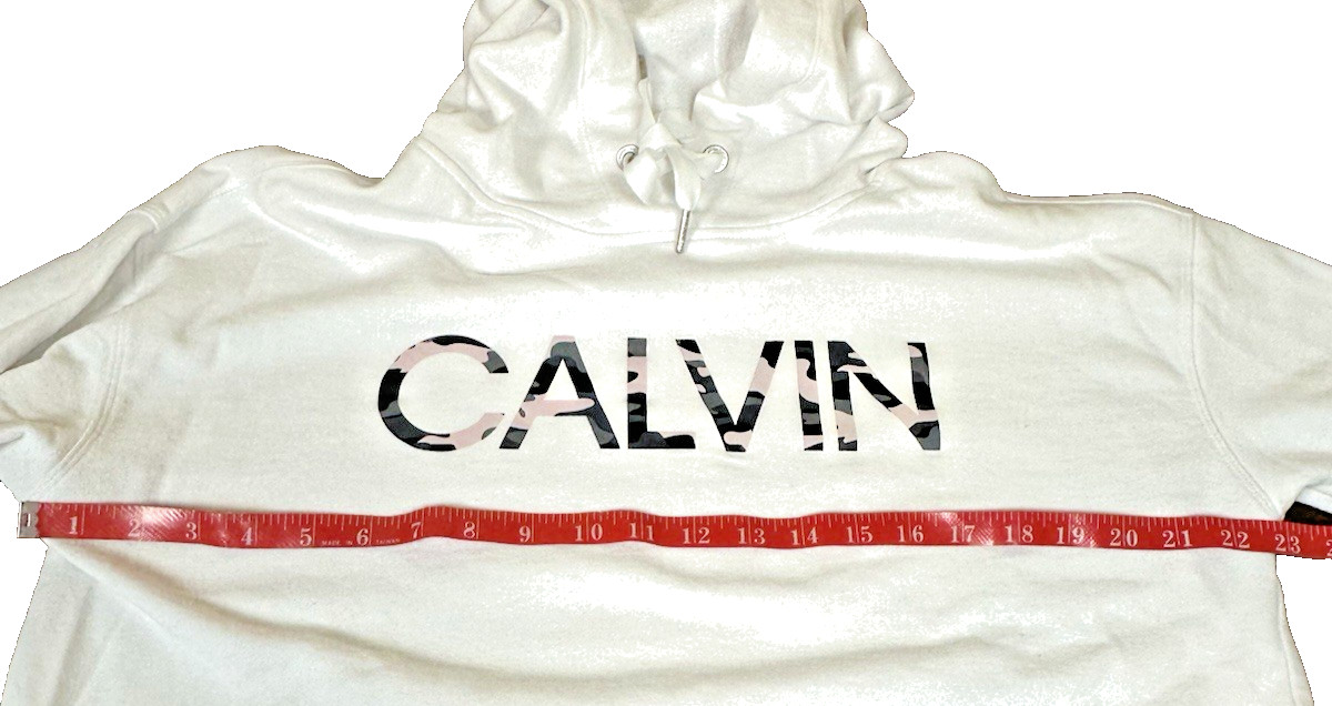 Calvin Klein Performance White Pullover Hoodie Minimal Logo Sweatshirt Medium