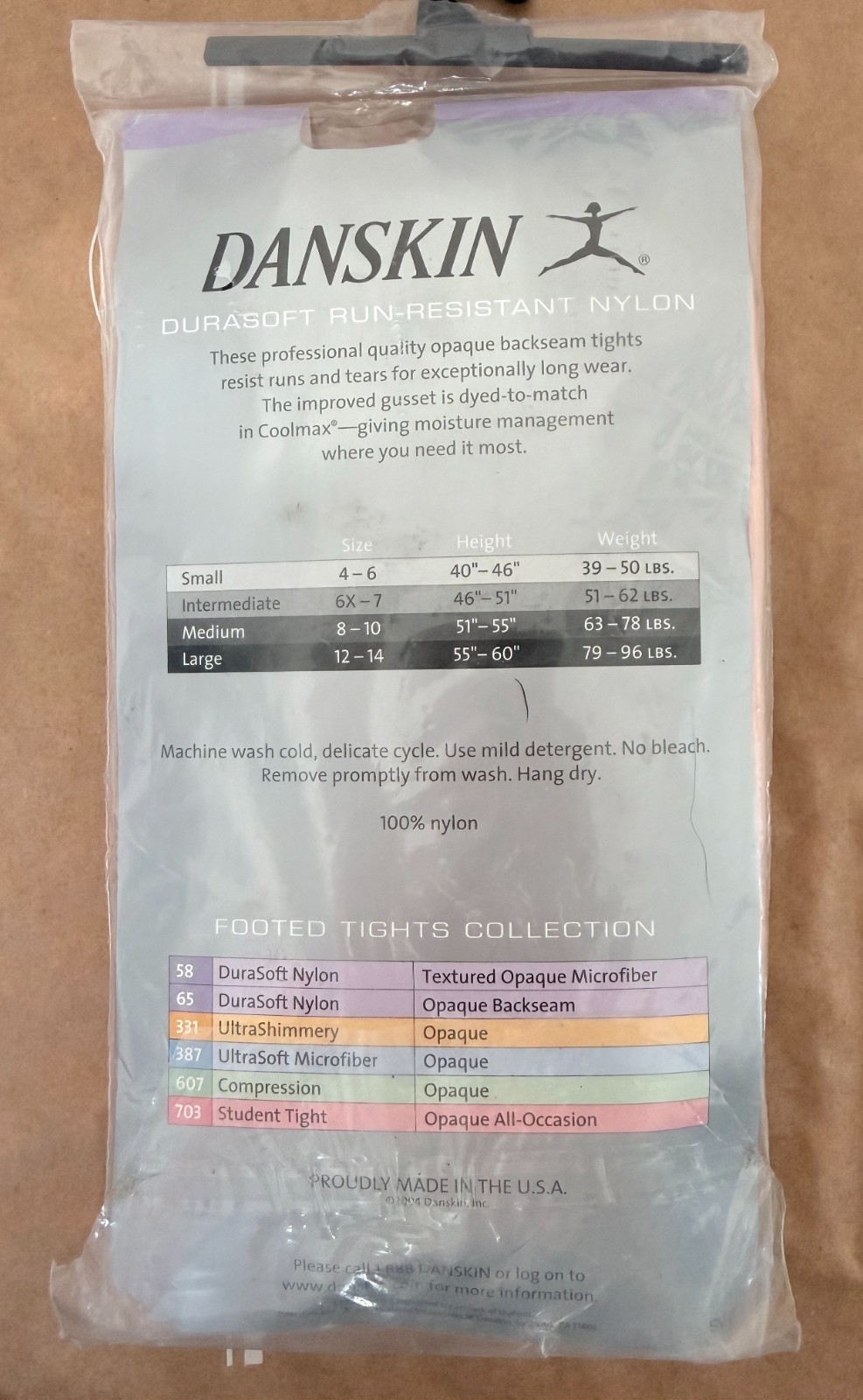 DANSKIN In Motion Footed Tights Durasoft Nylon Style 65 - Size LG - Ballet Pink