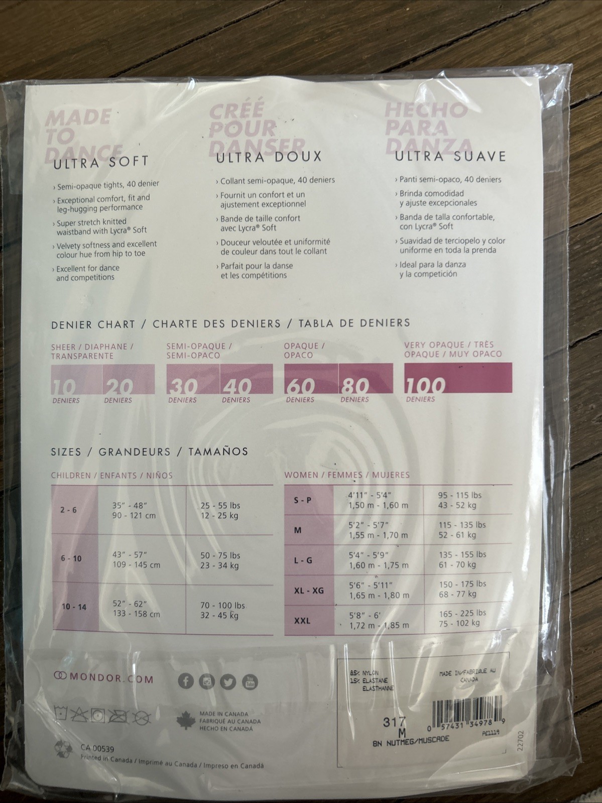как выглядит Mondor Footless Dance Tights 8N Nutmeg Brand New фото