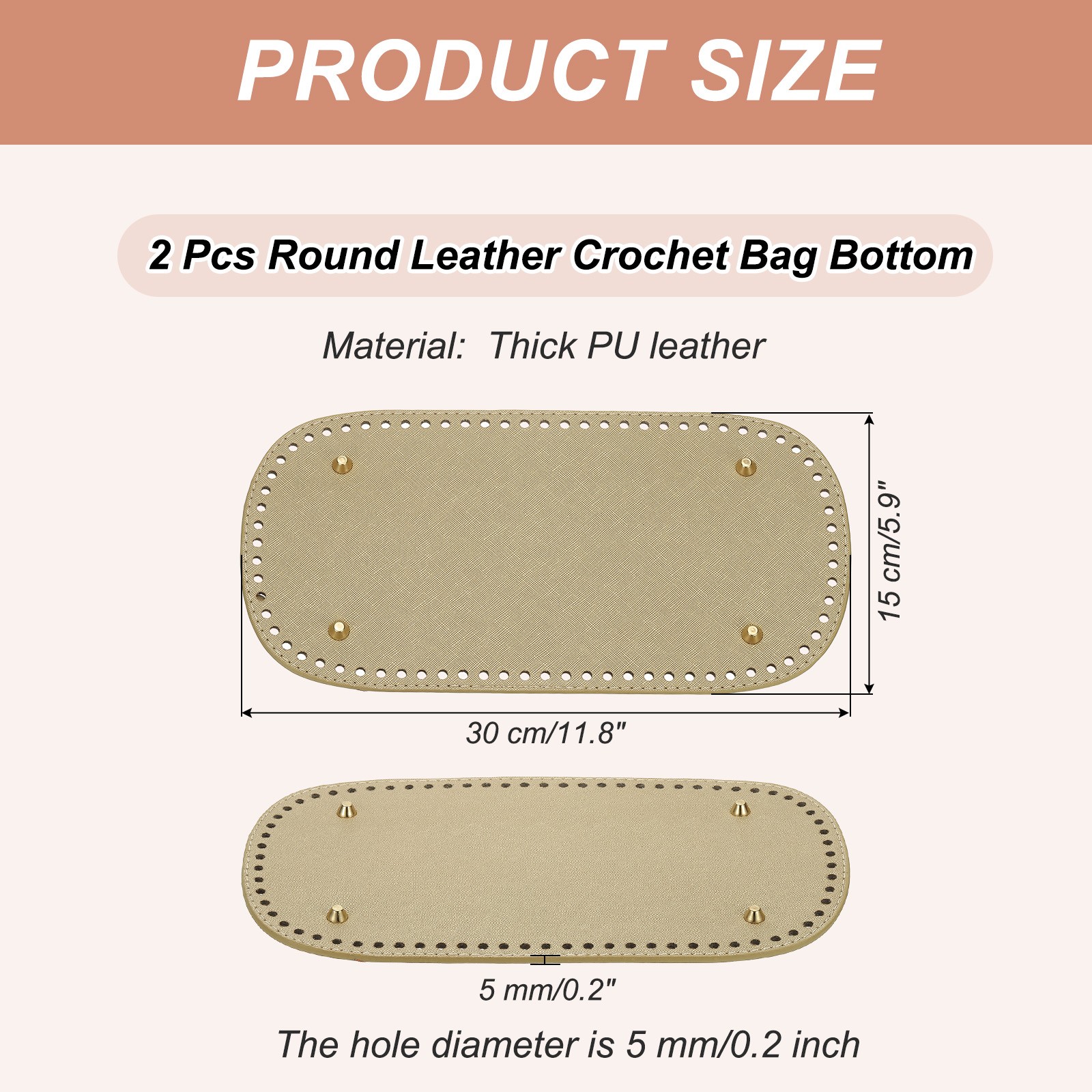 2Pcs 5.9x11.8 Oval Leather Crochet Bag Bottom with Holes, Golden