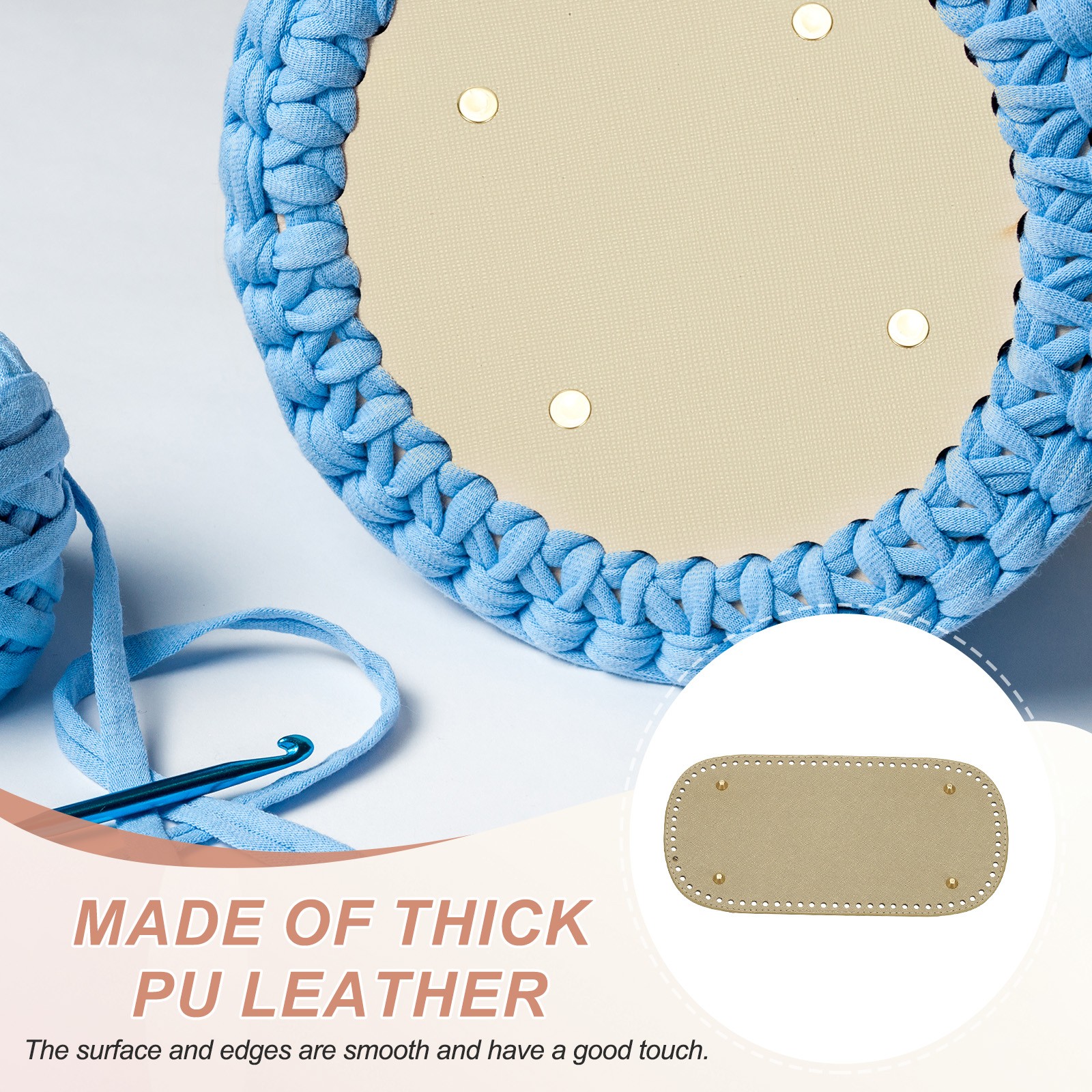 как выглядит 2Pcs 5.9"x11.8" Oval Leather Crochet Bag Bottom with Holes, Golden фото