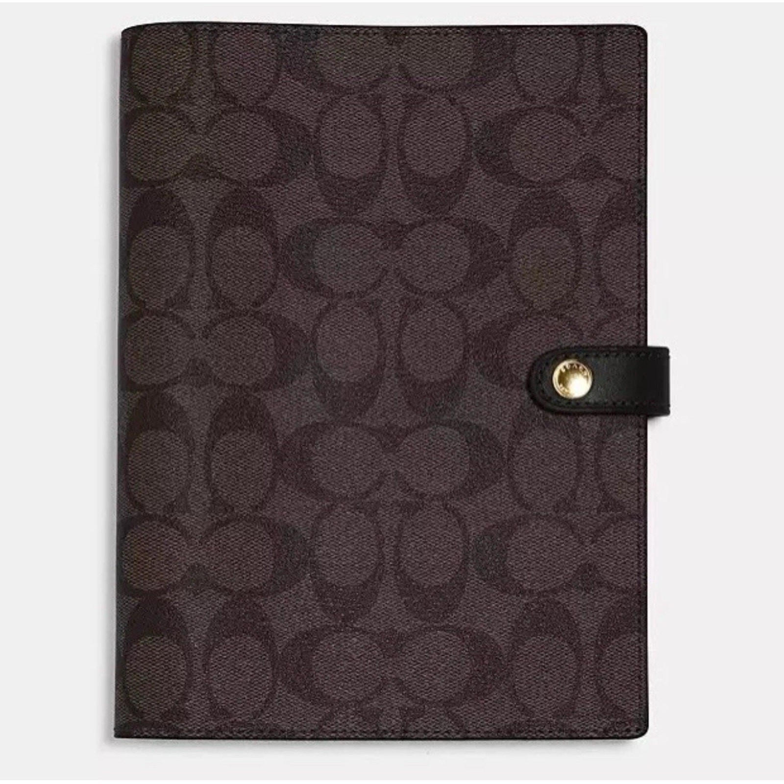 NWT Coach Snap Notebook cz198 Walnut Black Signature Canvas/Smooth leather