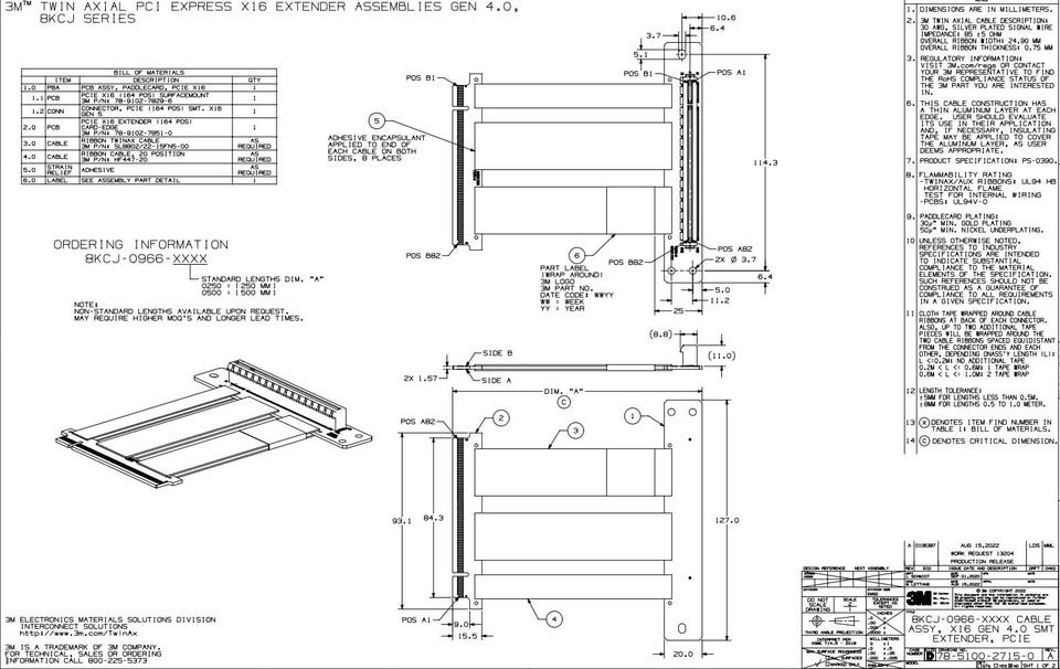 PCIE 4.0 X16 GPU Riser Cable - 500mm 3M Quality, New