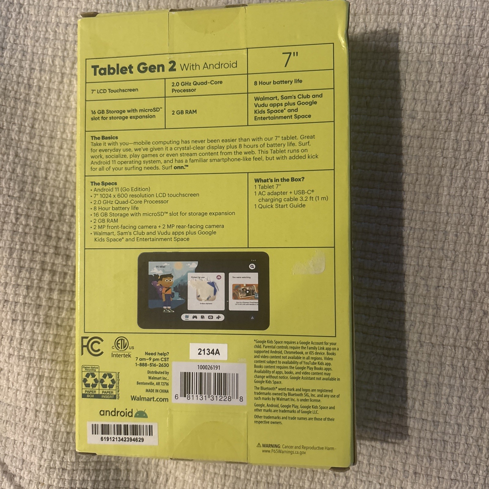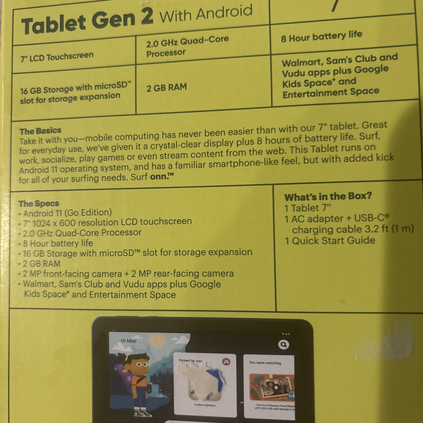 как выглядит ONN surf gen 2 16GB Wi-Fi 4G, 2GB, 7 inch Tablet NIB still sealed фото