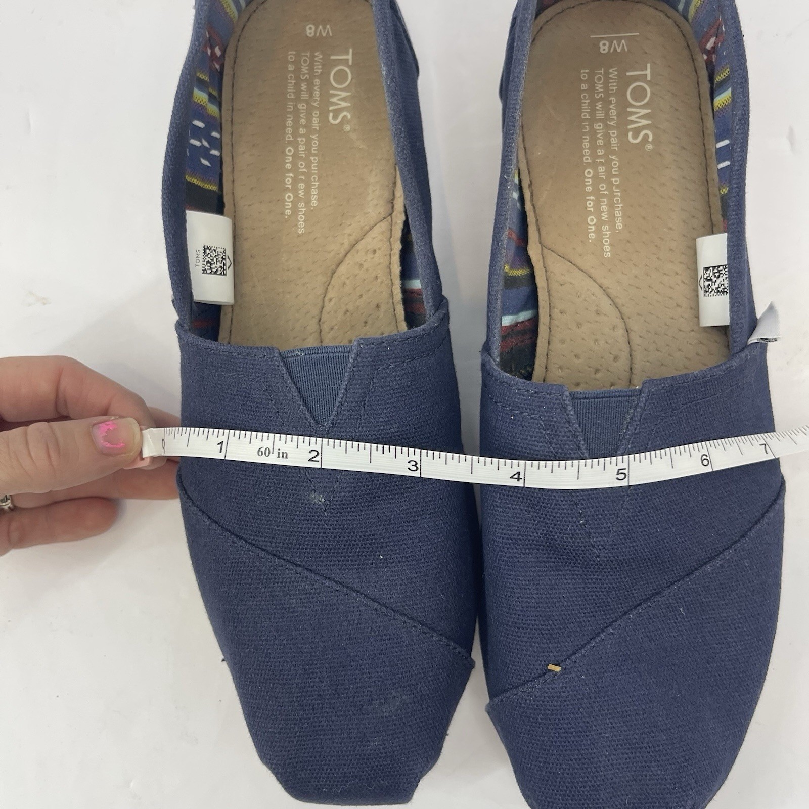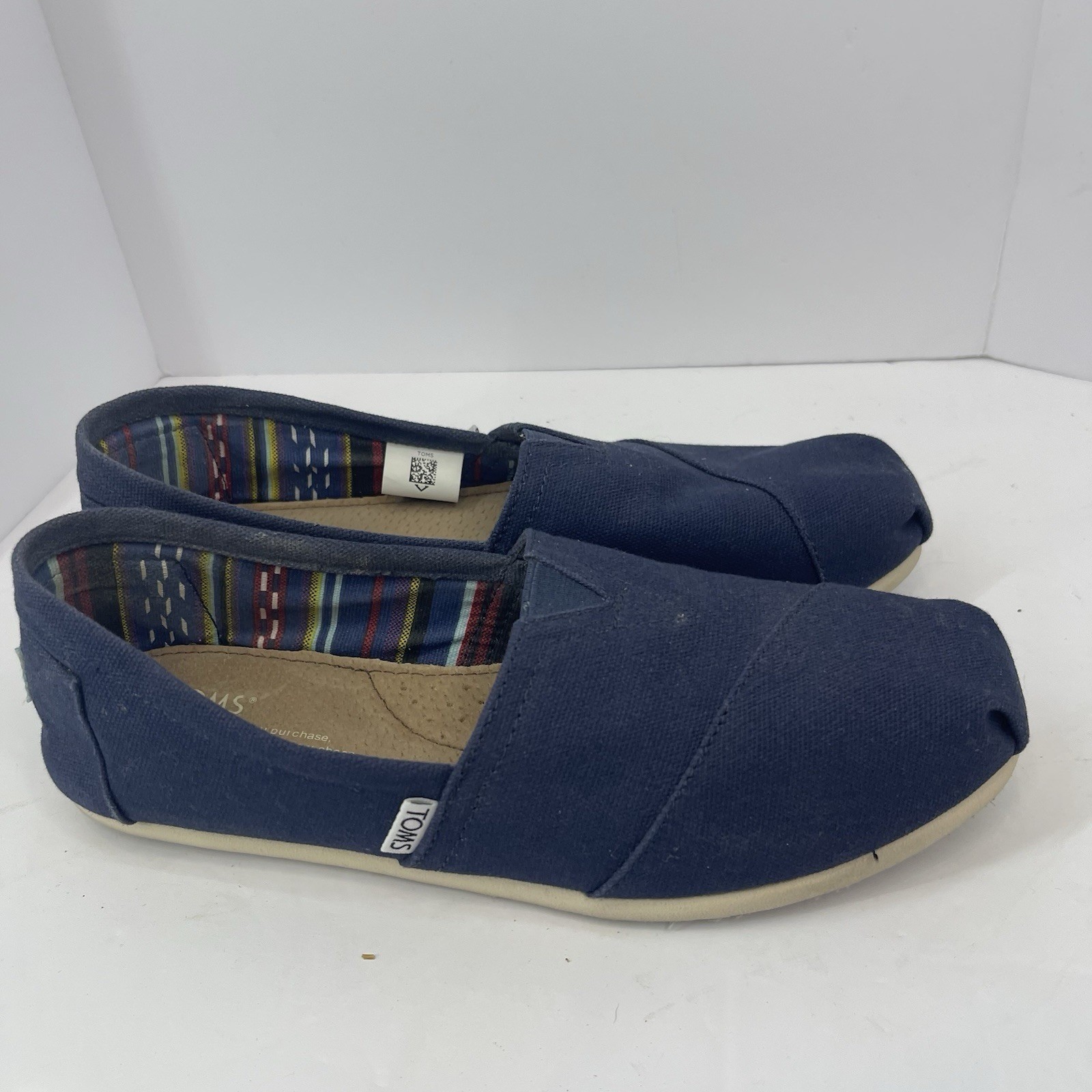 TOMS Shoes Womens Alpargata Navy Aztec Lining 8 Slip On Comfy Walking Casual