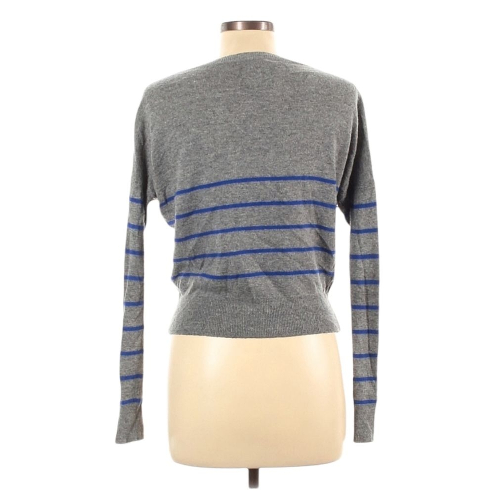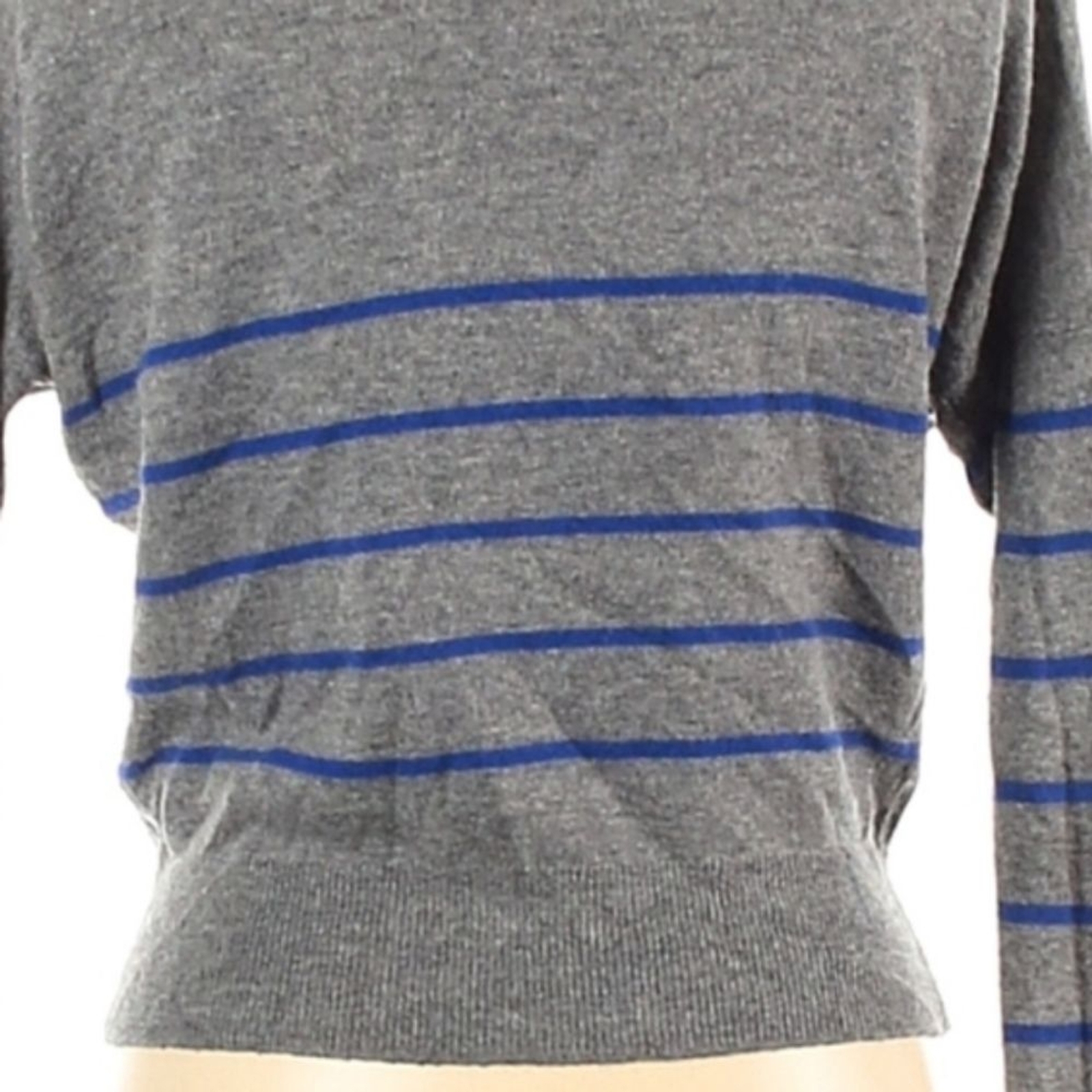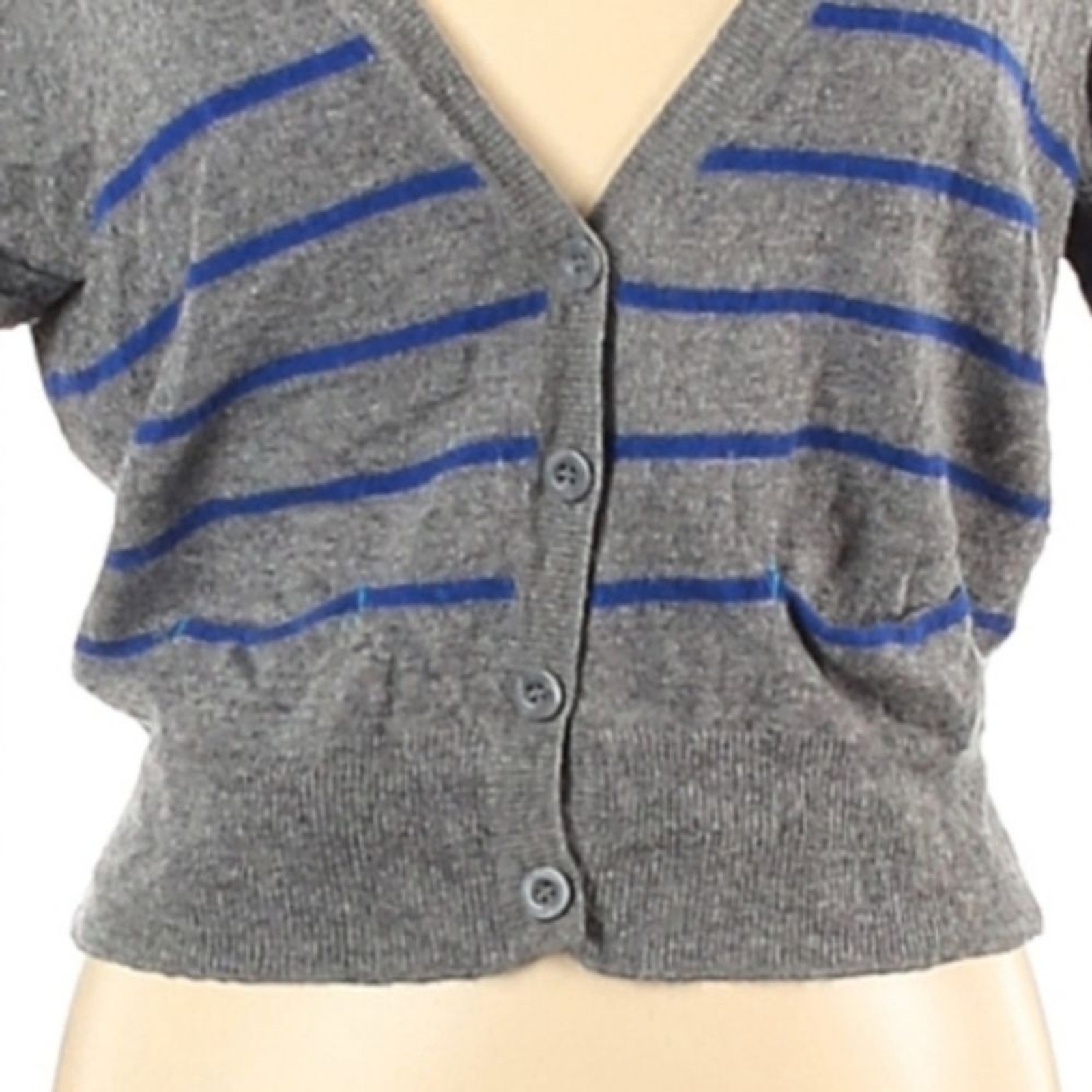 как выглядит Vintage Y2K AEO American Eagle Cardigan Sweater L Gray Blue Striped Preppy Layer фото