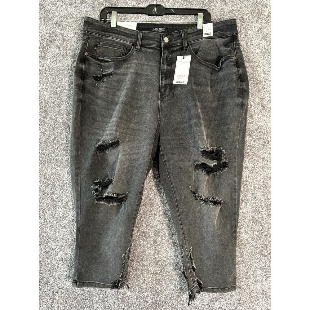 как выглядит NWT Judy Blue Black Destroyed High Rise Skinny Fit Capri Jeans Size Plus 22W фото