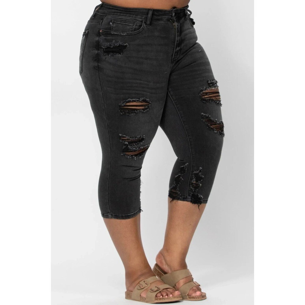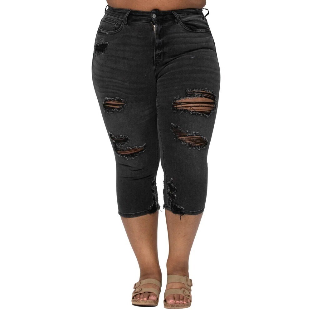 NWT Judy Blue Black Destroyed High Rise Skinny Fit Capri Jeans Size Plus 22W