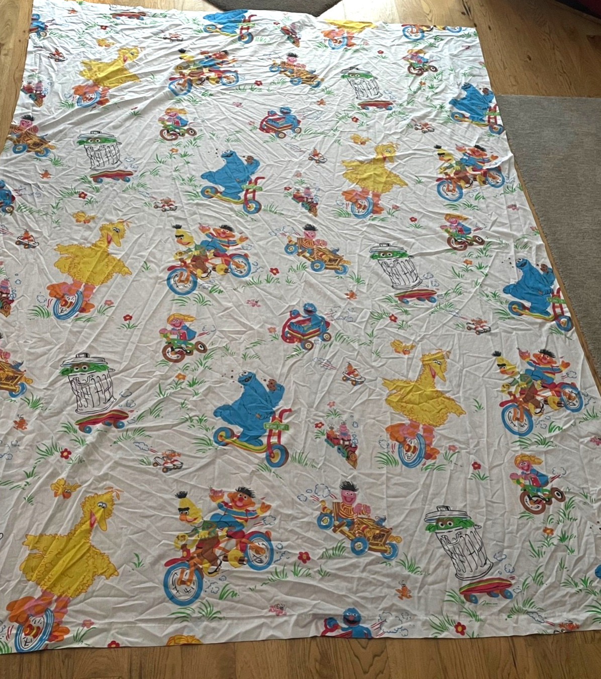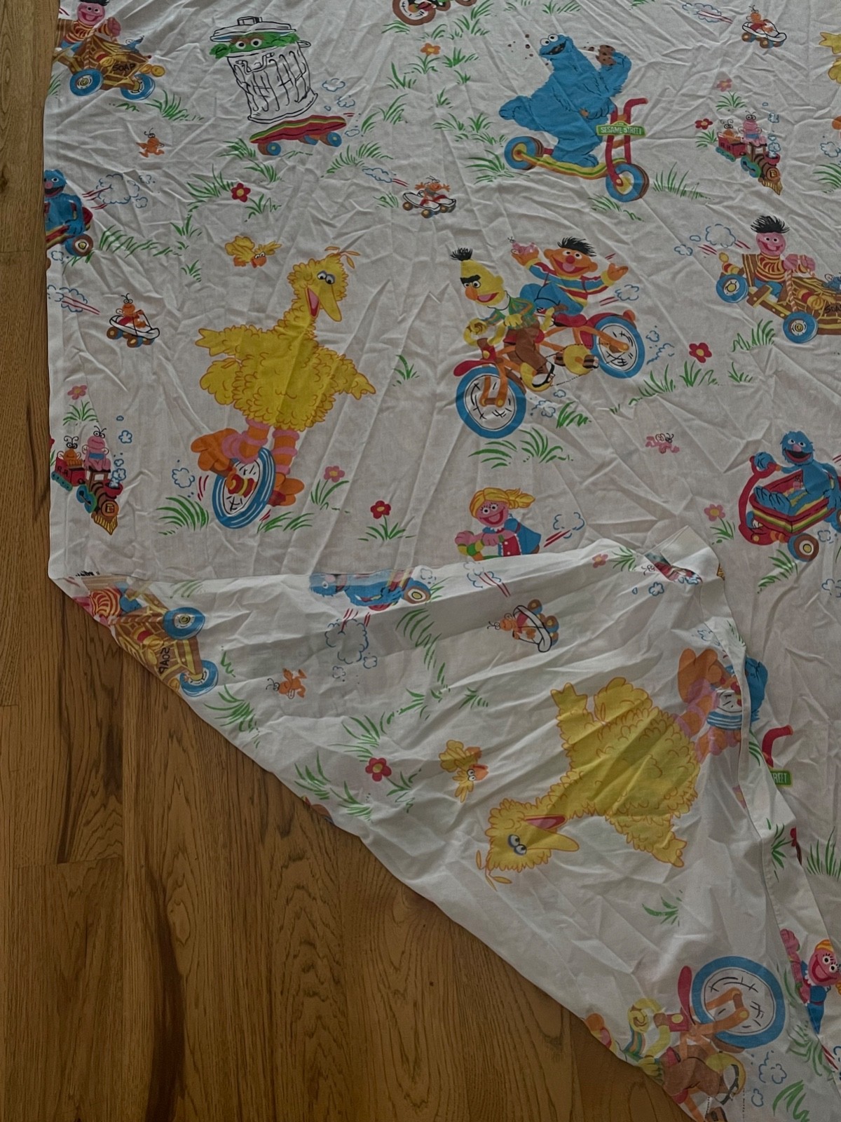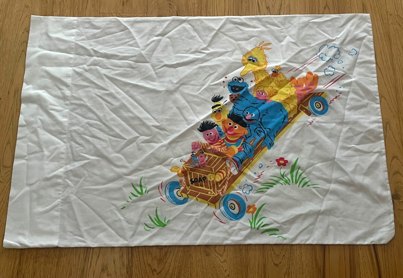 Vtg Sesame Street Bedding Twin flat sheet 1 pillow case wheels transportation