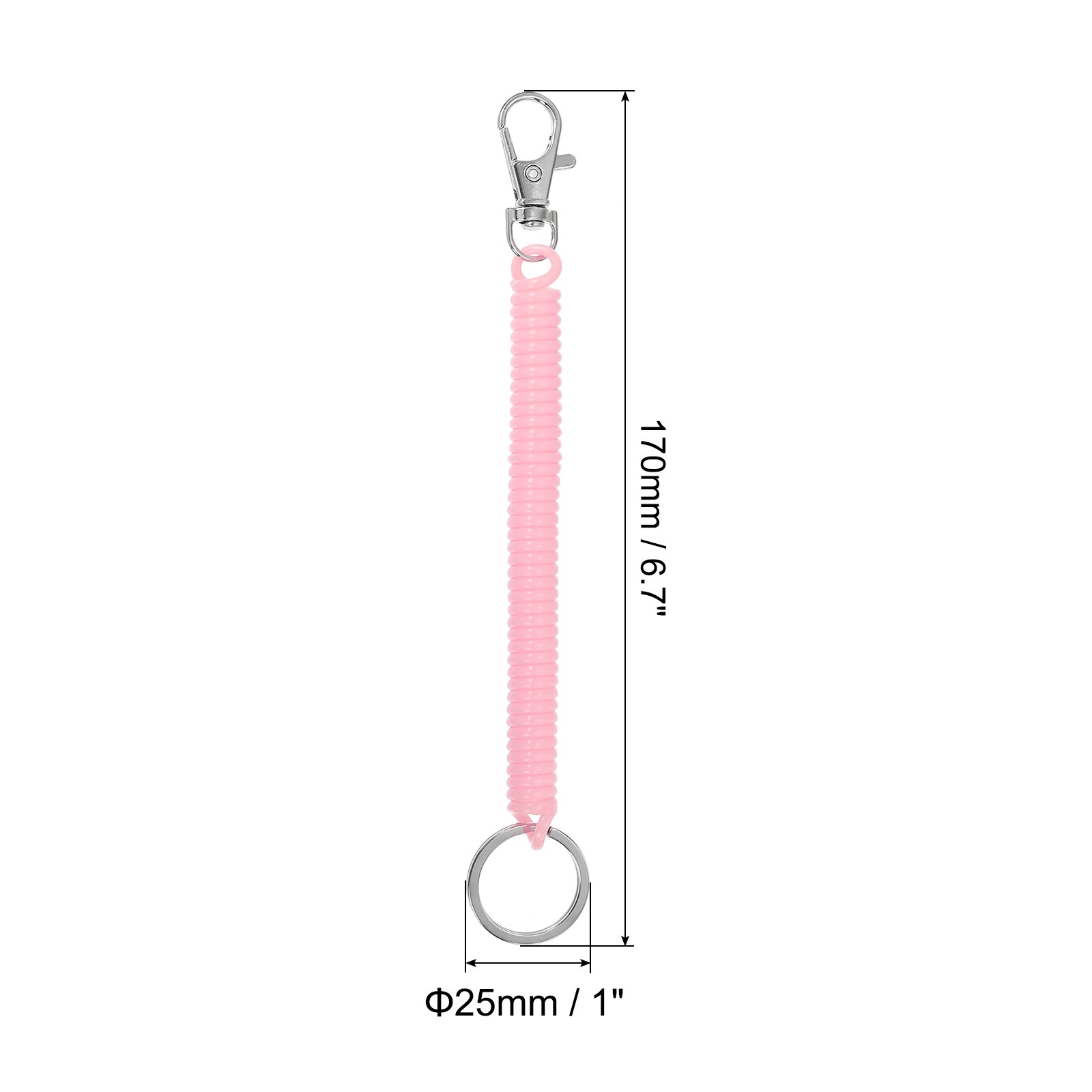 5pcs Retractable Coil Spring Keychain with Lobster Clasp Keyring 17cm Light Pink
