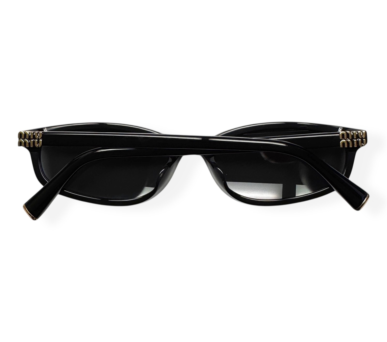 как выглядит Miu Miu Sunglasses Shiny Black Gray Tinted Gold Logo SMU A06F 16K-08Z with Case фото