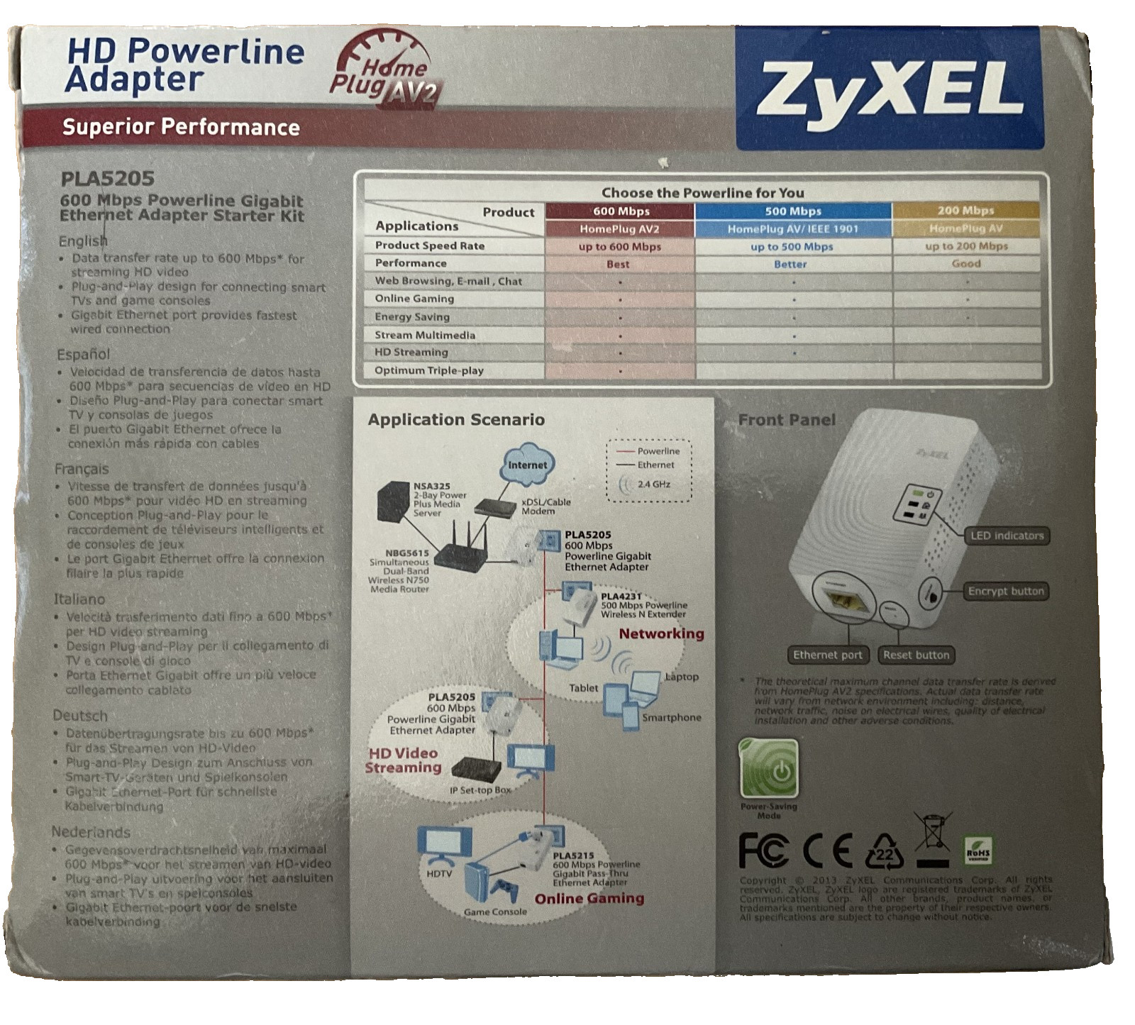 ZyXEL PLA5205 600Mbs Powerline Ethernet Adapter Kit Pair NEW Open Box Complete