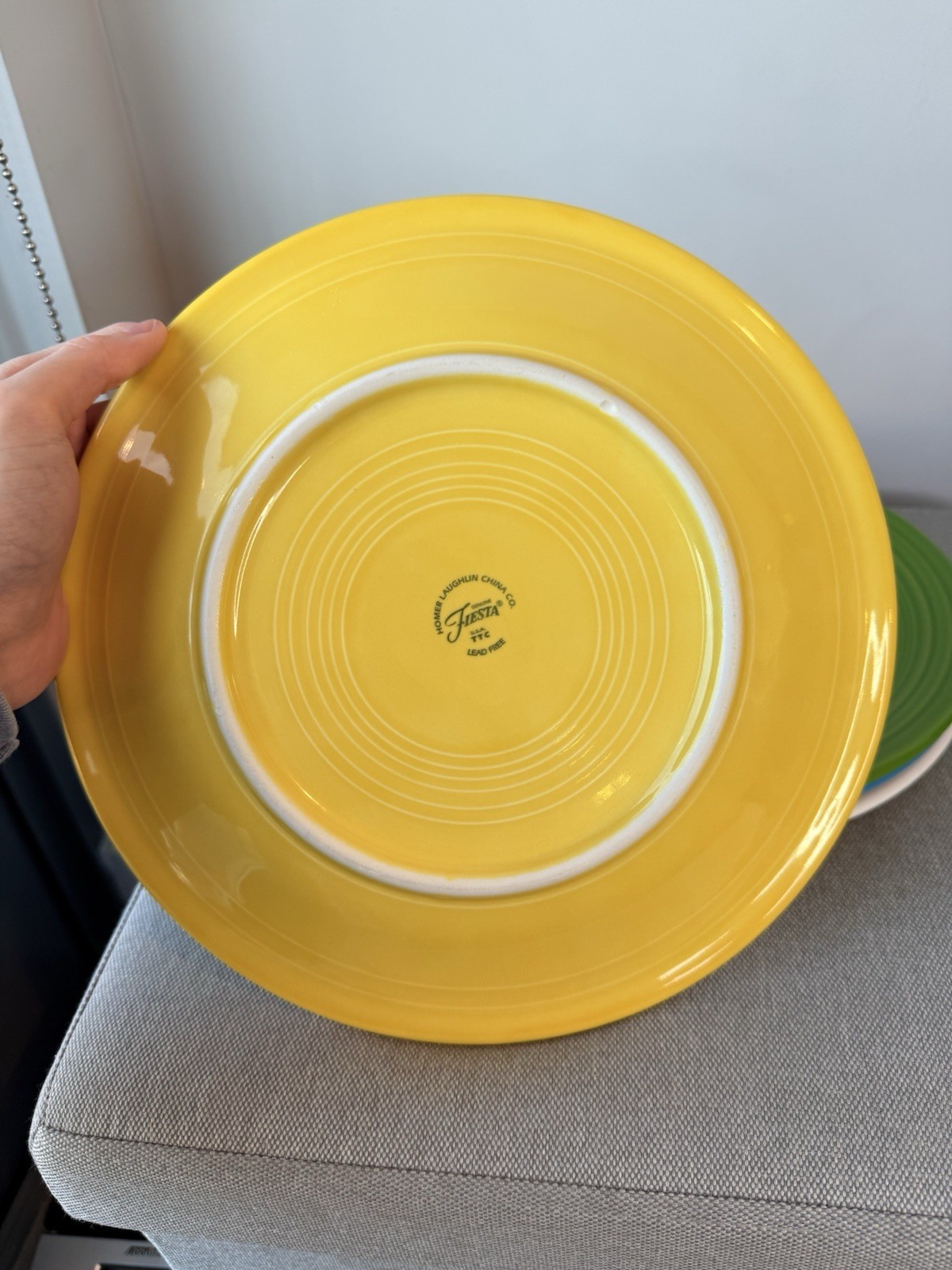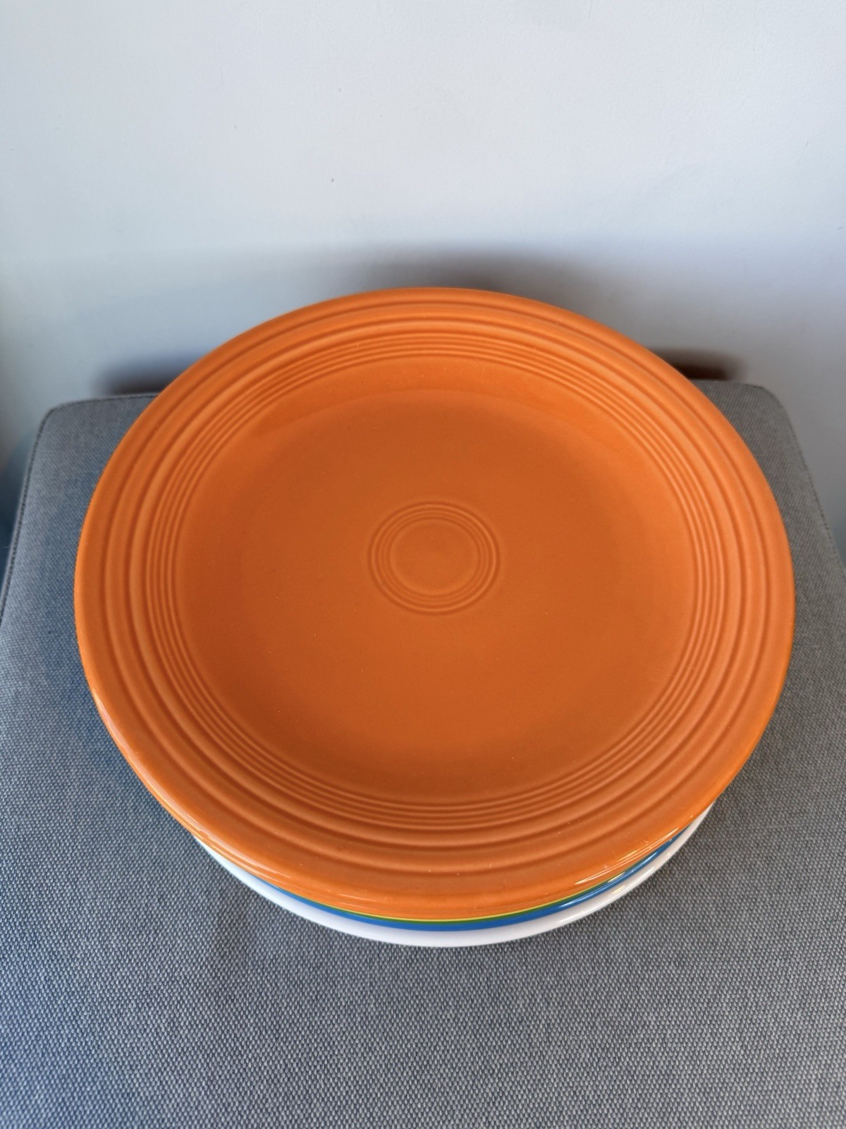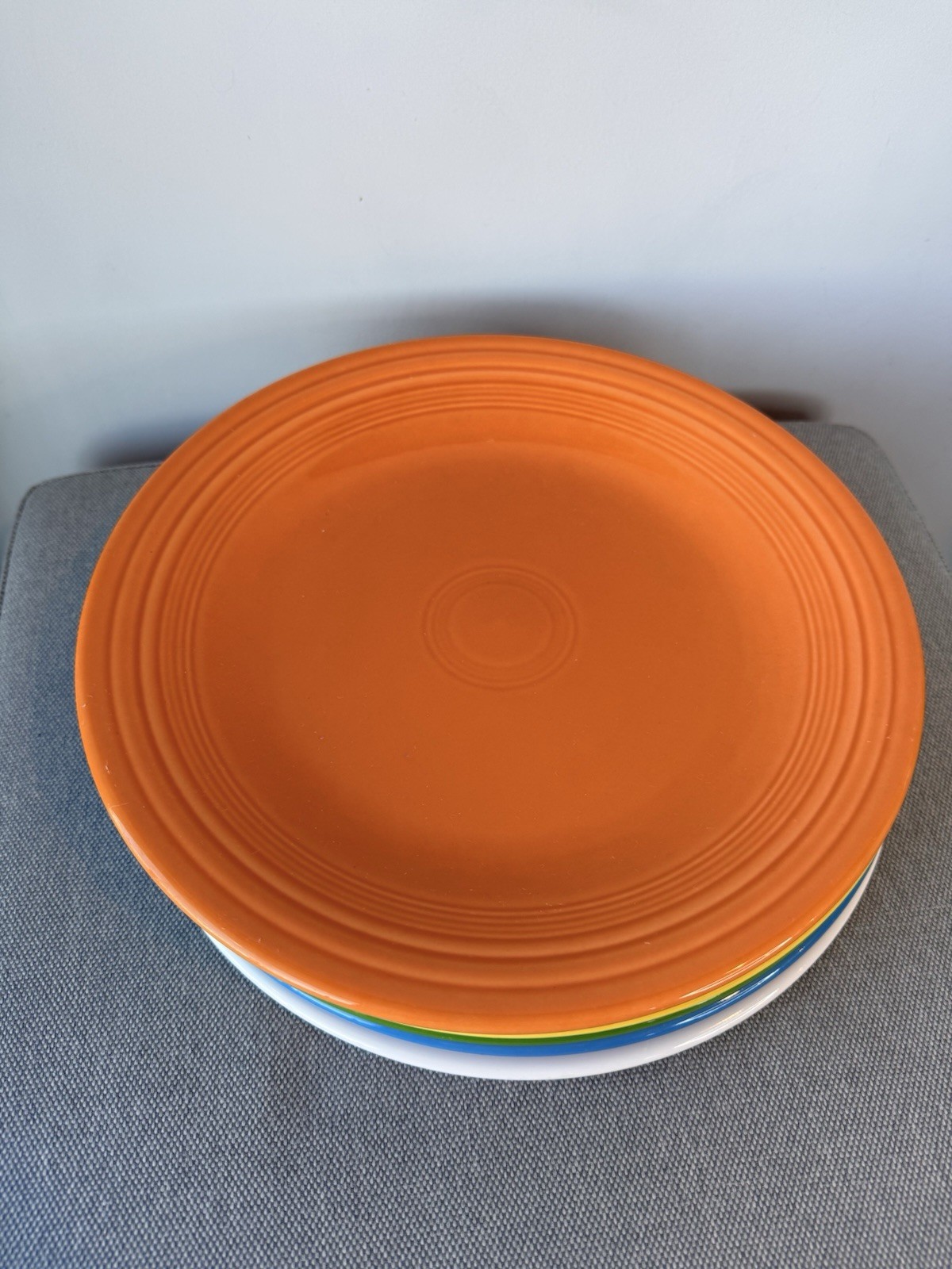 как выглядит VGUC FIESTA RAINBOW 9 DINNER PLATES BRIGHT MIX SET 10.5" FIESTAWARE фото