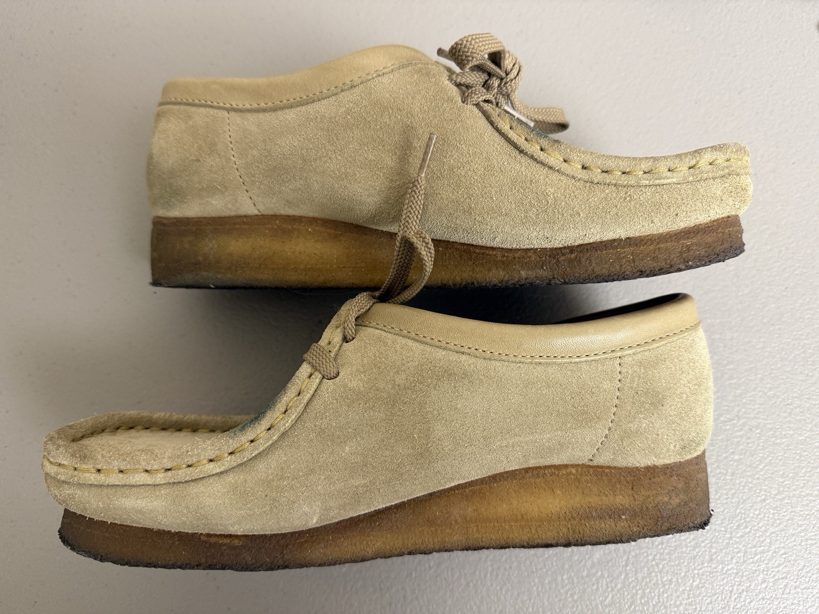 как выглядит Clarks Originals Wallabee Tan Suede Lace Up Shoes Women