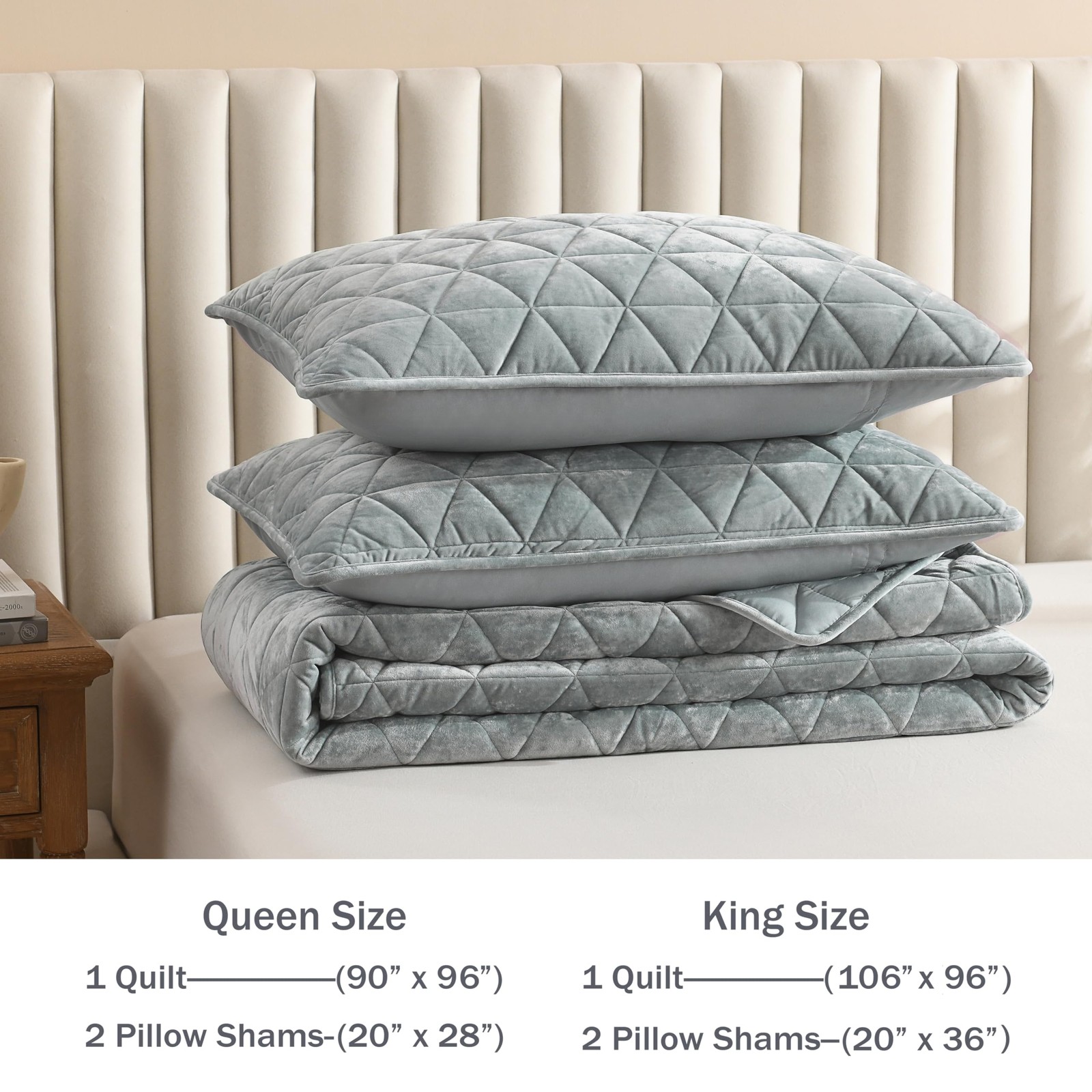 Velvet King Size Quilt Set - Soft Lightweight Bedding, 3 Piece All-Season