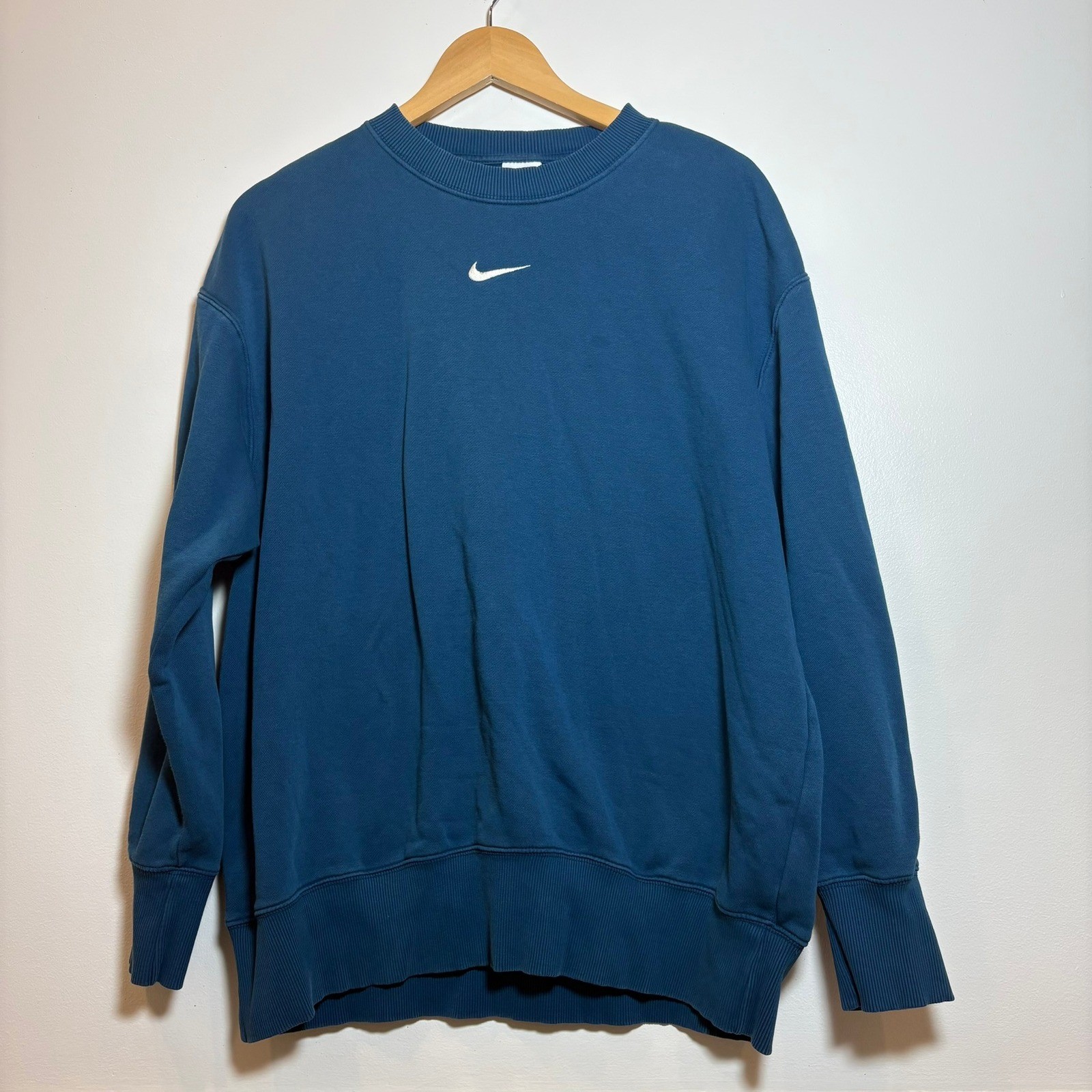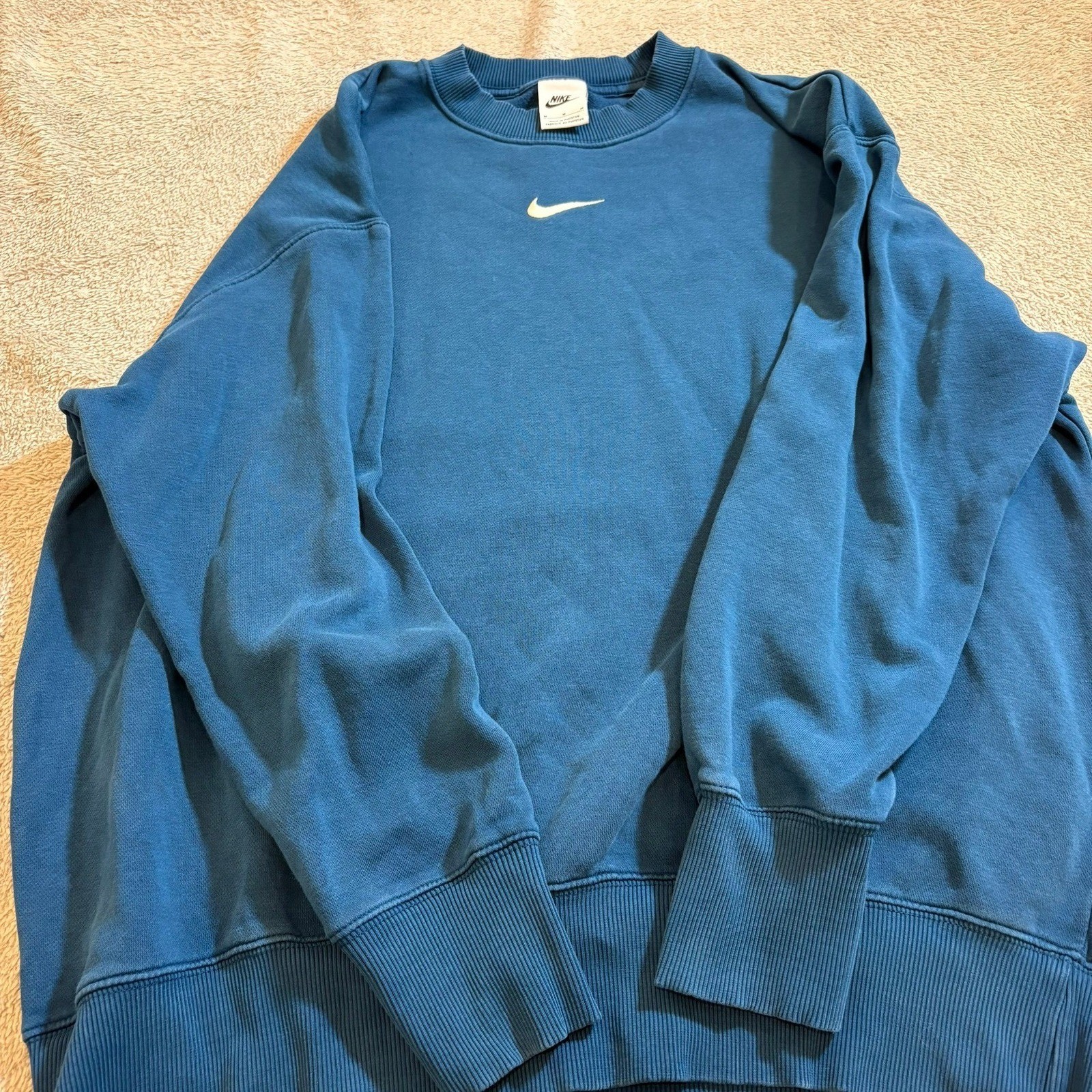 Nike Sportswear Club Fleece Crewneck Sweatshirt Teal Blue Swoosh Logo Men Medium