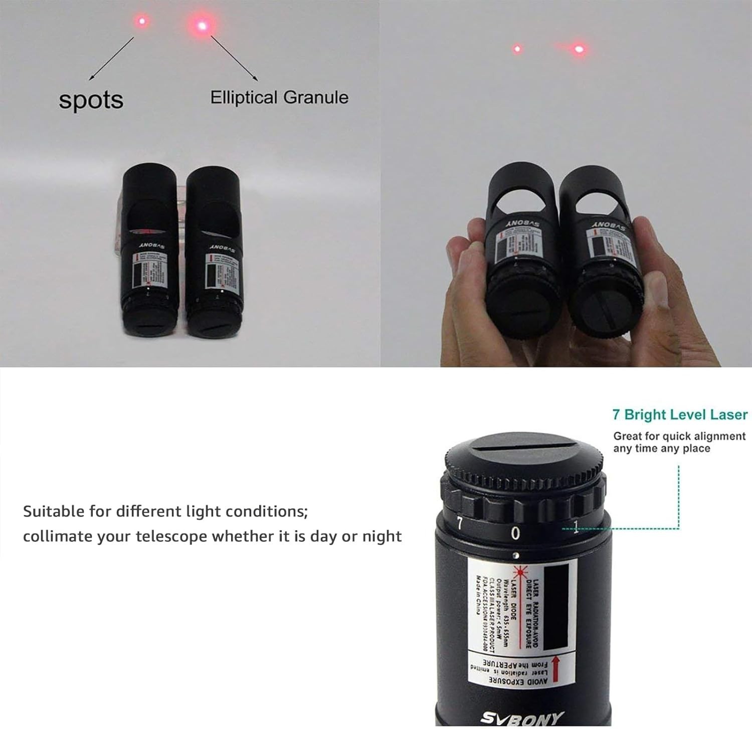 High-Precision Telescope Alignment Tool - Red Laser Collimator with 7 Brightness