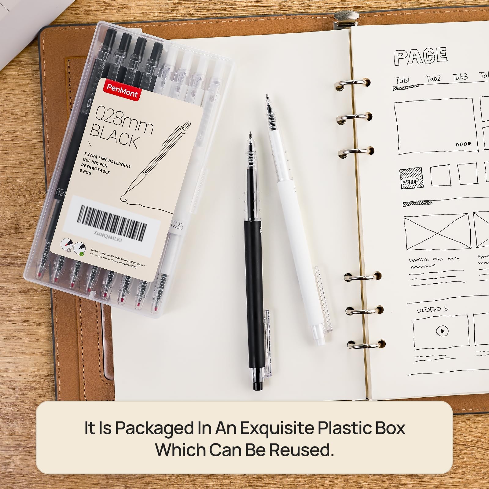 как выглядит Retractable Gel Roller Pens 0.28mm Ultra Fine Point Black Ink 8 PCS Japanese фото