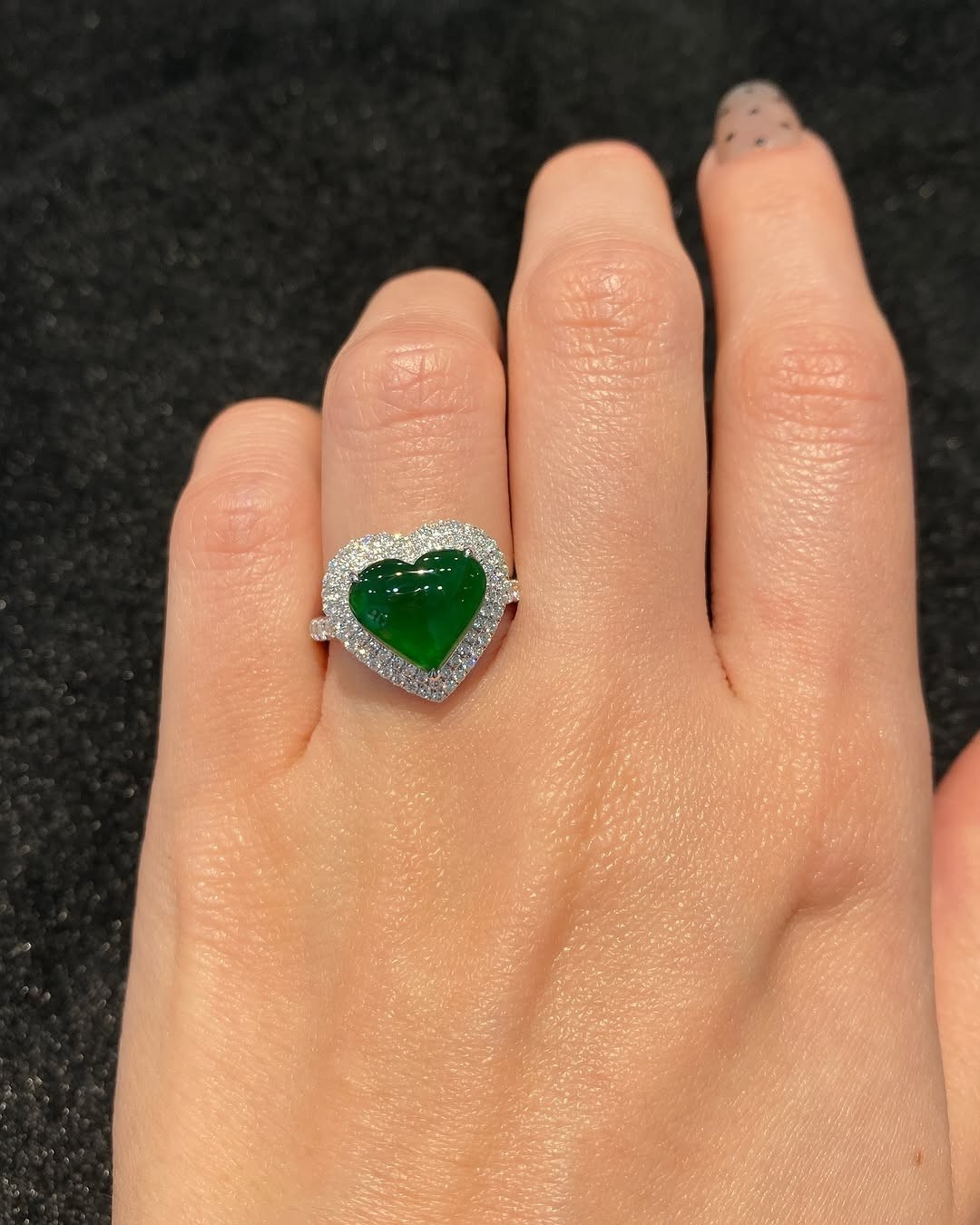 Heart Cut Green Jadeite Cabochon Ring 925 Sterling Silver Halo Engagement Ring