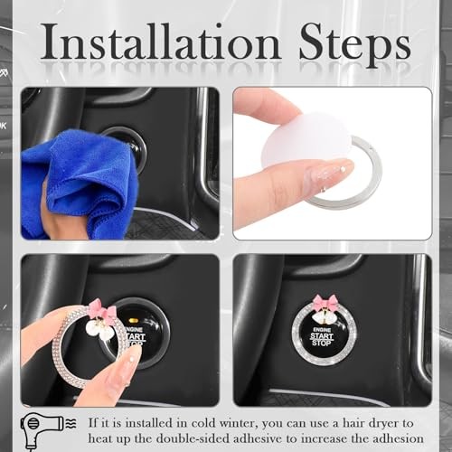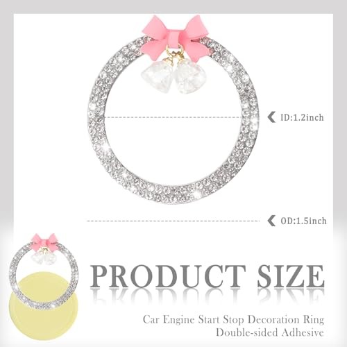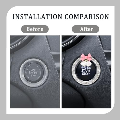 Car Push Start Button Cover Ring,Bling Bow Push to Start Button Cover White