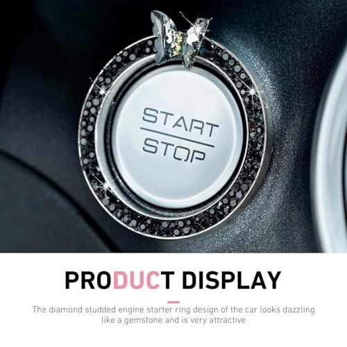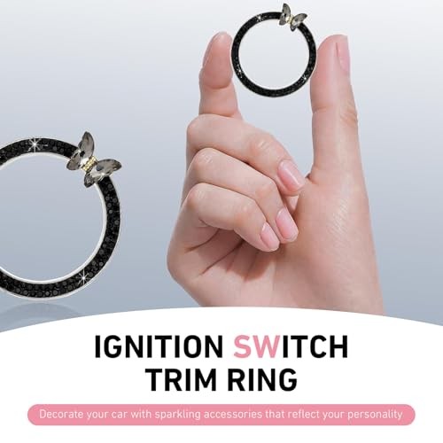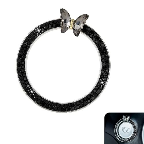 Bling Car Engine Start Stop Decoration Ring, Sparkling Butterfly Car Black